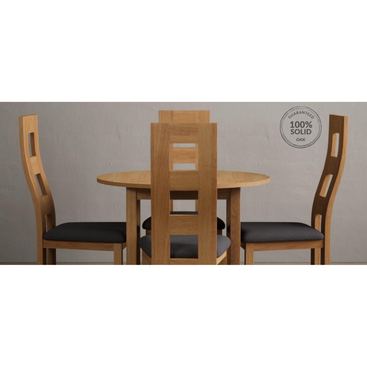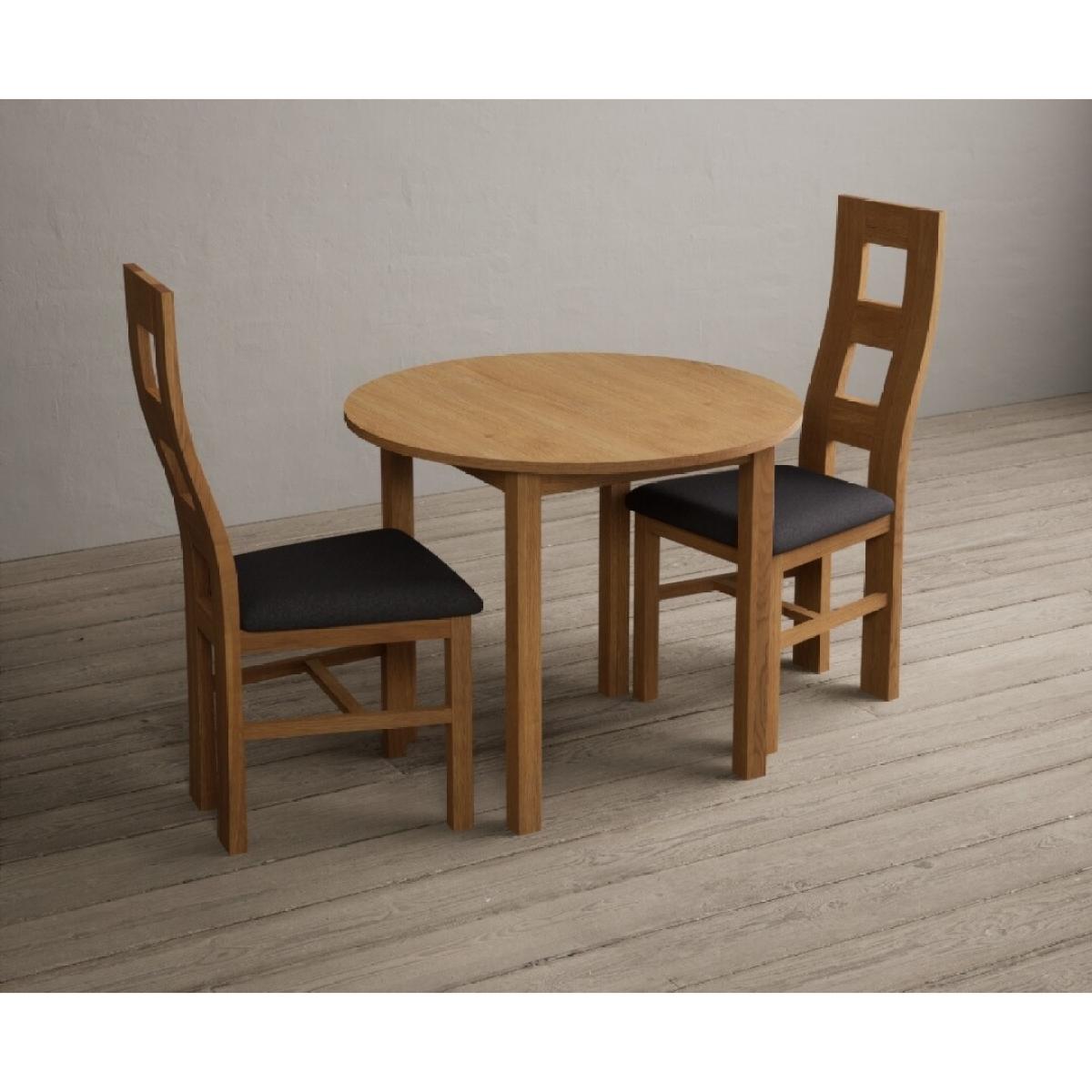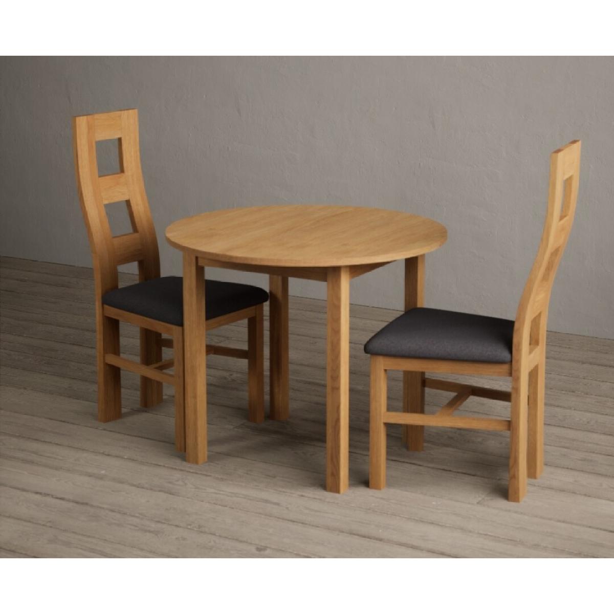 Extending York 90cm Solid Oak Dining Table With 2 Charcoal Grey Flow Back Chairs