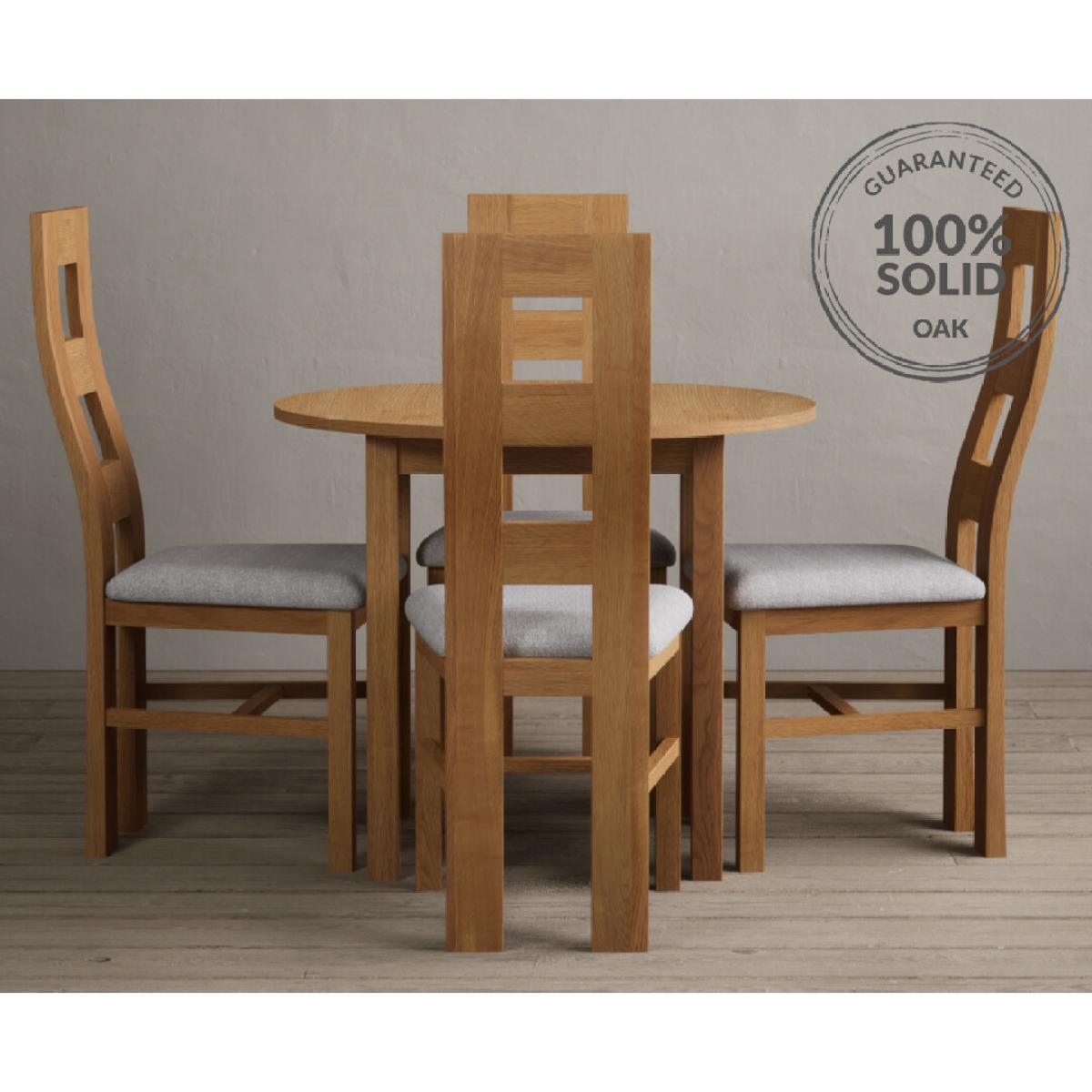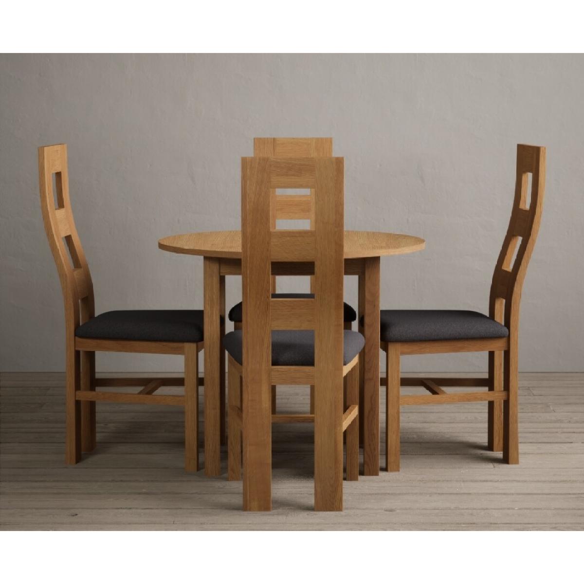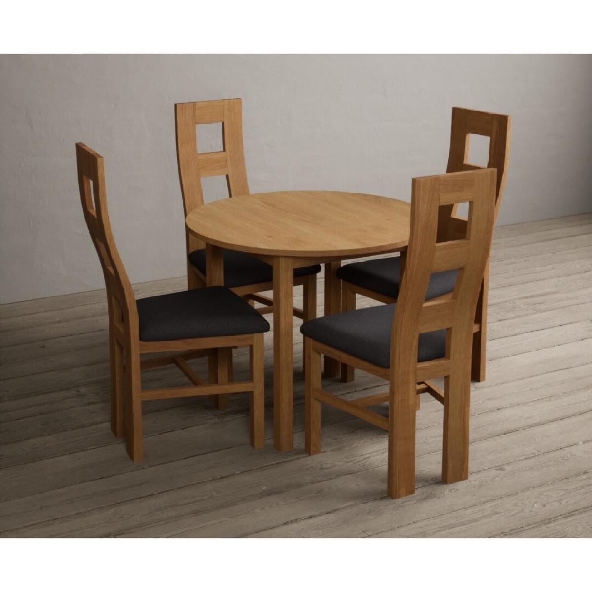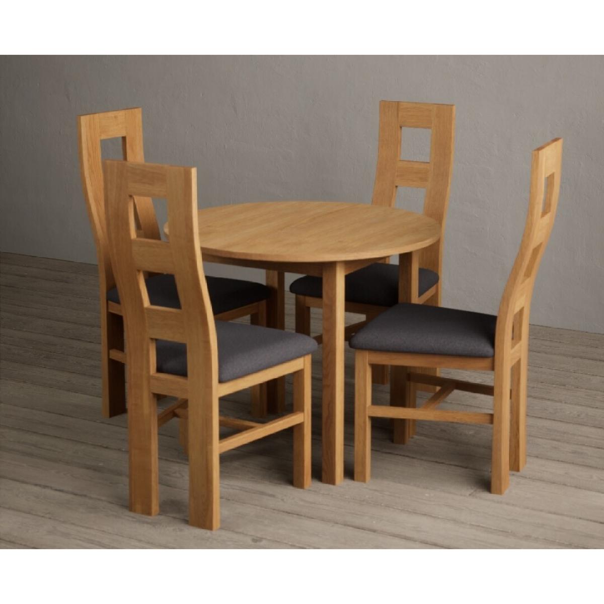 Extending York 90cm Solid Oak Dining Table With 2 Charcoal Grey Flow Back Chairs