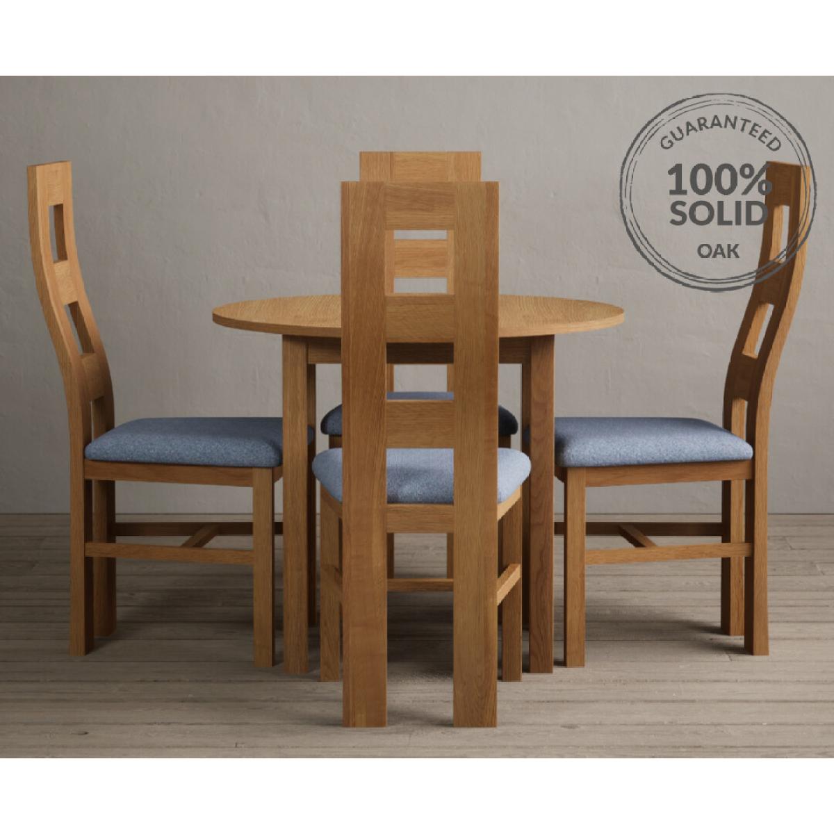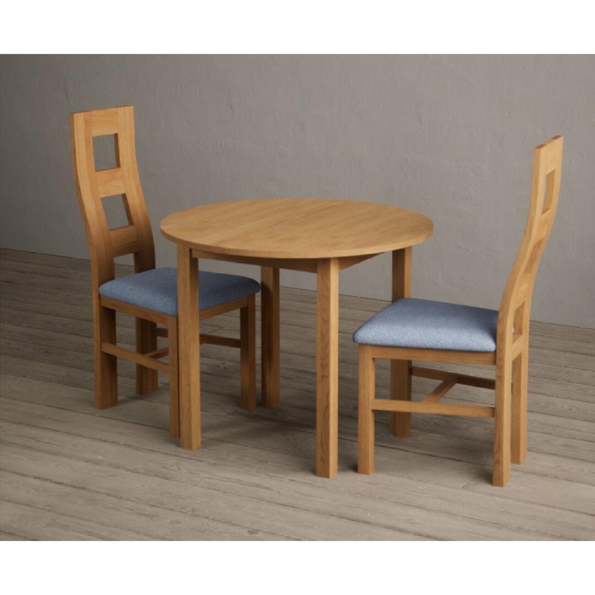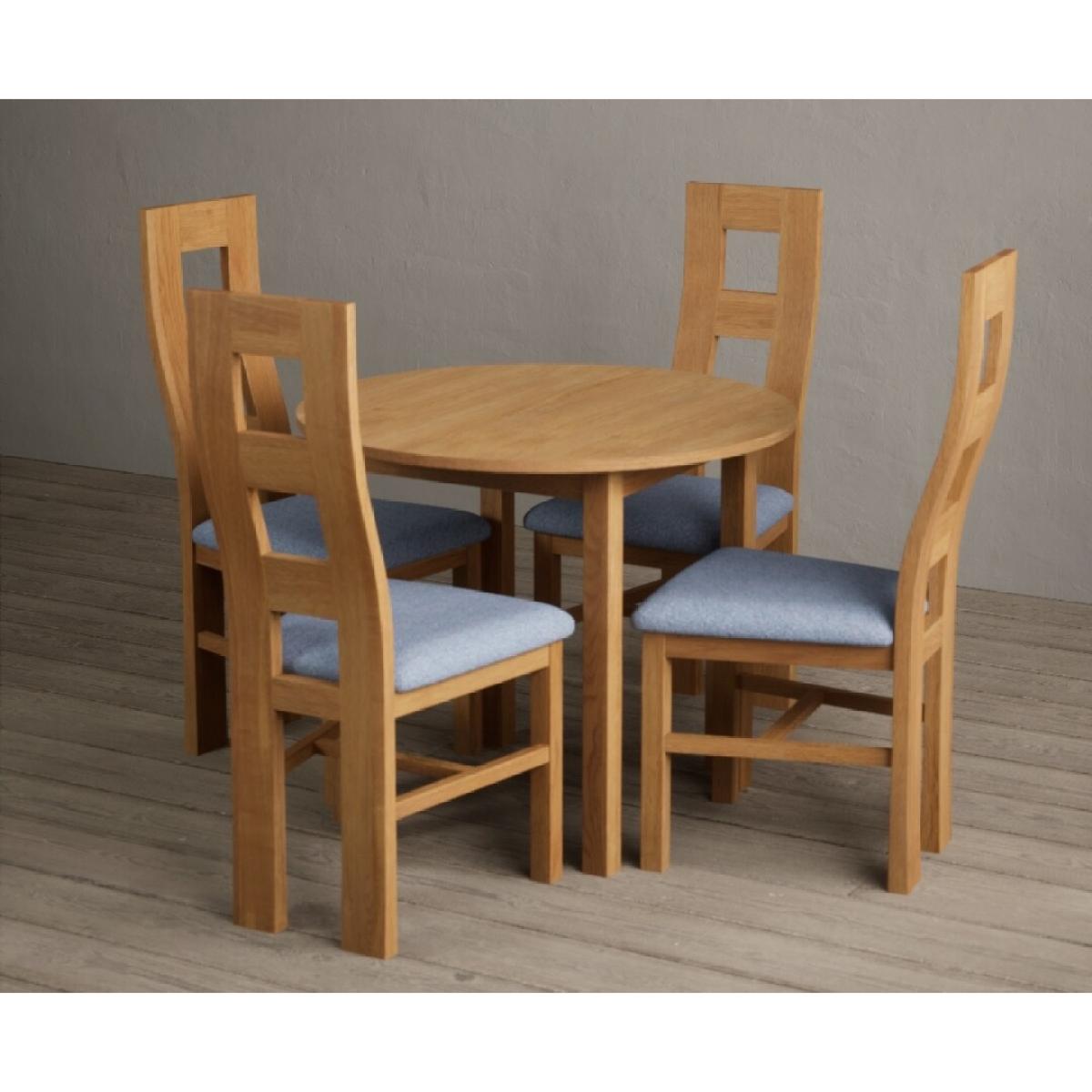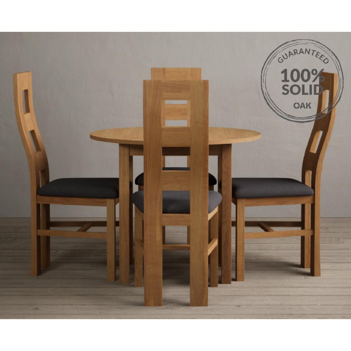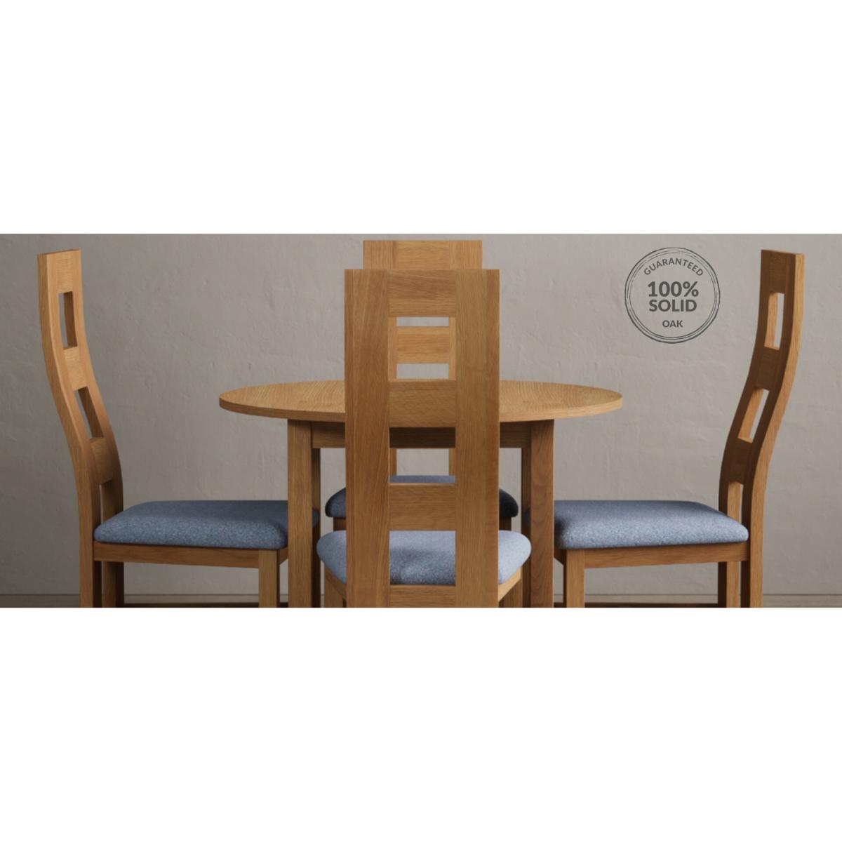 Extending York 90cm Solid Oak Dining Table With 4 Light Grey Flow Back Chairs
