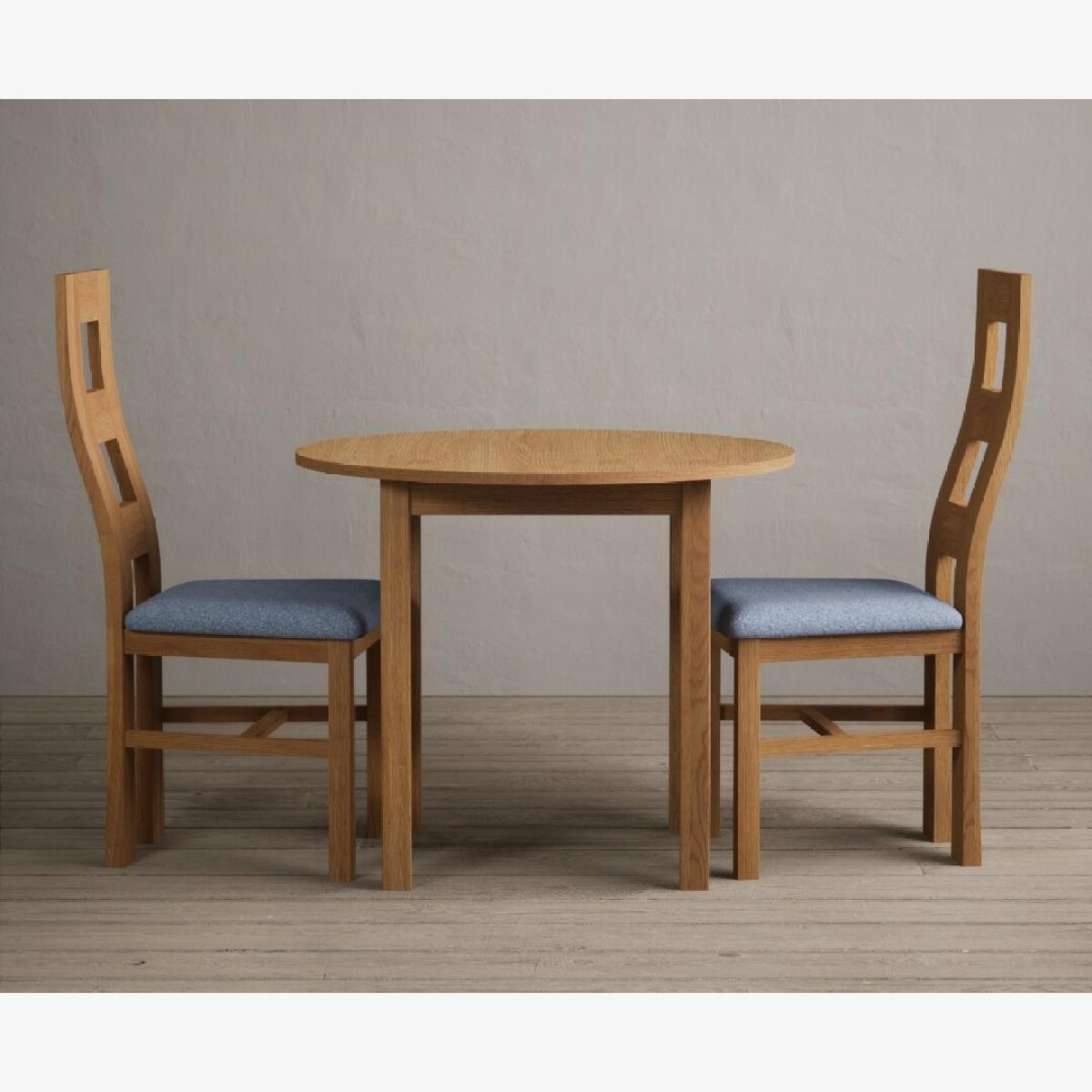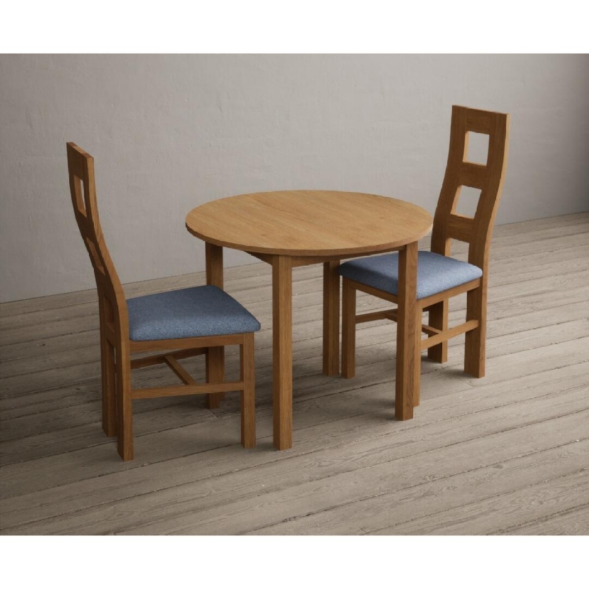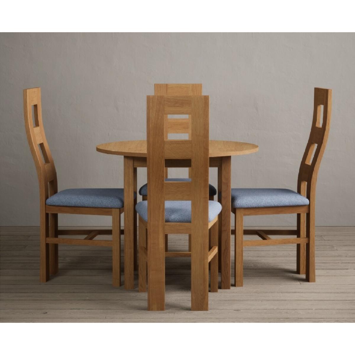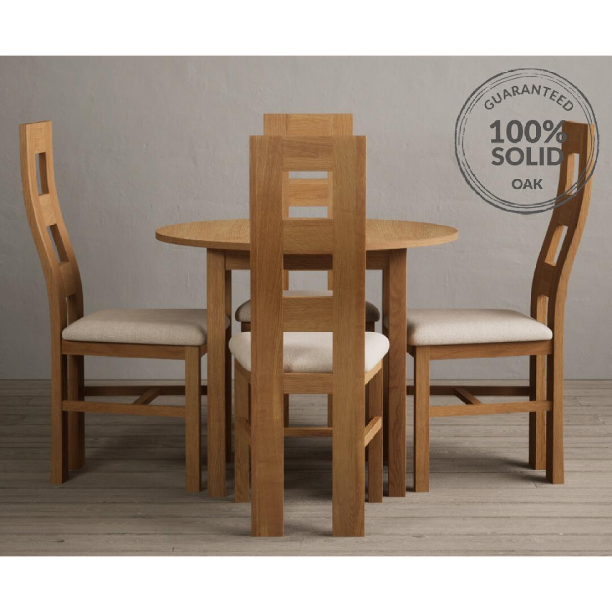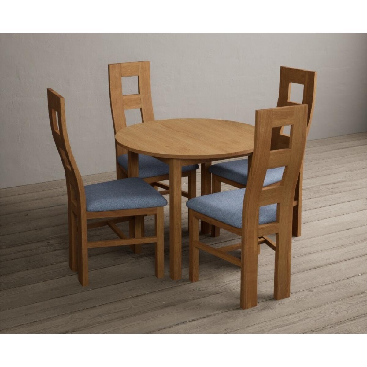 Extending York 90cm Solid Oak Dining Table With 4 Light Grey Flow Back Chairs