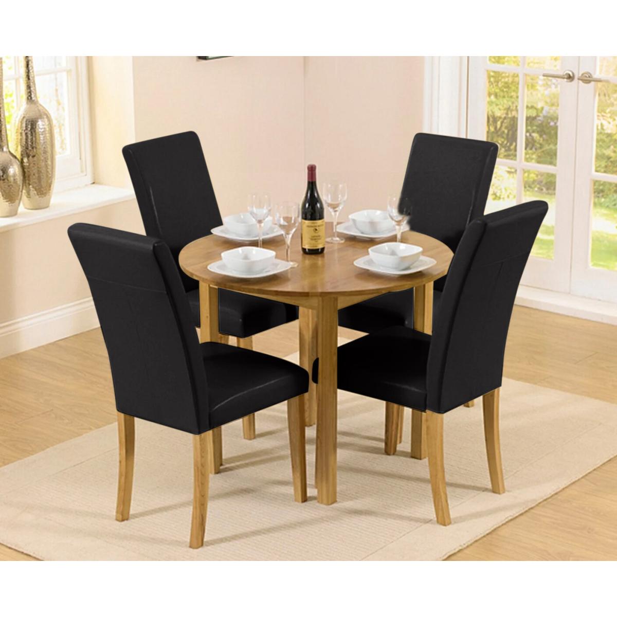 Small homes will benefit from the solid oak York dining set featuring gorgeous Olivia black chairs