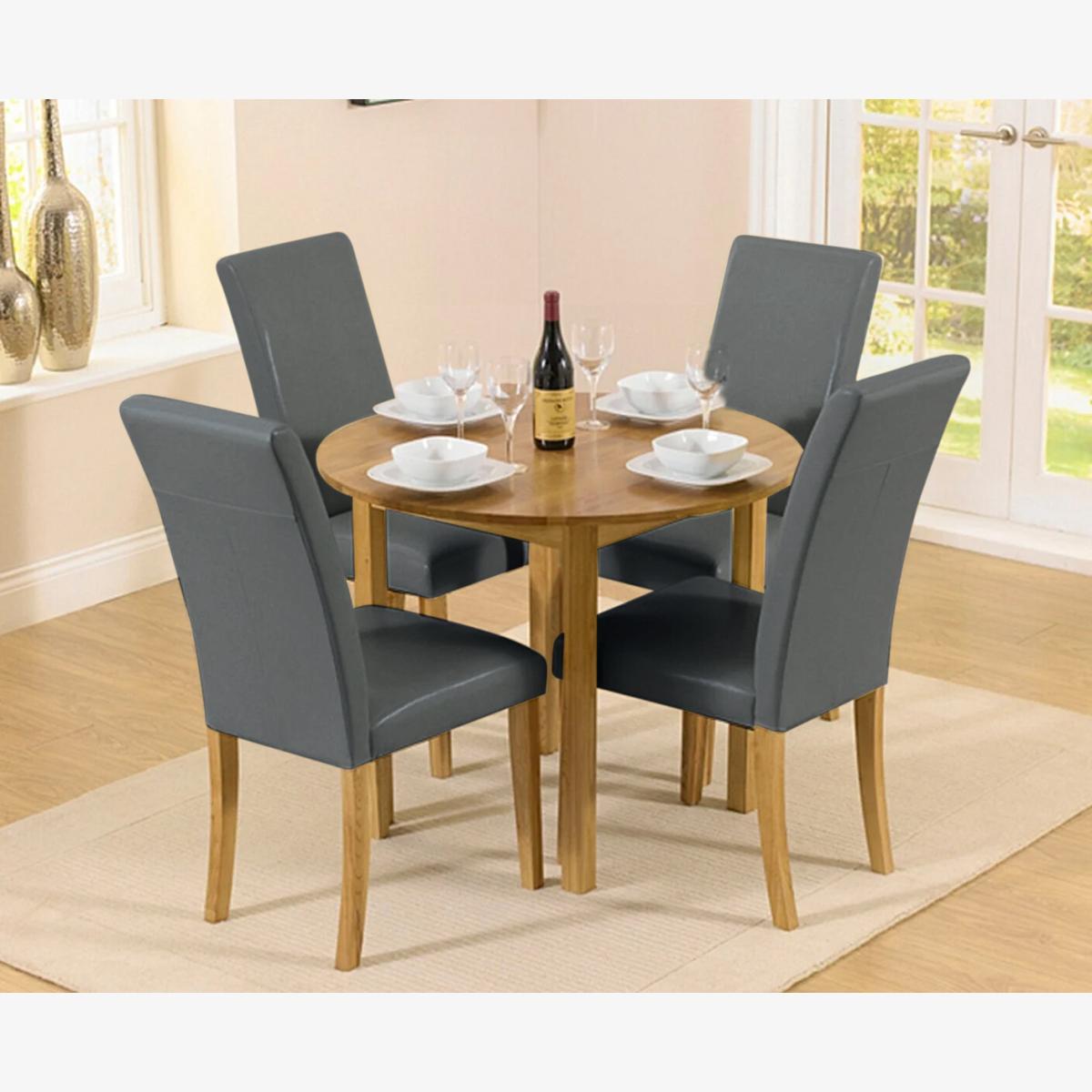 Extending York 90cm Solid Oak Drop Leaf Dining Table With 2 Grey Olivia Chairs
