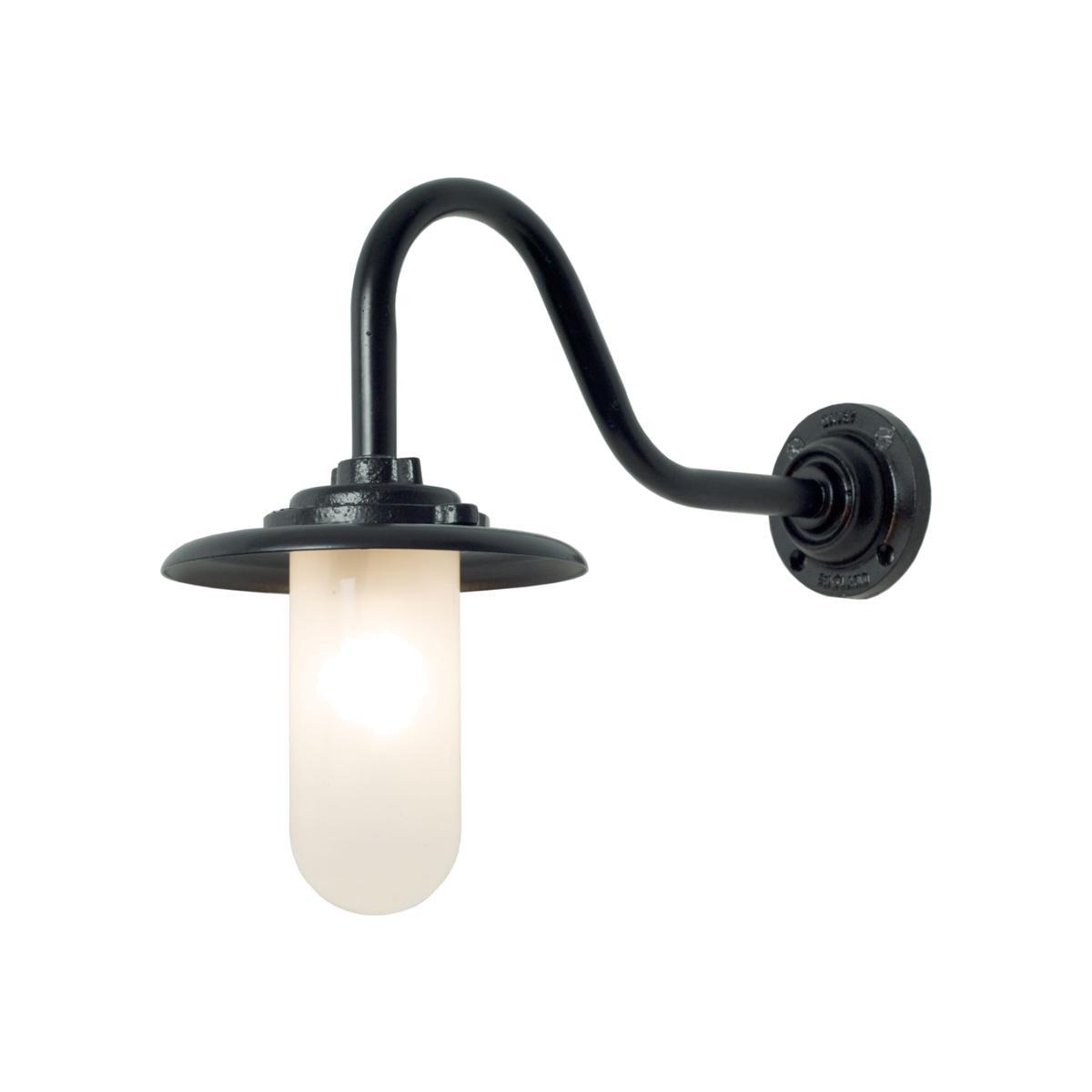 This classic iron Exterior Bracket Wall Light from Davey Lighting is crafted from frosted glass and black powder-coated galvanised iron; the design is a modern reinvention of industrial lighting styles, to complement contemporary and traditional outdoor spaces alike. Established as a marine lighting manufacturer during the 19th century, Davey Lighting combines the finest raw materials with excellent craftsmanship to create unique lighting designs. Each light is manufactured in England with a high standard of design and acute attention to detail, as was required for their original industrial purpose. The Exterior Bracket Wall Light features a reflector and swan neck arm, providing bright emanations to light your way home. Requires: 1 x max E27 60W bulb.