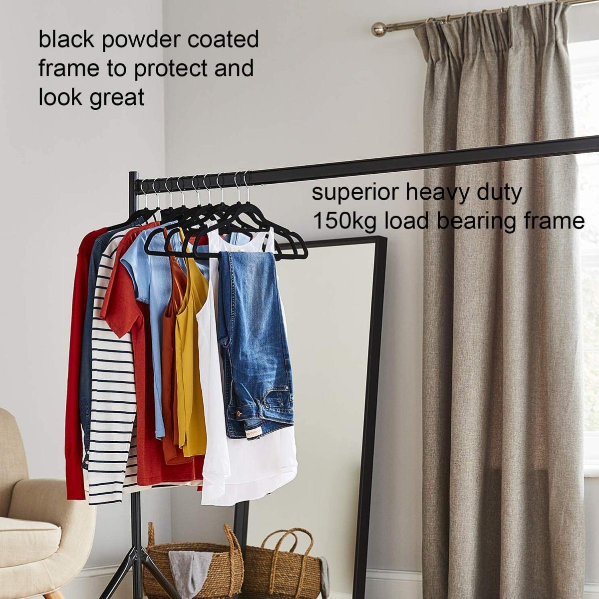 Very easy to erect, light weight but yet very sturdy due to the heavy gauge steel material. The frame has a pop clip system that allows you to take down a collapse as easy as it is to erect. Great for storing your garments on and will give you the extra hanging space that you need. Also, look at our clothes rail covers for protecting your clothes from dirt and dust.
