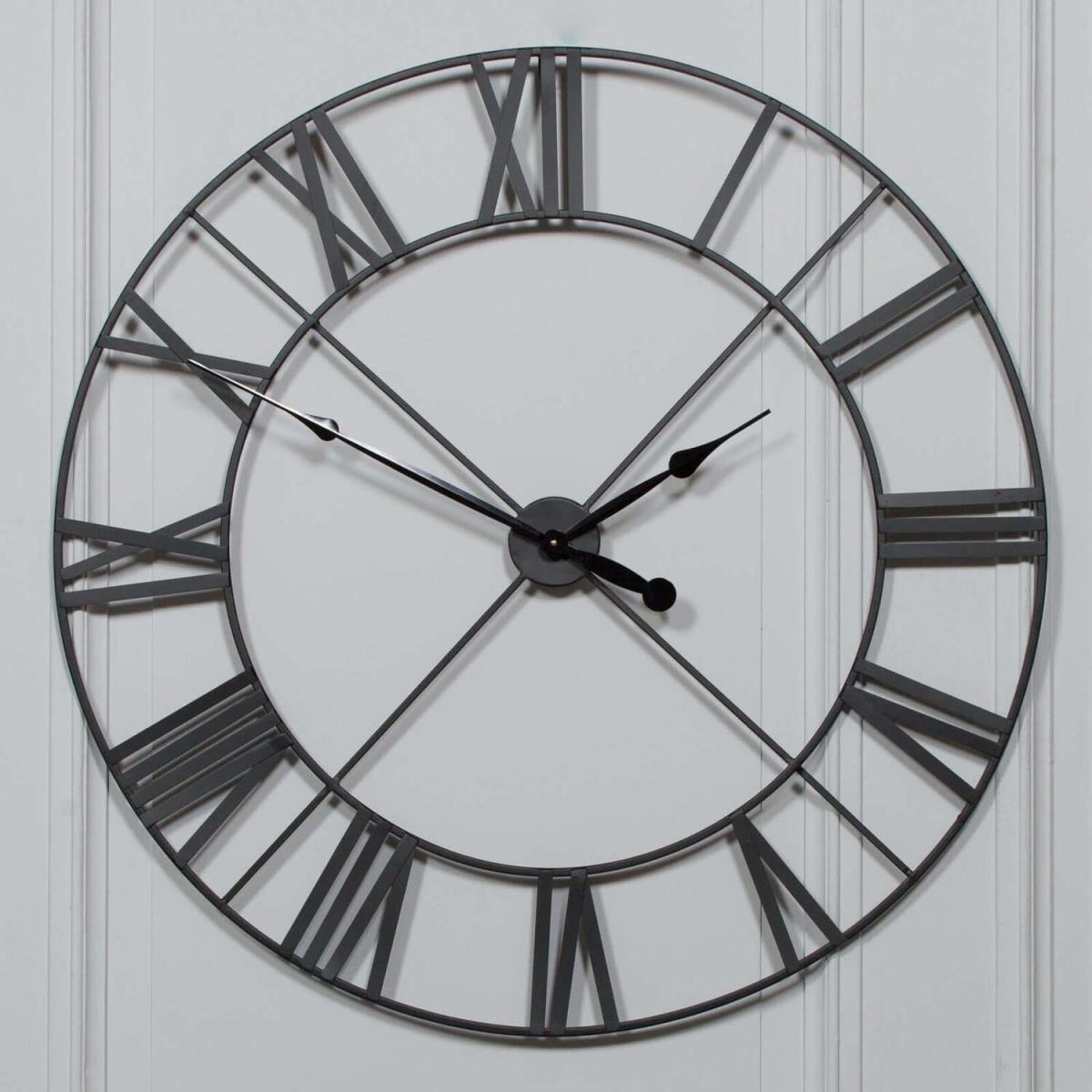 Our Extra Large Black Metal Wall Clock is a striking feature piece, ideal for over a dining room table or above your sofa. Its skeleton style roman numerals and open black metal frame add chic style to your living space.