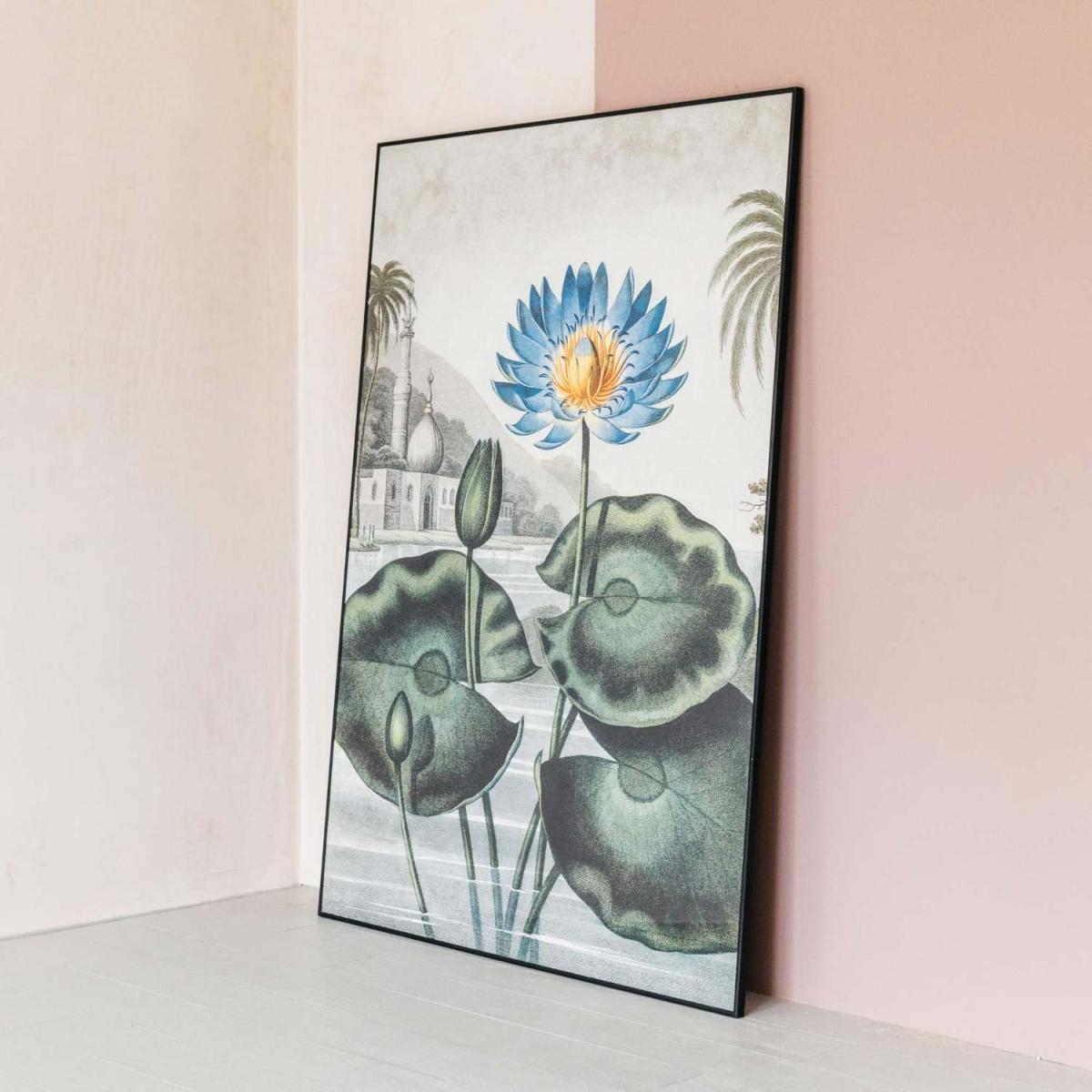 I love this water lily print for its bold yet calming colour palette, making it a versatile statement piece. It works particularly well in contemporary or minimalist interiors, adding a touch of nature-inspired tranquillity. For styling, try pairing it with neutral or soft-toned furnishings to let the artwork stand out, or incorporate complementary blue accents for a cohesive look. Hanging it at eye level in a living room or bedroom can create a focal point, and since it's large, it’s best suited for spacious walls or to be grouped with other botanical prints for a curated, gallery-style display.