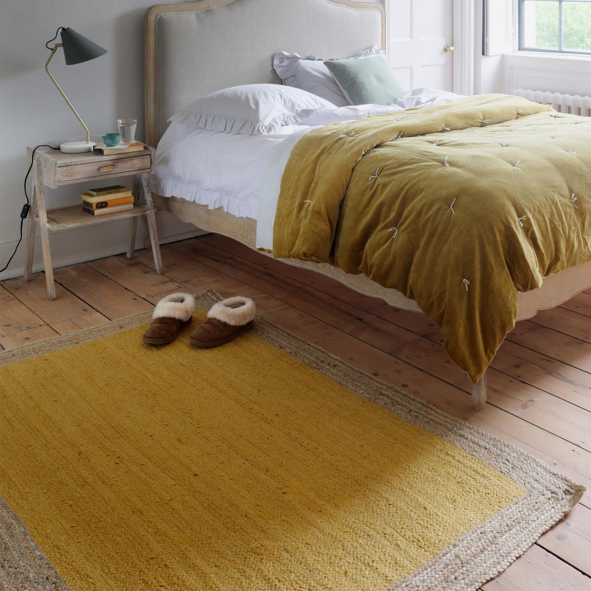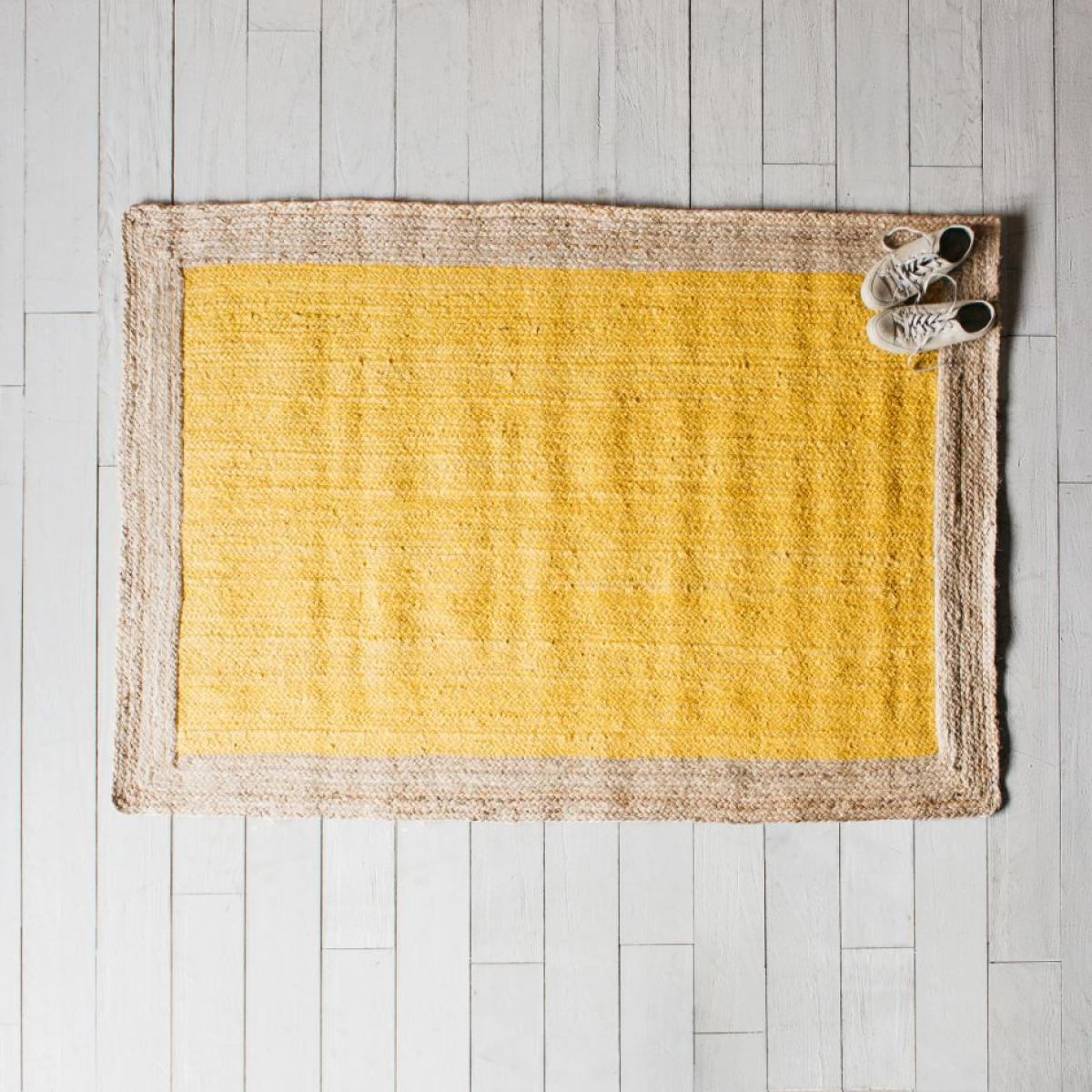 Made of jute, this extra large rug will brighten up any room with the stunning sunny yellow colour and a natural sandy coloured border. Perfect for a beach house look or to add vibrancy to a neutral interior.