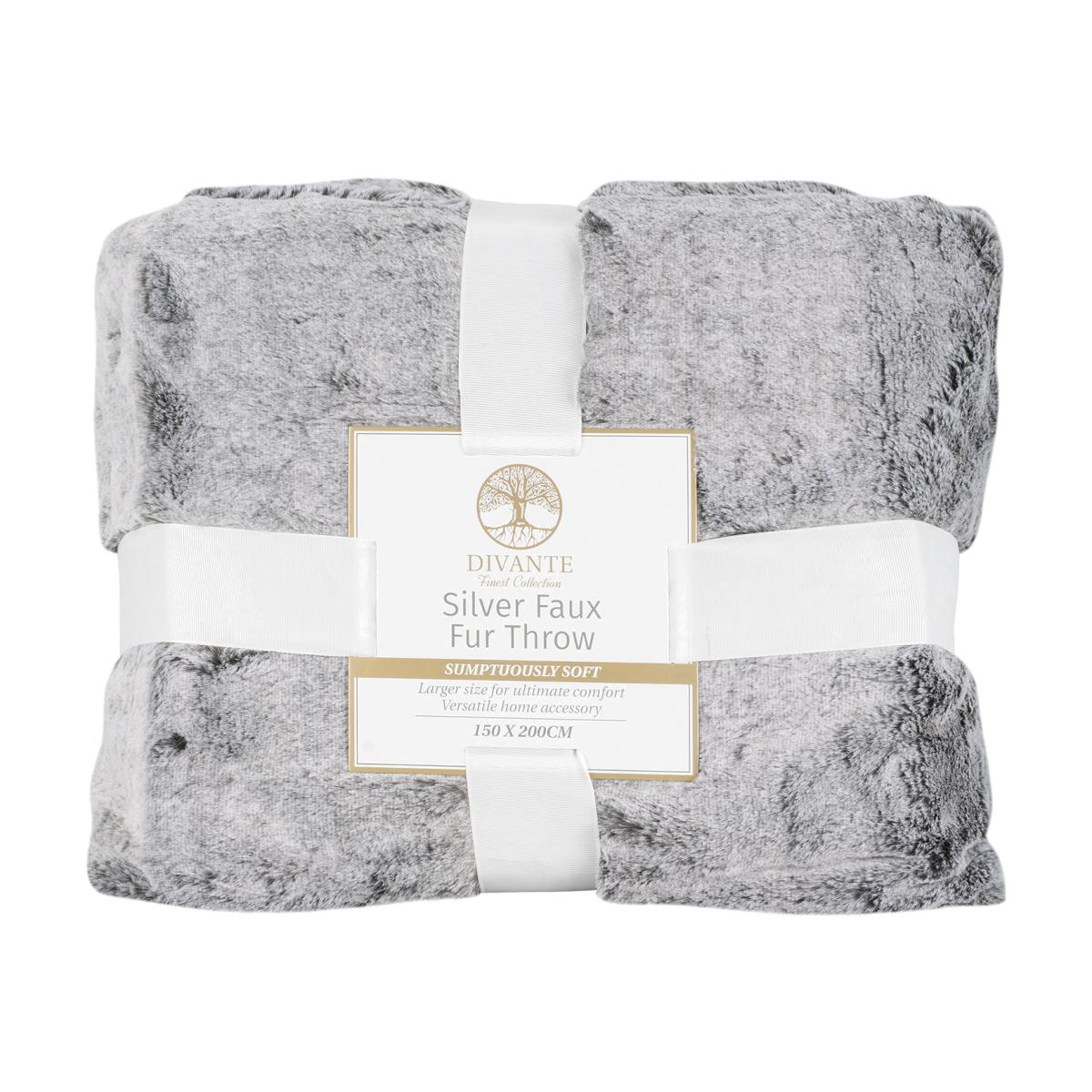 Extra Large Luxury Silver Faux Fur Throw