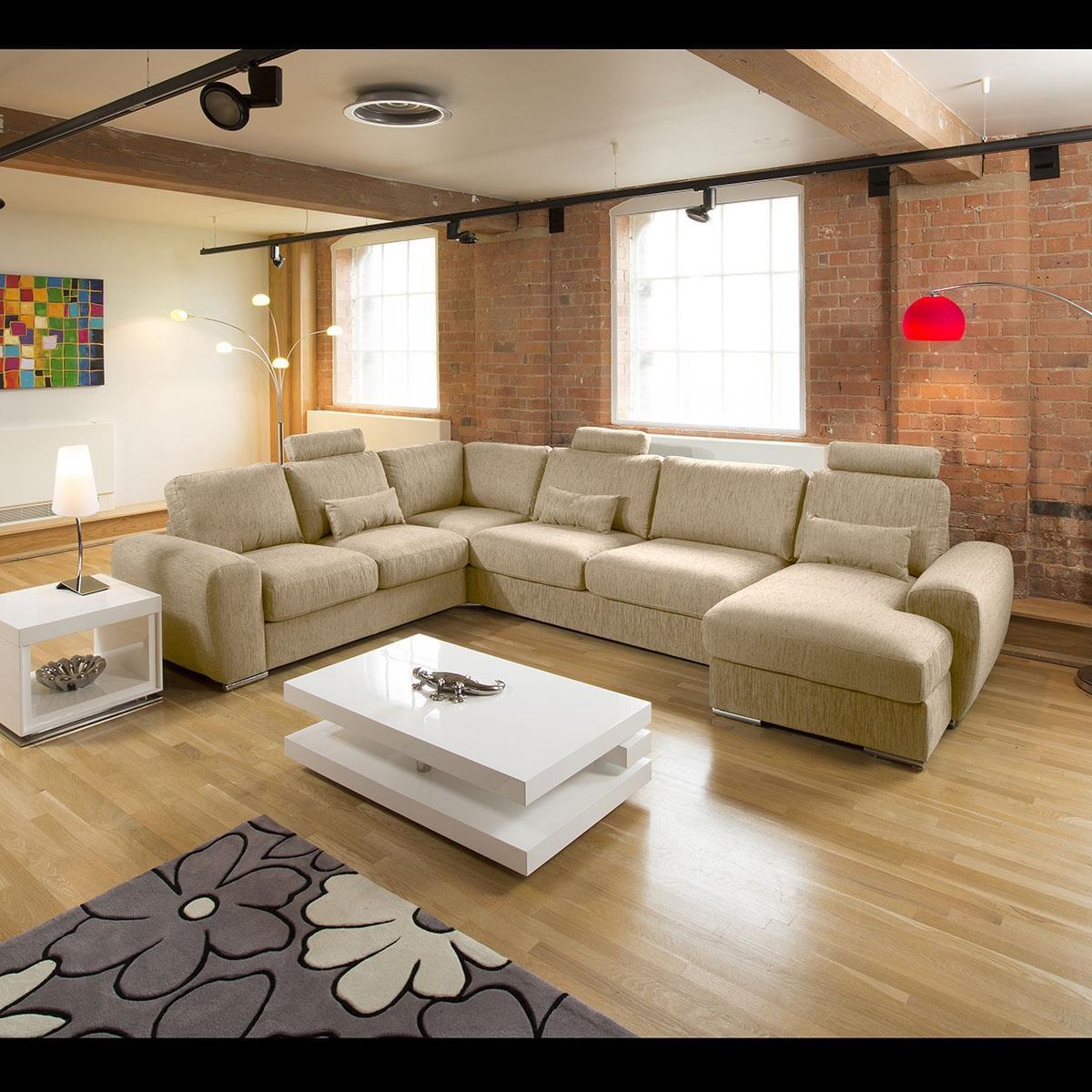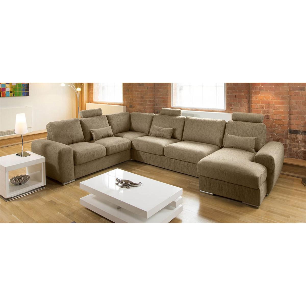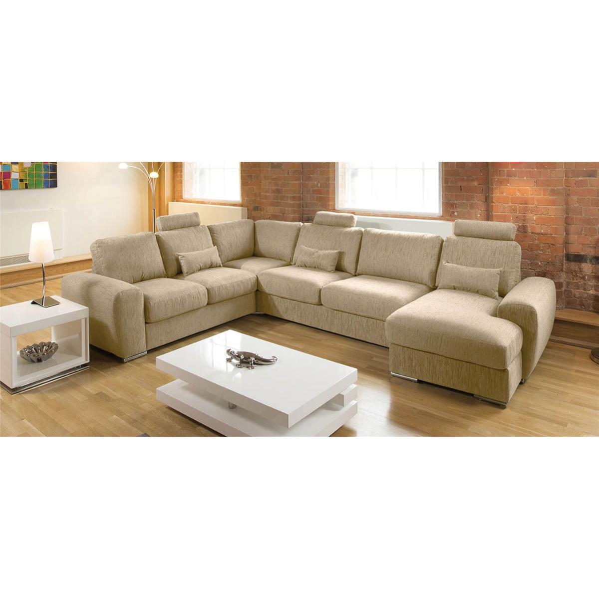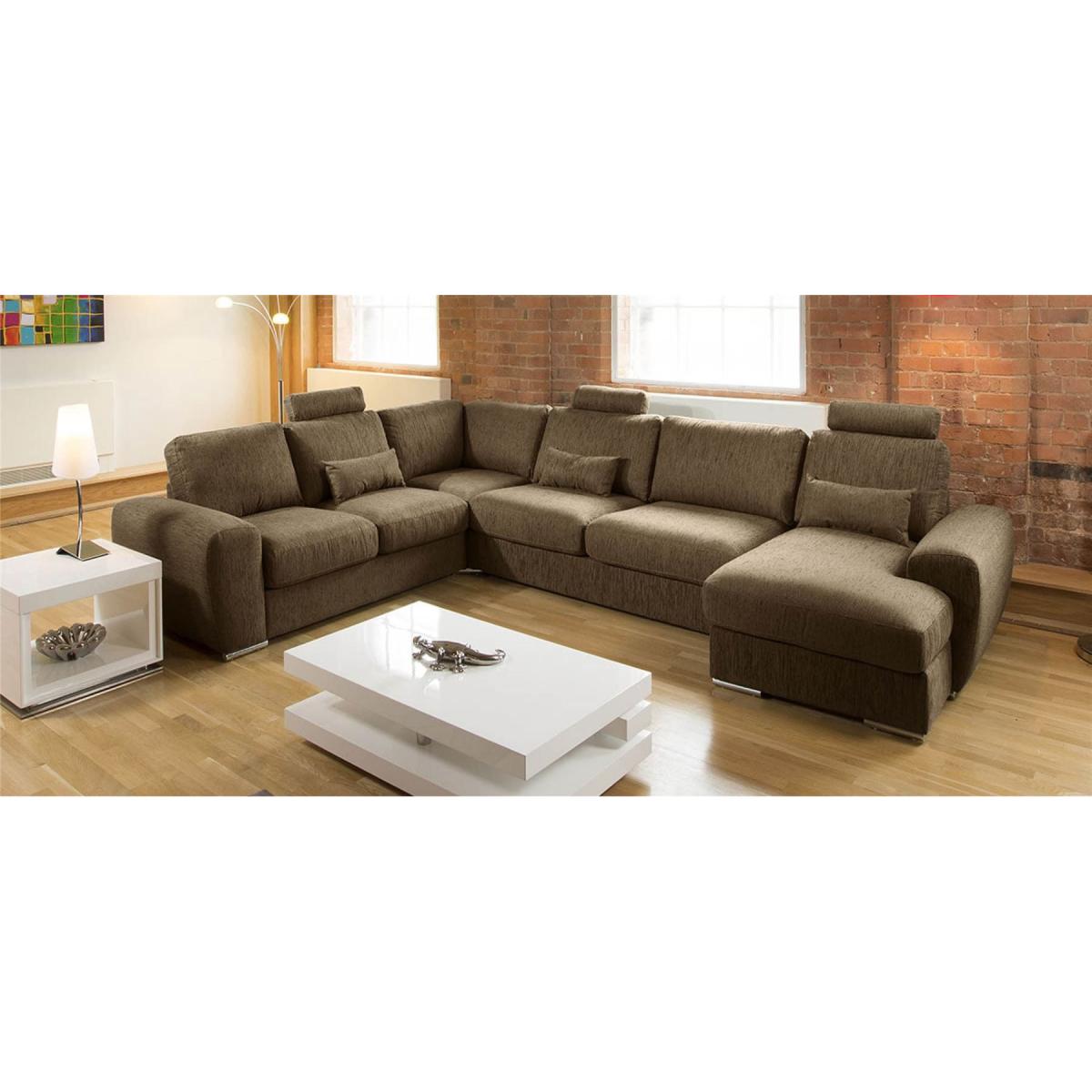 Large range of quality corner L shaped sofas, choose your fabric, choose your style. Available with coordinating headrests, footstools and pillow and scatter cushions. The first thing that you will notice is the quality, it just oozes out of this set. Next will be the incredible comfort that is derived from superior Nosag springs in the seat frame and the pocket springs with high quality foam and fibre seat and back cushions. One touch of the thick heavy duty fabric will confirm that you can have a fabric that combines strength, style and comfort. All this is built on a strong solid wood frame and will be delivered in a few sections that easily bolt together. This giant corner group comes complete with 3 x movable headrests and 3 x pillow shape scatter cushions as pictured Notice the superwide arms, sleek headrests, stainless steel feet, oversize proportions etc. W375cm D265cm H108cm Fully Modular Sofa Range All dimensions are approximate due to fabric differences. Please allow tolerance of +/- 5cm to any direction