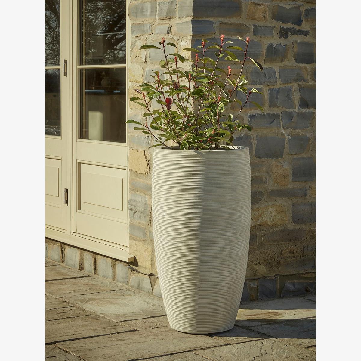 The large Panama planter is a stylish choice that works beautifully in contemporary and minimal interiors, adding a sculptural element to any space. Its understated ribbed design and neutral tone make it versatile enough to complement various colour palettes and styles. As a stylist, I love it for creating focal points in entrance halls, patios, or large living rooms-pair with statement foliage like a Fiddle Leaf Fig or a Monstera for maximum impact. Practical tips include elevating the pot slightly on a plant stand to showcase its shape, and ensuring the plant's size balances with the space; this planter is perfect for making a bold statement without overwhelming the surroundings.