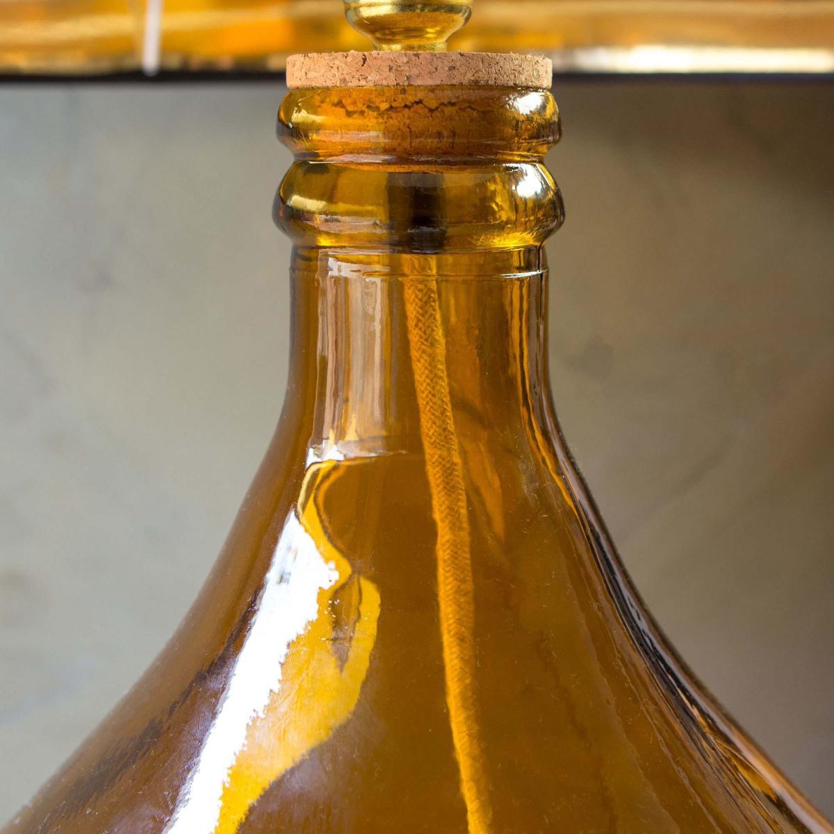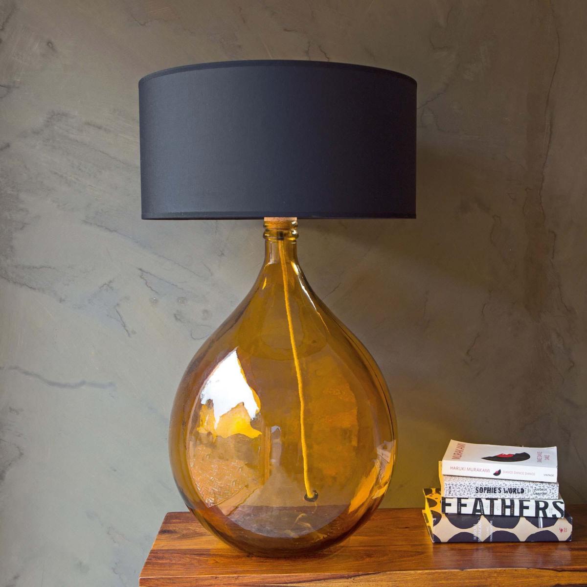 Oversized with impressive proportions, this statement table lamp will make an impact in any space. Handcrafted in the UK from recycled glass with an amber finish, this extra large lamp features a bulb-shaped base with a white fabric cord running through the middle.