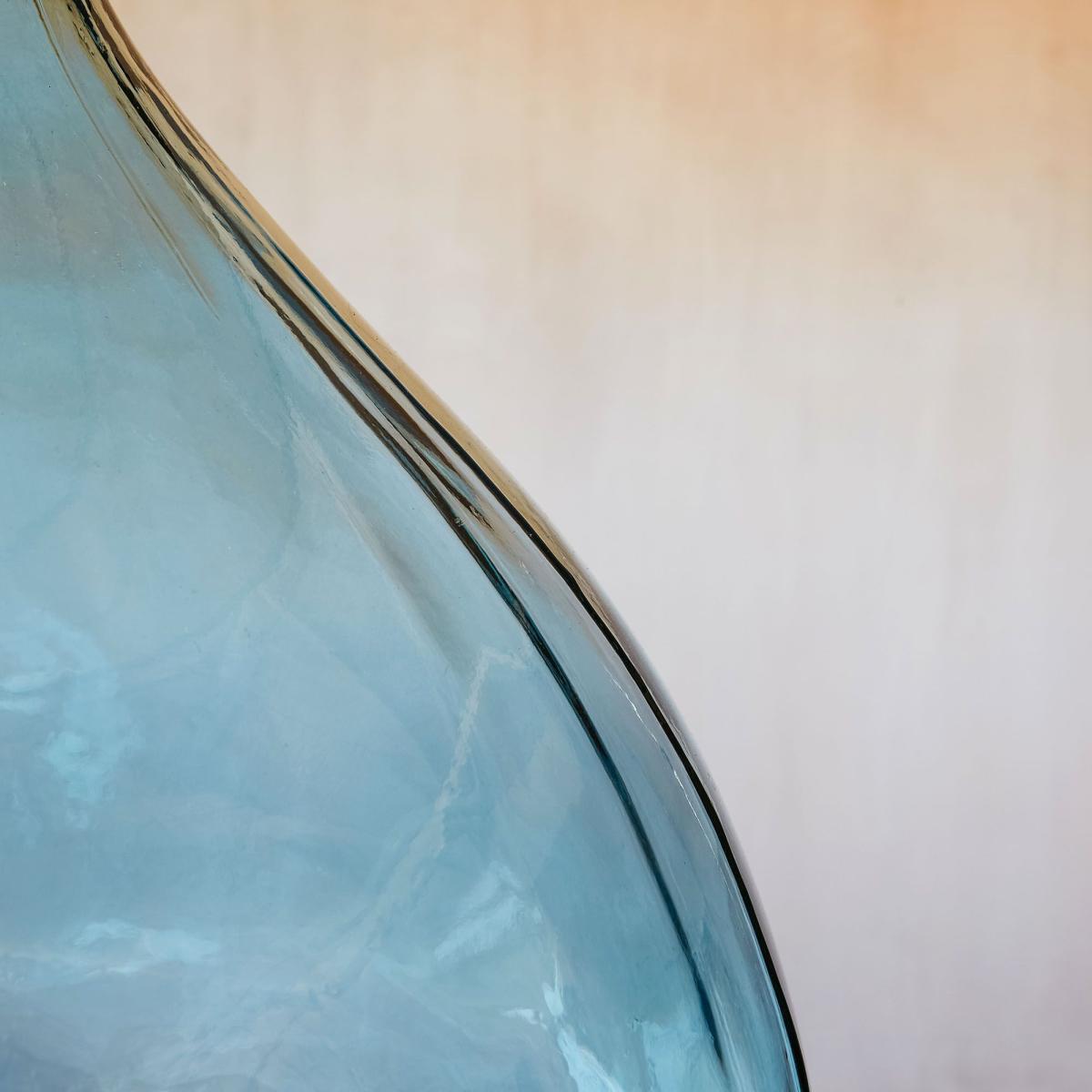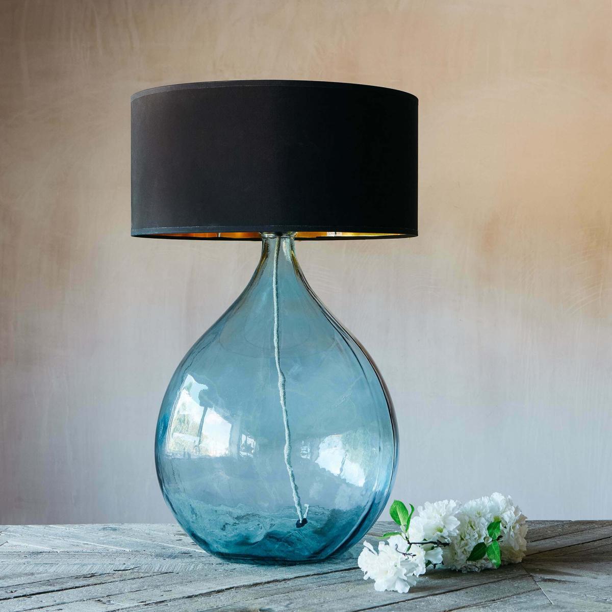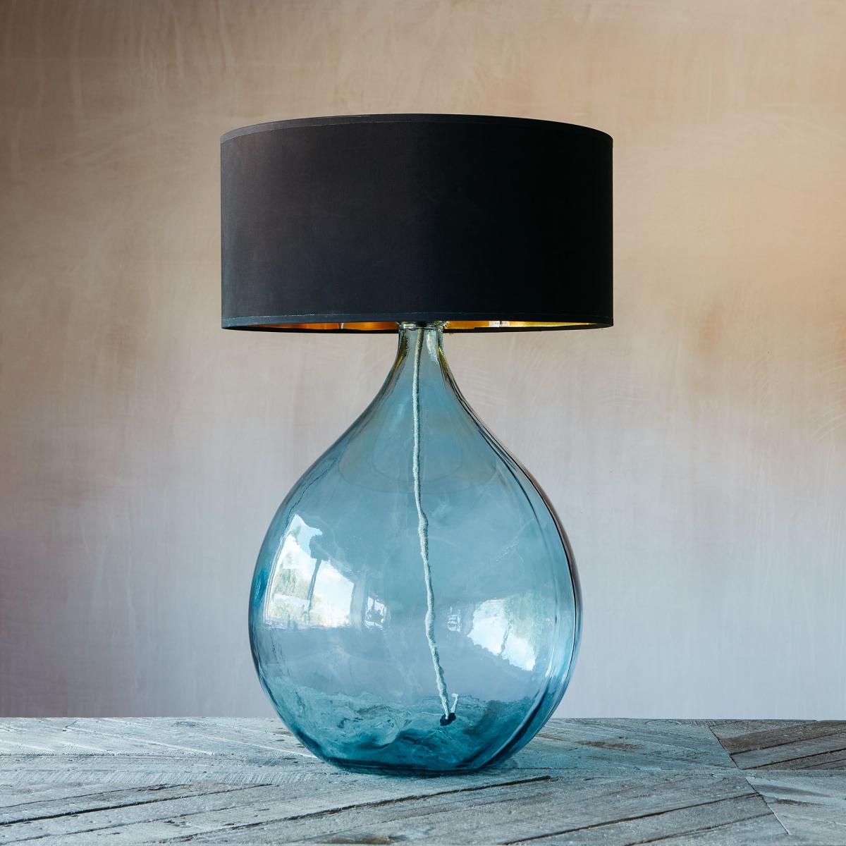 Oversized with impressive proportions, this table lamp is handcrafted from recycled glass and features a glass base tinted with cerulean blue. Style with a velvet lampshade and make an impact with this oversized lamp.