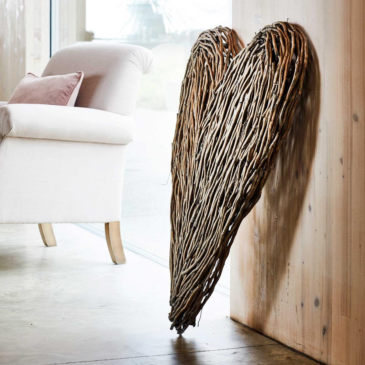 Design. Give your home some love with the Extra Large Wicker Heart. A cottage chic accessory that will add a homely feel to any room. A stylish accent that will not go out of trend, this wicker heart can be placed on a shelving unit to add a dimensional look or stood against mantel piece to add cosiness to your space.