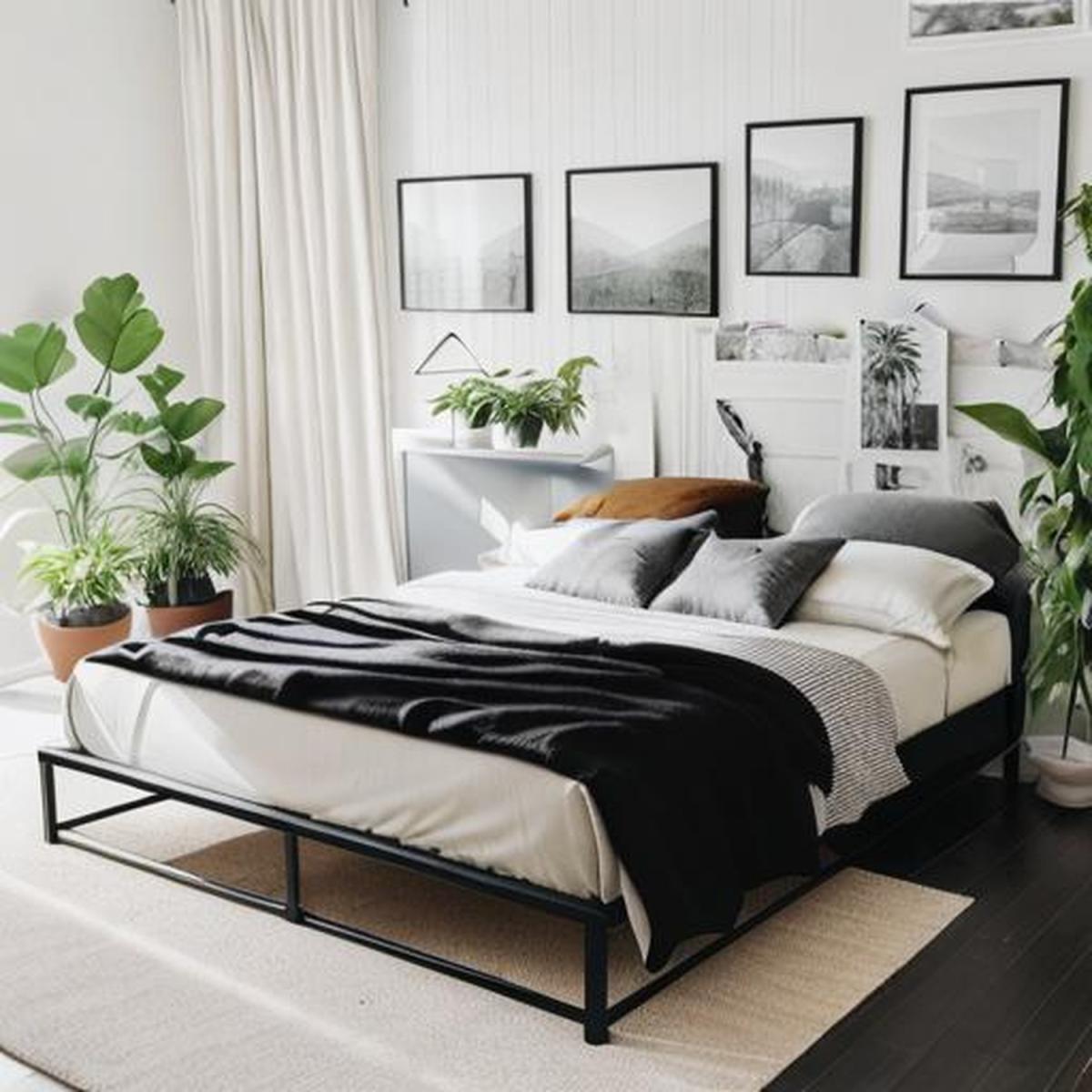 I love this black platform bed for its clean, no-fuss lines and robust steel build - it feels sturdy without looking clunky. Its low profile and matte finish work particularly well in modern, industrial or Scandinavian schemes, and the under-frame clearance is ideal for neat storage boxes. For styling, keep bedding crisp and layered with a textured throw or cushions in natural tones to soften the metal. A woven rug underfoot and a pair of simple metal or wooden side tables will add warmth, while a few potted plants at the headboard bring in a touch of greenery without overwhelming the minimalist look.