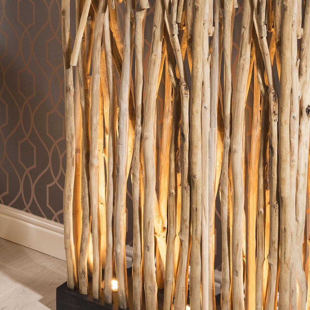 2 Meter High 1 Meter Wide Driftwood Floor Lamp with 3 x Halogen uplighter bulbs. The uplighting effects of the halogen bulbs are beautiful as the shapes and shadows of the driftwood are projected against the walls. Made by Europe's top lighting manufacturer, please do not confuse with cheap Asian copies. Please note this is a handmade unique driftwood product, each one will be different. 3 x GU10 halogen bulbs included. W100cm D25cm H200cm Quatropi premium lighting Modern design