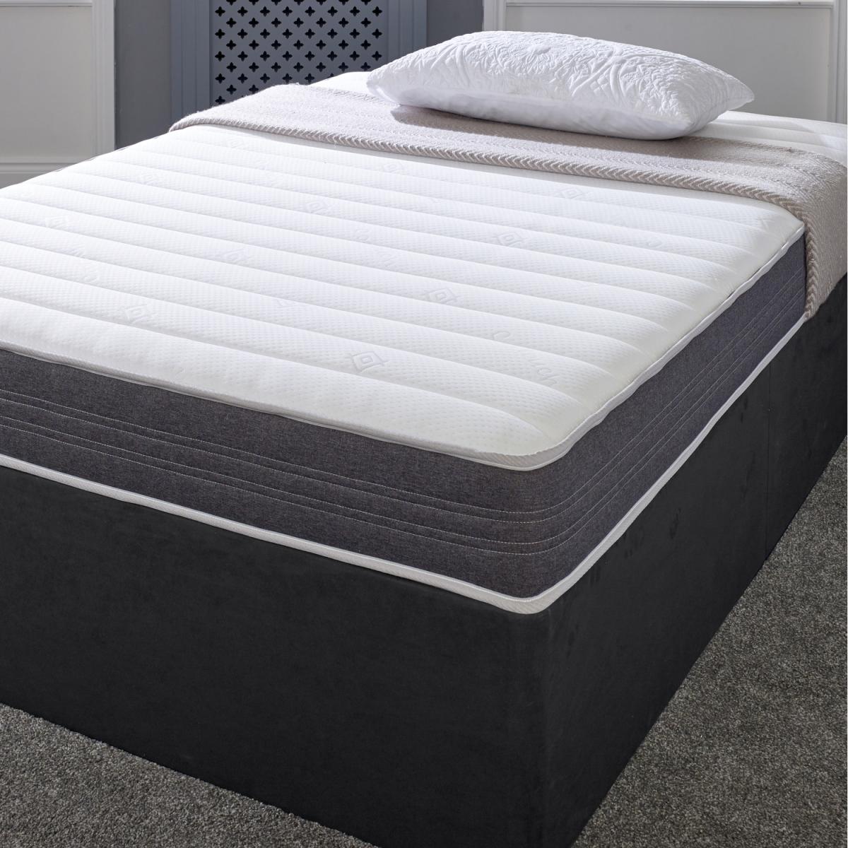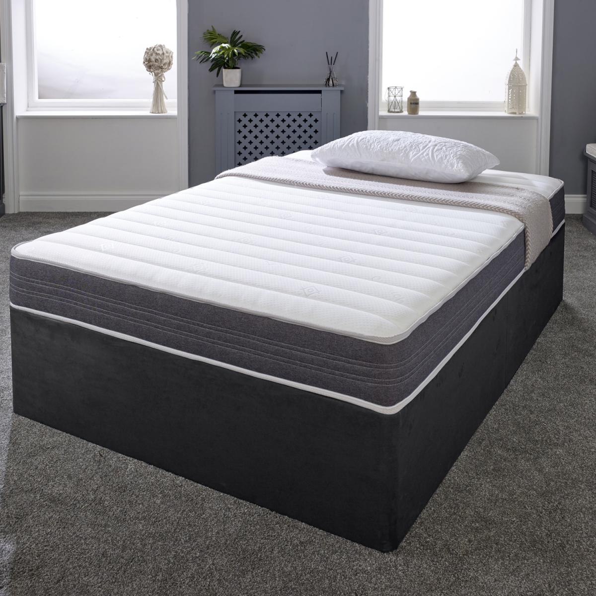 The Extreme Comfort Sirocco 18cm deep spring mattress combines a high-quality European engineered spring with layers of recycled & eco comfort fillings, a super soft memory fibre top layer & a Cooltouch Classic Comfort breathable sleep surface creating a superb soft/medium firmness mattress ideal for all the family. Cooltouch Classic super soft & breathable sleep surface ideal for keeping sleepers cool & comfortable. Revolutionary Airstream Memory Fibre replaces memory foam to provide a safer, cleaner, healthier eco memory foam alternative. The grey hessian border allows air into the mattress which promotes a cooler sleeping environment.