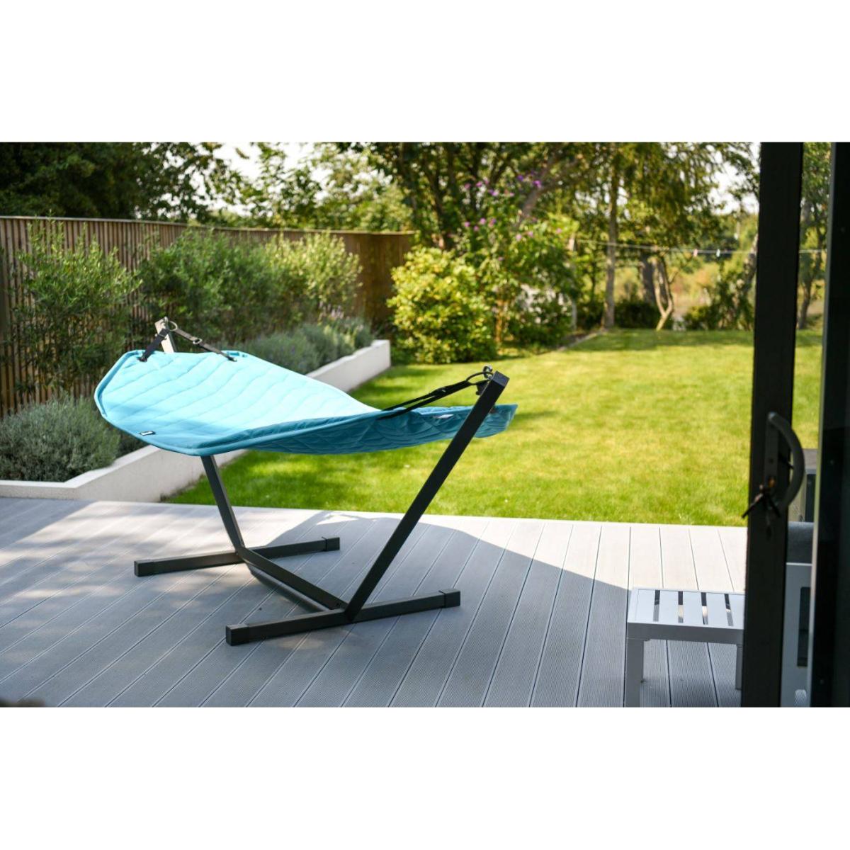 I love the Extreme Lounging B hammock for its sleek, modern look and practical frame. It's a great addition to contemporary interiors, especially in sunrooms, terraces, or even relaxed corners of open-plan living spaces. Its vibrant aqua colour can serve as a feature piece or work well in coastal, nautical, or laid-back schemes. When styling, consider pairing it with neutral furnishings to let the hammock stand out, or integrate cushions and throws in coordinating shades for added comfort. Practical tips include balancing it with minimal accessories and placing it where it can be easily accessed for quick relaxation or reading nooks. It's perfect for adding a touch of leisure without sacrificing style.