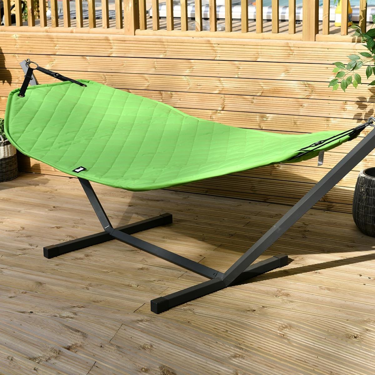 Sway your worries away with the Extreme Lounging B Hammock. Complete with a durable stand, quickly assemble your set and start relaxing!Made with weatherproof and UV resistant materials, use yours inside or head out to the garden and catch some rays sat in comfort. And if it suddenly starts to tip it down, you don't have to worry! Available in a selection of bright colours, it will look fabulous in any indoor or outdoor setting. Quilted for added comfort, you might just find yourself taking a quick snooze! Just as easy to fold down, when you've finished hanging out, quickly pack your set away. With other amazing designs available, see more from Extreme Lounging.