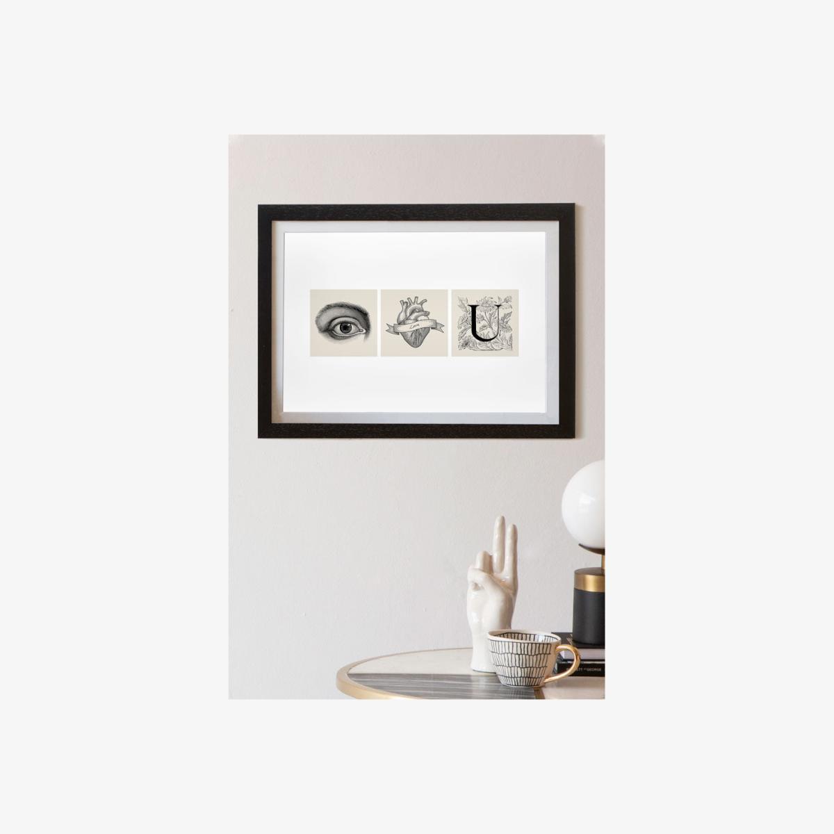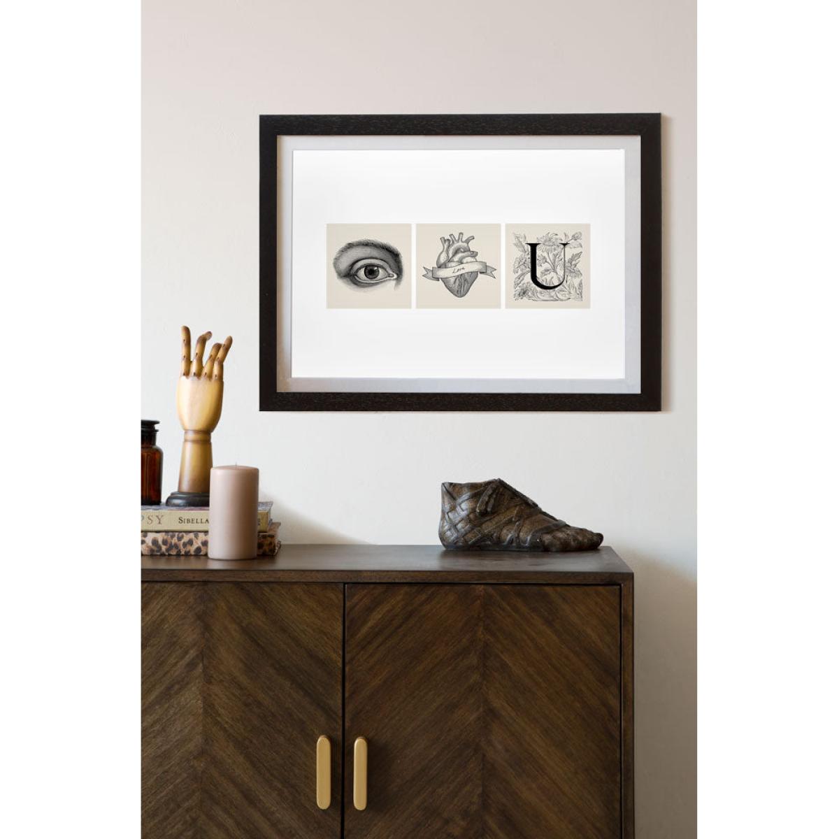 About The Eye Heart You Art Print Featuring fabulous black and white imagery, the Eye Heart You Art Print showcases a mixture of stunning symbols and a boldly beautiful illustration to create an ultra-charming piece for any scheme, available framed or unframed. The perfect gift idea for a special someone, this Abstract Art Print is a great way to say I Love You through amazing art, it is guaranteed to bring joy to your space. Why We Think You’ll Love The Monochrome Art Print A Contemporary Art Print with a meaningful motif, this piece of art will seamlessly transform your interior whilst introducing a wonderful message that will put a smile on anyone's face. Exuding a marvellously eccentric style, this Wall Art Print will create the wow factor wherever it is placed with its glorious designs that have a marvellous meaning, radiating a playful allure on any wall. Where To Style The Love Modern Art Print Use this Unusual Wall Art as the stunning centrepiece of a magnificent picture wall and pair it with additional art prints and memories you hold dear for a divine display that is also personal to you. This Black and White Art Print would look ultra-gorgeous in your bedroom hung above the bed or a mantelpiece, bringing a serene elegance to the space that is simply bursting with character.