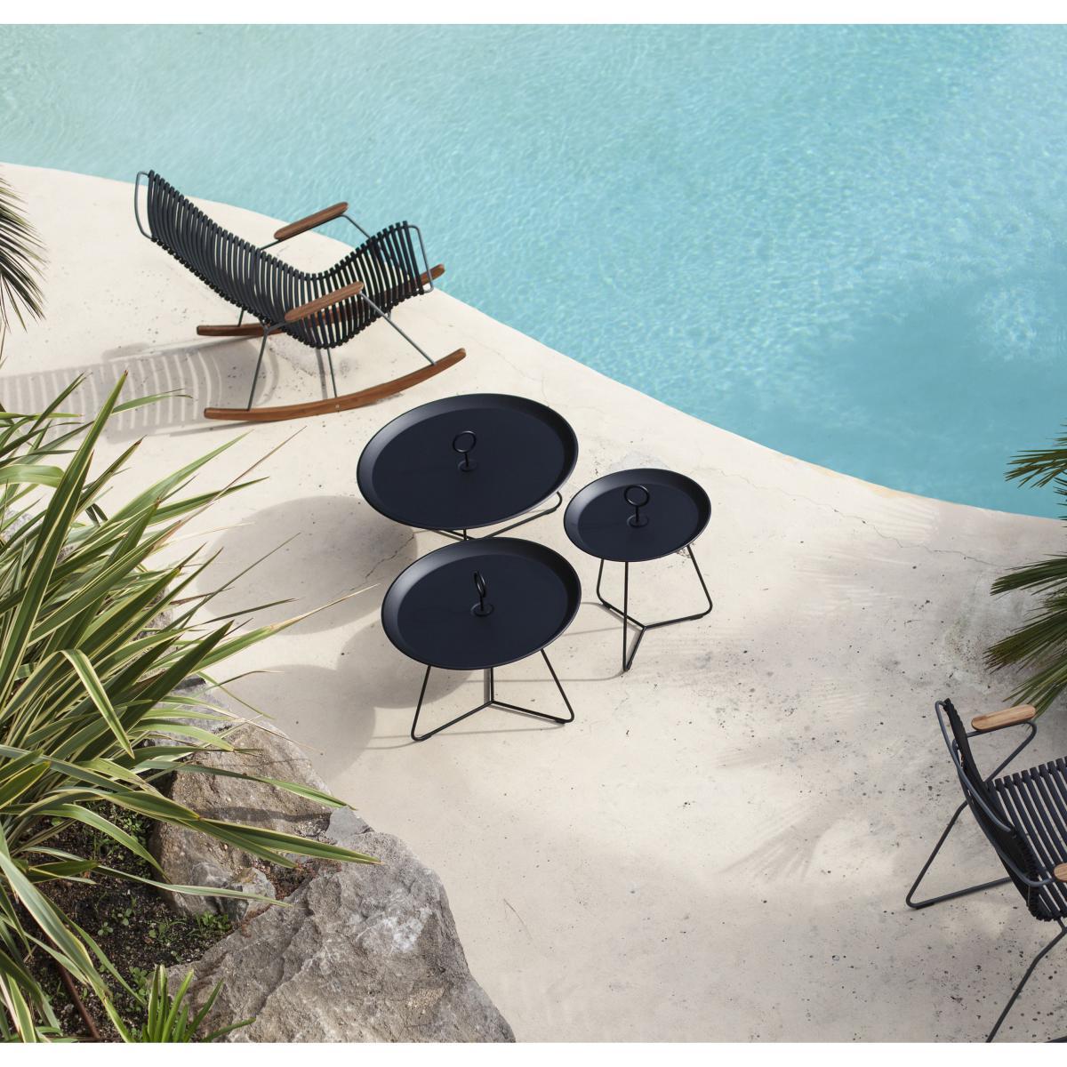 Available in some very current colours, this small, portable, easy-going table can move from the lounge to the garden depending on your needs! Made of lacquered metal, "Eyelet" is characterised by its tripod base and tubular structure that passes through the top in its centre. A true extension of the structure, the handle ensures a good grip of the product while guaranteeing perfect balance during transport. It’s this unique design that makes the product so very original and functional! This highly durable coffee table is there for all your moments of relaxation. It has a drainage hole that prevents rainwater from stagnating.