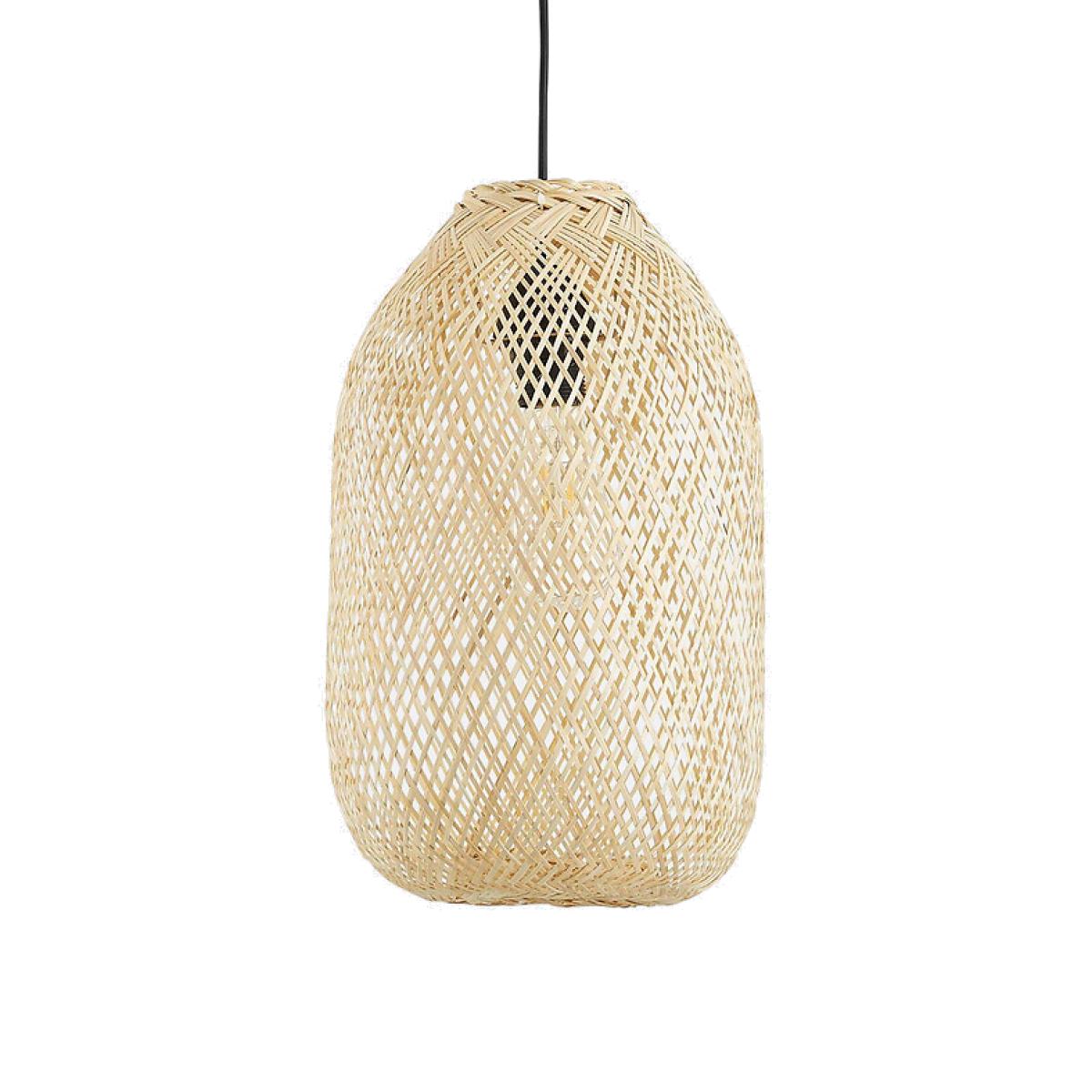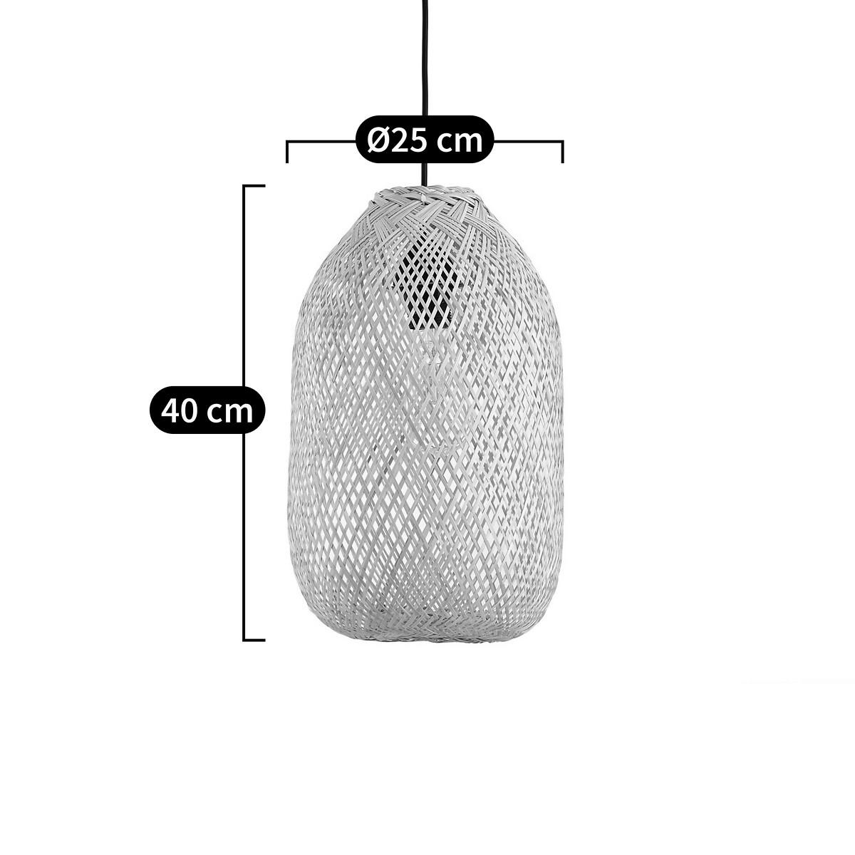 This ceiling light plays the card of plant and light design with its braiding of crossed bamboo fibres, for a soft, warm and diffused light. Product Details • Non-electrified bamboo ceiling light • Iron structure • Compatible with E27 bulb (not included)Dimensions • Diameter: 25cm • Height: 40cm. Note : Electrical system sold separately. Find it by typing 'Baulind cable' into the search box on our site. Dimensions and weight of parcel:1 parcel • 42 x 27 x 27cm • 1.2kg