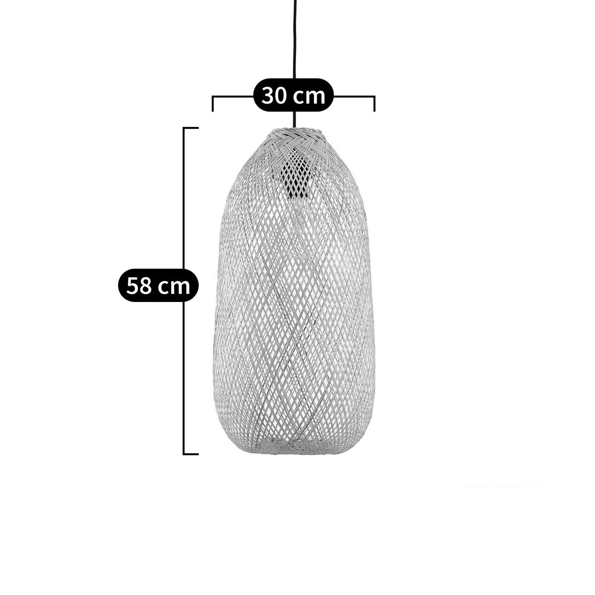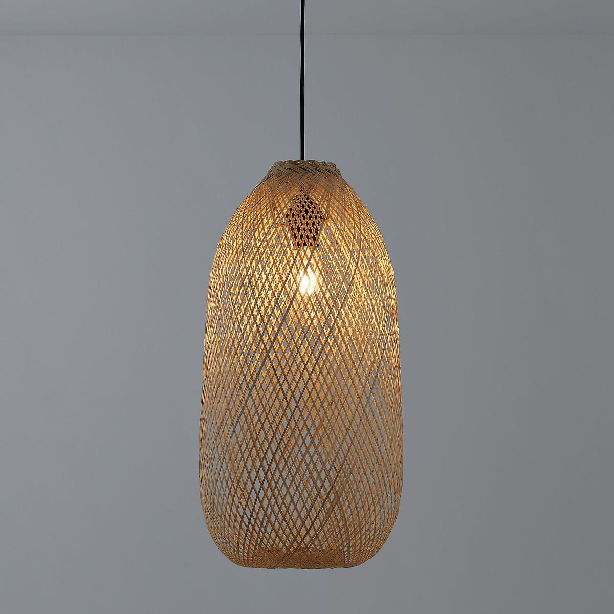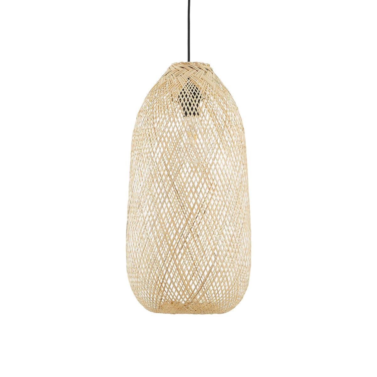 This ceiling light plays the card of plant and light design with its braiding of crossed bamboo fibres, for a soft, warm and diffused light. Product Details • Non-electrified bamboo ceiling light • Iron structure • Compatible with E27 bulb (not included)Dimensions • Diameter: 30cm • Height: 58cm. Note : Electrical system sold separately. Find it by typing 'Baulind cable' into the search box on our site. Dimensions and weight of parcel:1 parcel • 60 x 32 x 32cm • 1.6kg