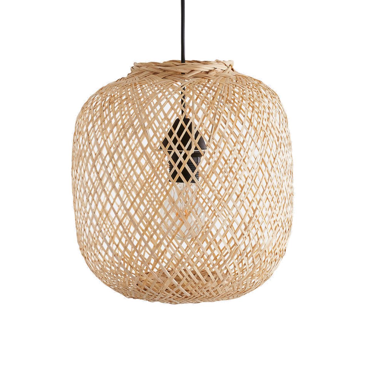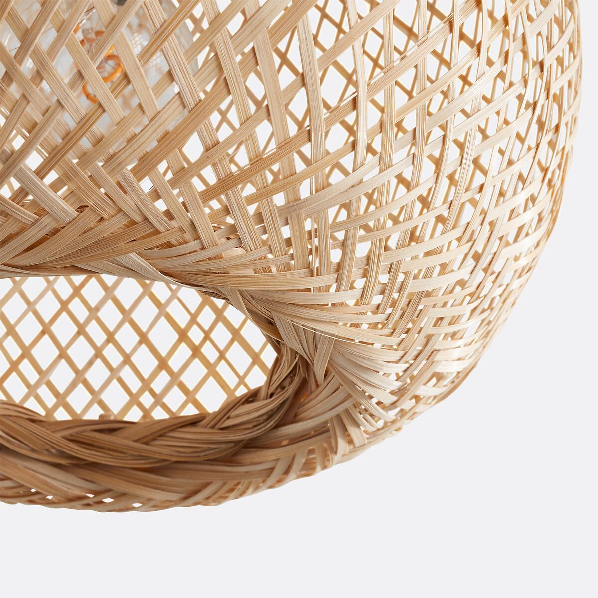 The Ezia ceiling lamp plays the aerial plant design card with its weaving of crossed bamboo fibres. For a softly diffused light. Product Details • In bamboo. Non-electrified • Iron structure • Supports E27 bulb (not supplied) • This product is sold non-electrified. Baulind electrical cable is sold online. Dimensions • Diameter: 33cm • Height: 28.5cm. Dimensions and weight of parcel1 parcel • L35 x H31 x D35cm • 1kg