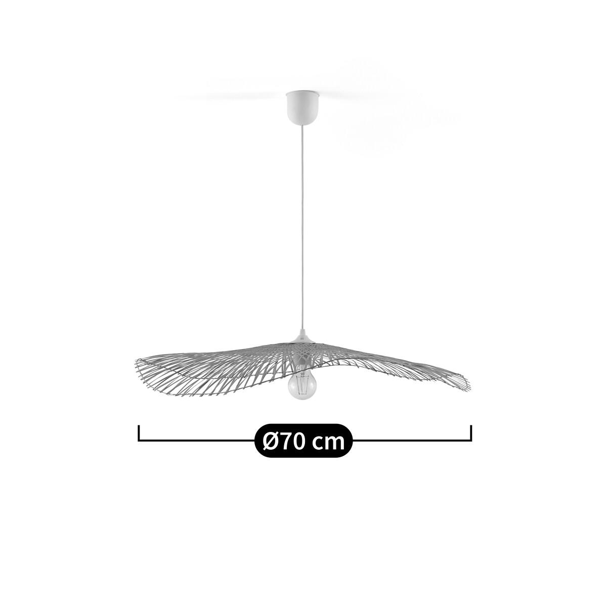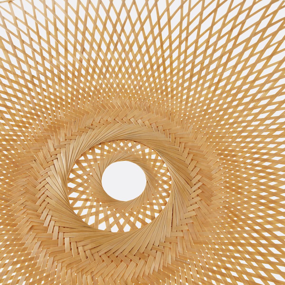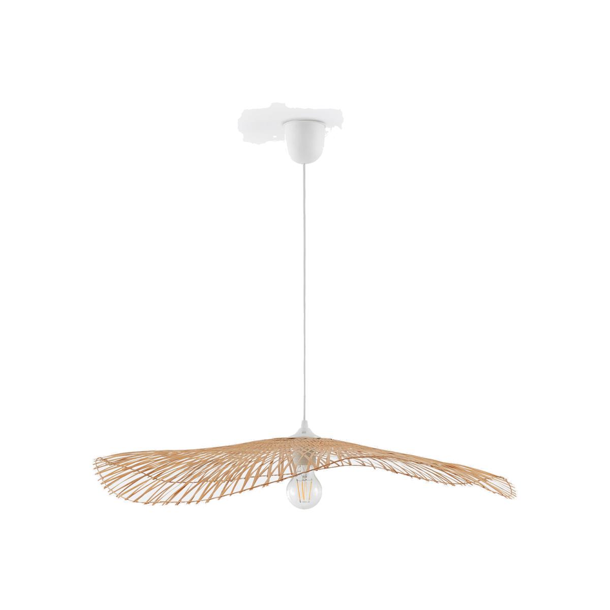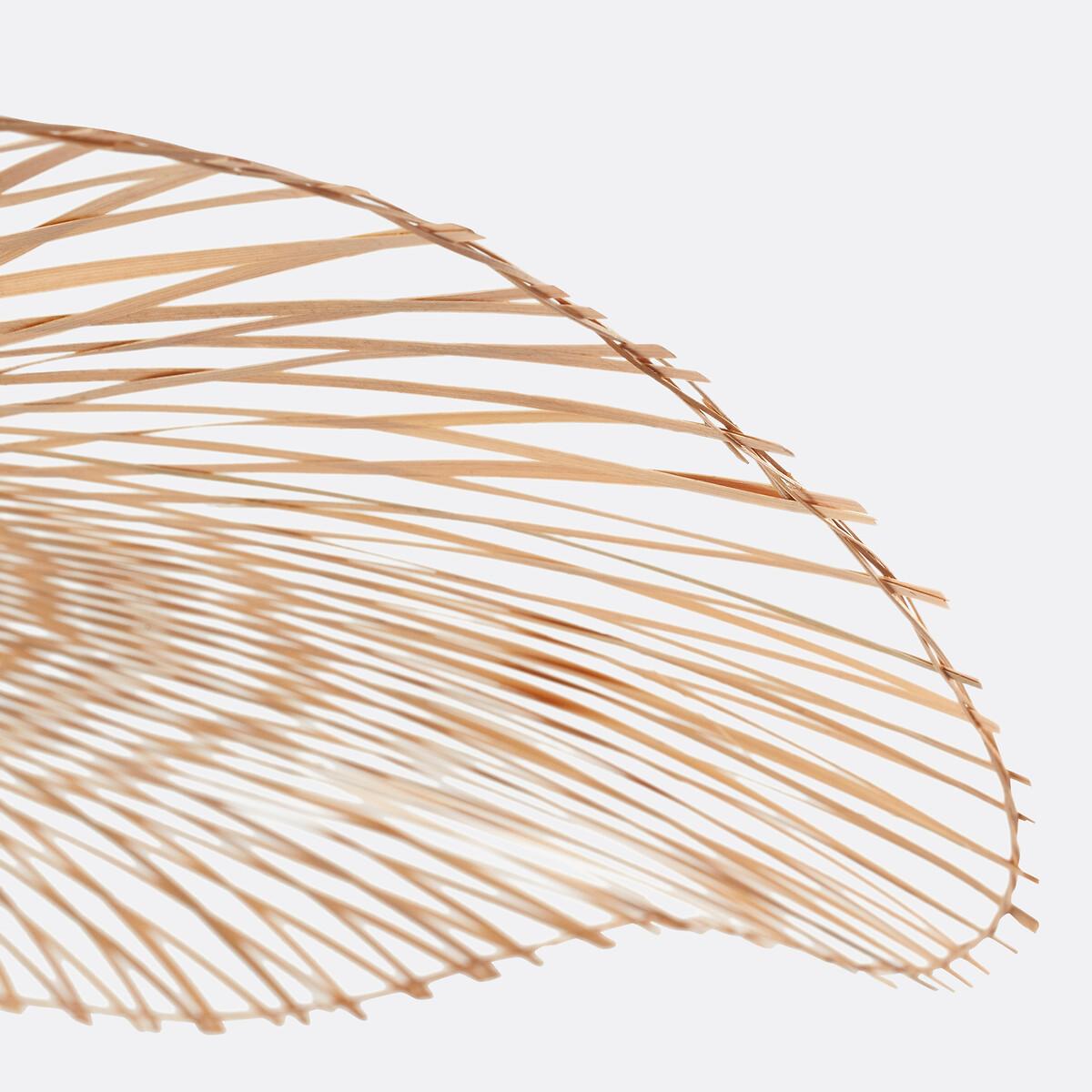 Fancy a lightweight and delicate note? The Ezia ceiling light will delight you. Its lightweight weaving will bathe your interior in a play of shadows and light, soothing and dynamic.. Product Details • Lightweight bamboo ceiling light • Compatible with E27 bulb (not included) • This product is sold non-electrified. Find the Baulind electric cable sold on the site. Quality Info • Artisanal craftsmanship. The product takes on a more airy shape once installed. Dimensions • Diameter: 70cm Parcel dimensions and weight:1 parcel • L72 x H3 x D72cm. 2.5kg.