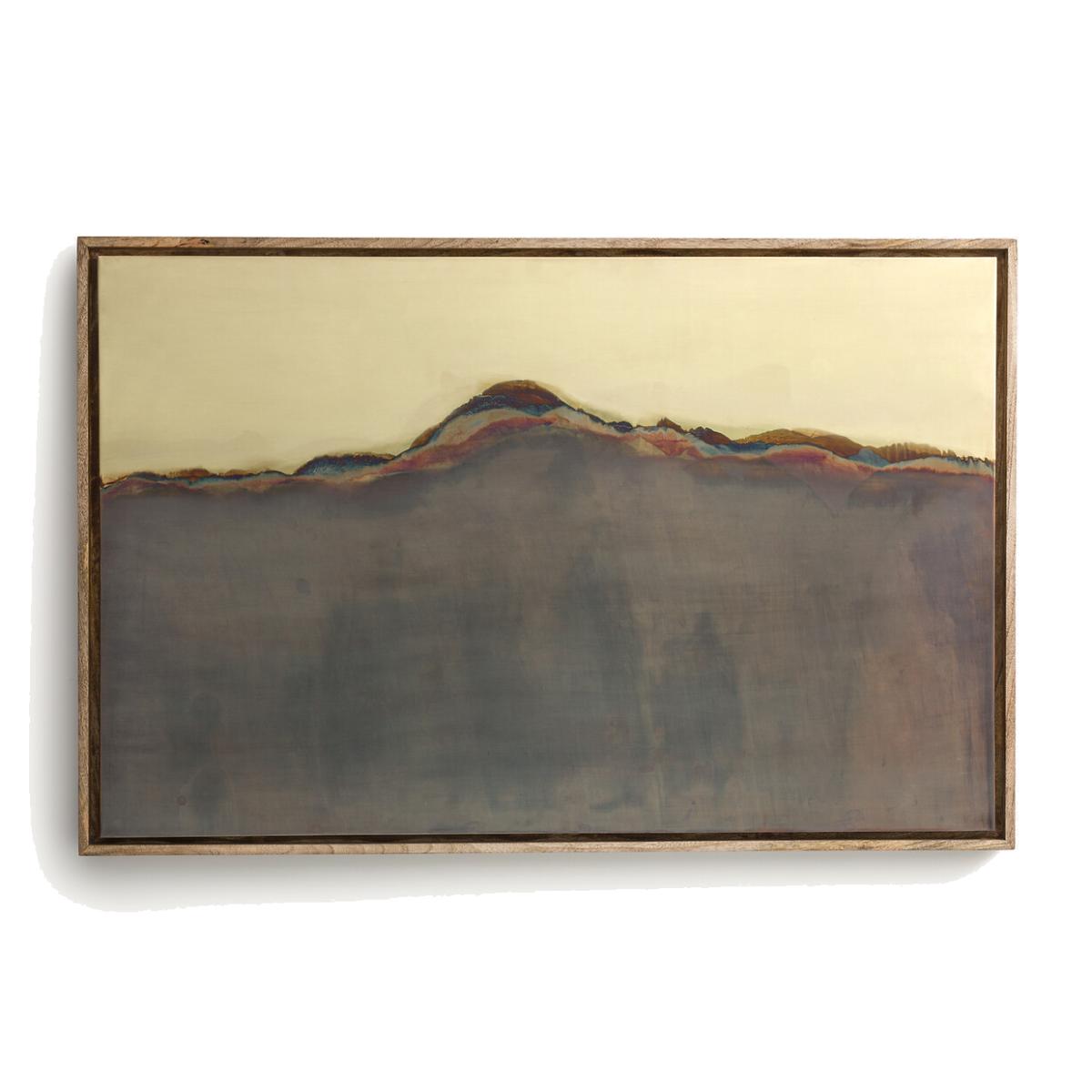 Produced in oxidised steel, Ezis is an untreated work in its own right, where the metal creates the design. Shades of blue and brown evoke nature and the earth. A landscape of mountains and rocks takes shape under a dark sky. Acid oxidation gives each piece of wall art its own unique look. A stunning, sophisticated decorative feature for any space. Product Details • Stainless steel wall art • Design produced by the chemical reaction obtained by acid oxidation, each piece is unique • Mango wood frame • Can be positioned vertically or horizontally. Dimensions • Width: 122cm • Height: 81cm • Thickness: 4cm/1.5" • Weight: 8.3kg. Dimensions and weight of parcel • 1 parcel • L92 x H135 x D14cm, 14.6kg