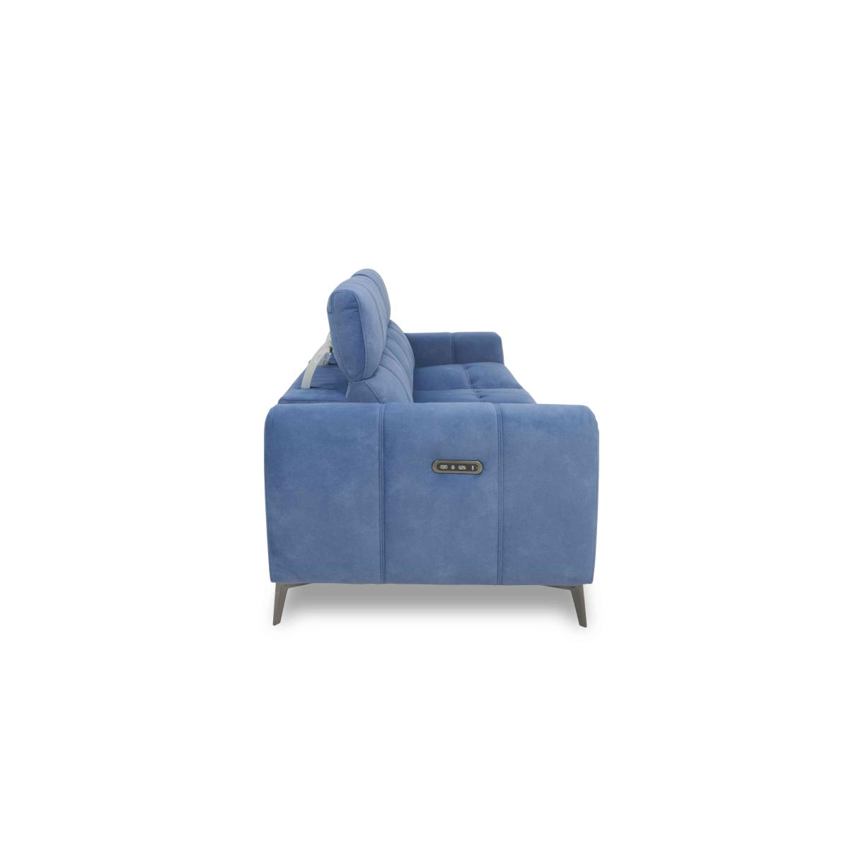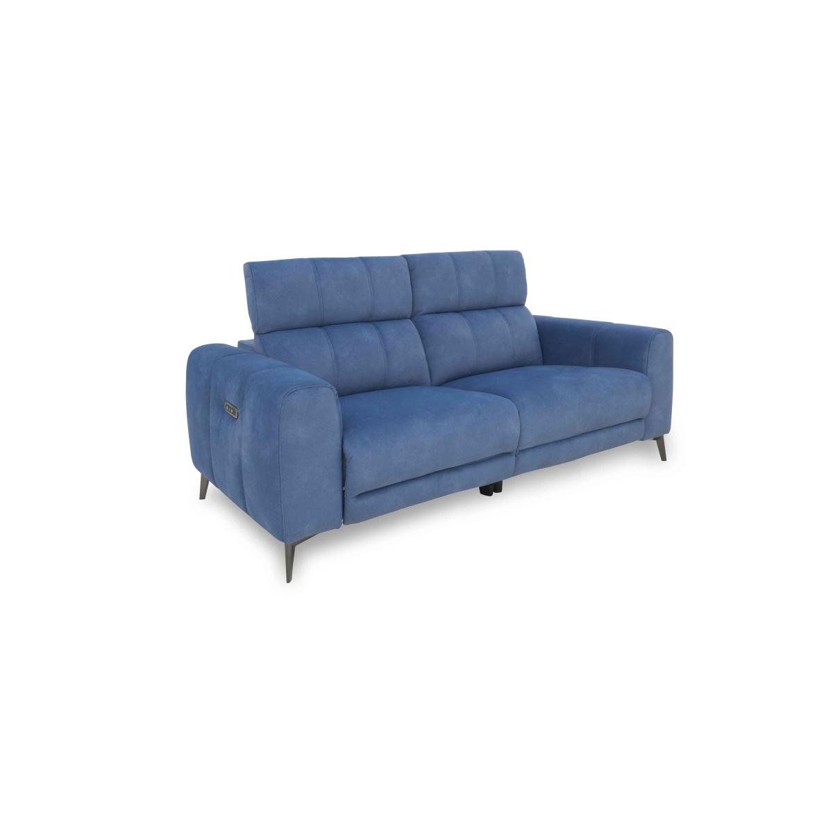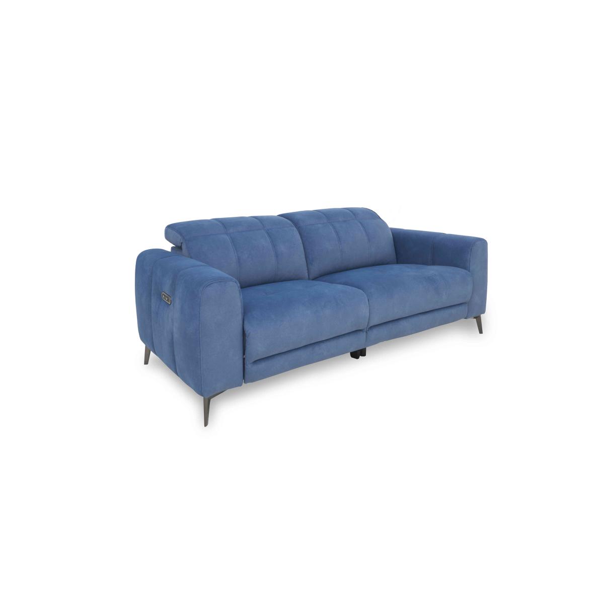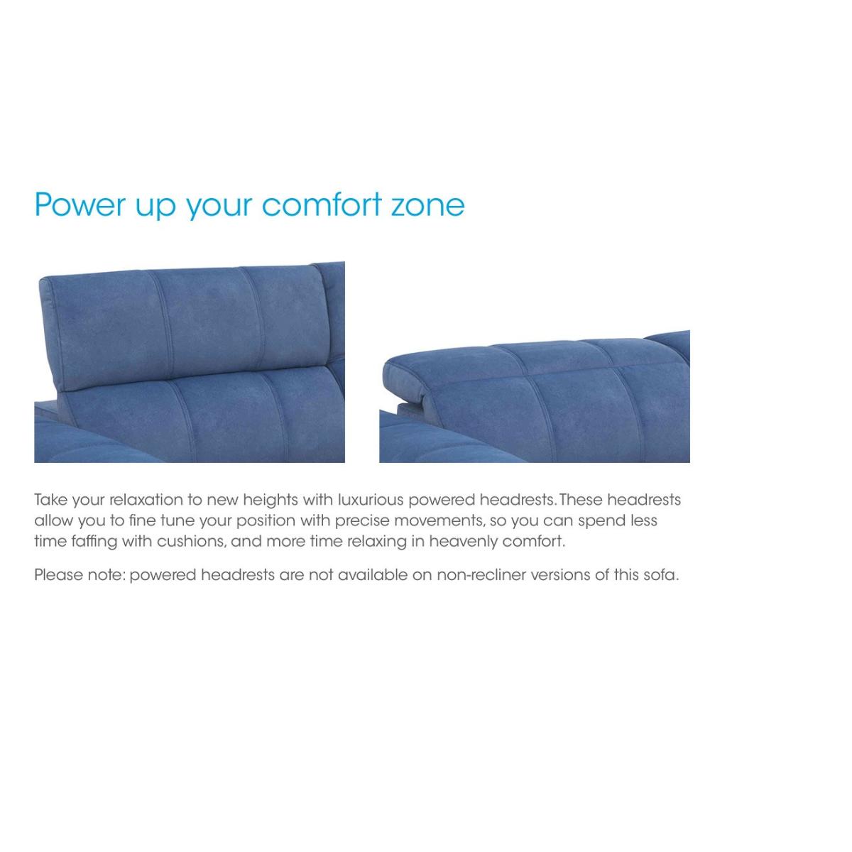 With wide arms and a bold modern profile, beautifully tailored upholstery with striking stitching, and slender gunmetal-finished legs, Ezra delivers contemporary style that’s beyond cool. And if you love the look, just wait until you take a seat. The corner sofas, sofas and armchairs in the Ezra collection have independently adjustable power recliners and power headrests for relaxation your way, fabulous pocket spring seat cushioning, and built-in USB charging for those all-day lounging sessions. Available in 100% leather and beautiful fabric upholstery in a wide choice of colours, the Ezra collection is handmade and exclusive to Furniture Village. This fantastic-value two-seater sofa wows for comfort as well as style. With power recliners, power headrests and pocket sprung seats, it’s easy to relax in style. Why you'll love it Cool, contemporary and extraordinarily comfortable. Power recliners and headrests move independently for perfectly positioned relaxation. Fabulous pocket sprung seat cushion interiors. Stylish seat and back stitching keeps cushioning looking perfect. Superb-quality fabric upholstery. Slender legs have a gunmetal finish. Handy USB charging is built in. Handmade and only at Furniture Village. This 2-seater fabric power recliner sofa is part of our Ezra range. What you need to know Medium comfort level. Seat suspension: sinuous spring. Seat cushioning: pocket spring. Seat cushions are fixed. Back suspension: webbing. Back cushioning: fibre. Back cushions are fixed. Arm cushioning: foam and Dacron. Legs are removable. USB charging is only available with the power version of this sofa. Please allow time for the recliner mechanism to ease. Minor gaps are necessary to ensure ease of motion and may be exaggerated depending on floor type. Some fabrics can show wear on areas of more use or in direct sunlight. Clean regularly using a soft brush or vacuum with the curtain attachment. Deal with any spills promptly. Professional cleaning advised for oil- and grease-based stains. Fixed seat and back cushions require smoothing and straightening regularly. To smooth and straighten fixed cushions, punch the back cushion’s top two corners and the seat cushion’s outer two corners, and pinch outwards. Please read our upholstery care guide for more advice.