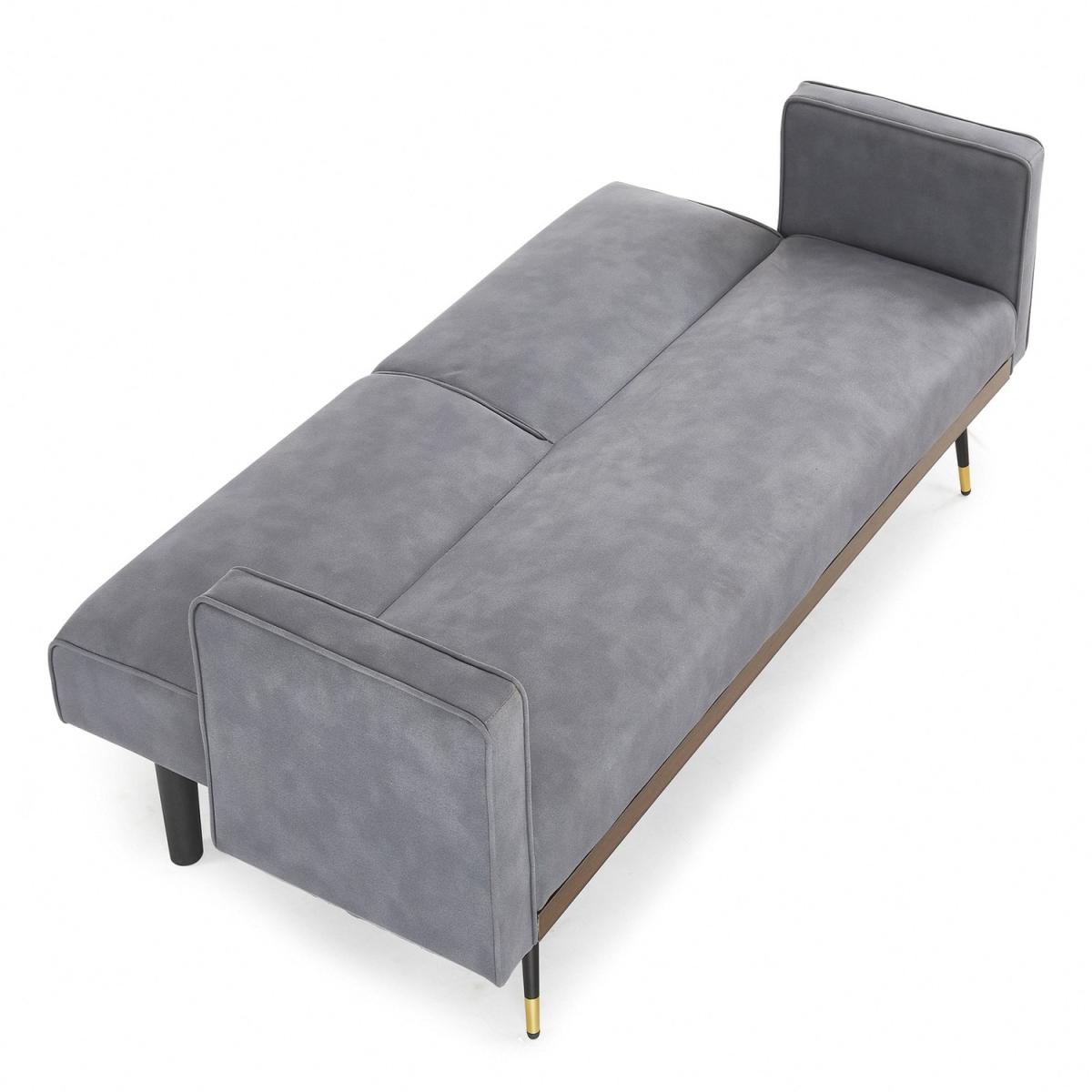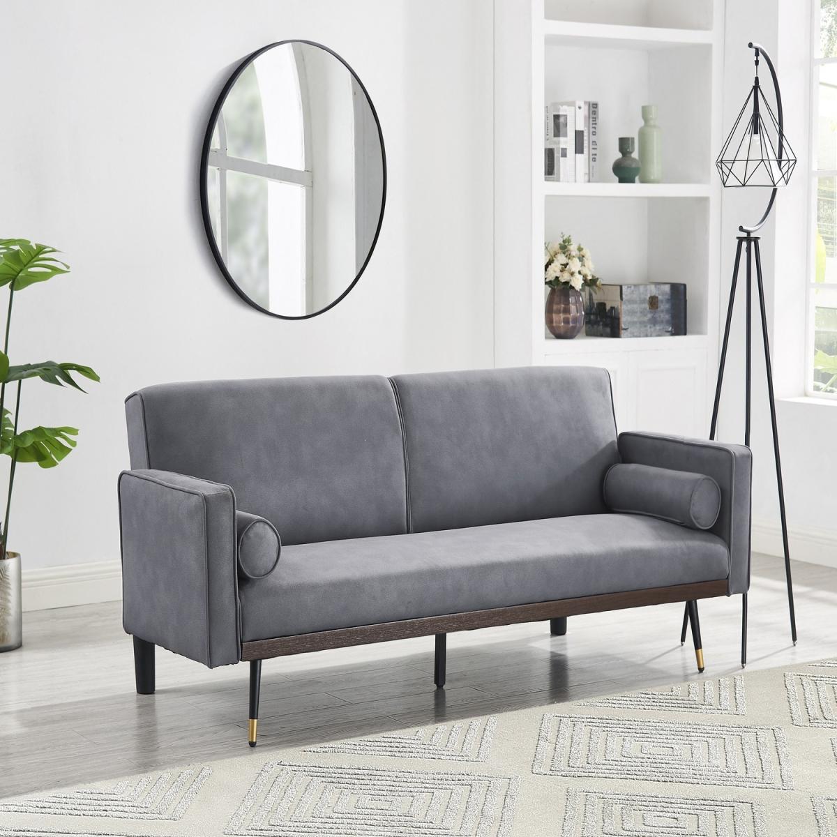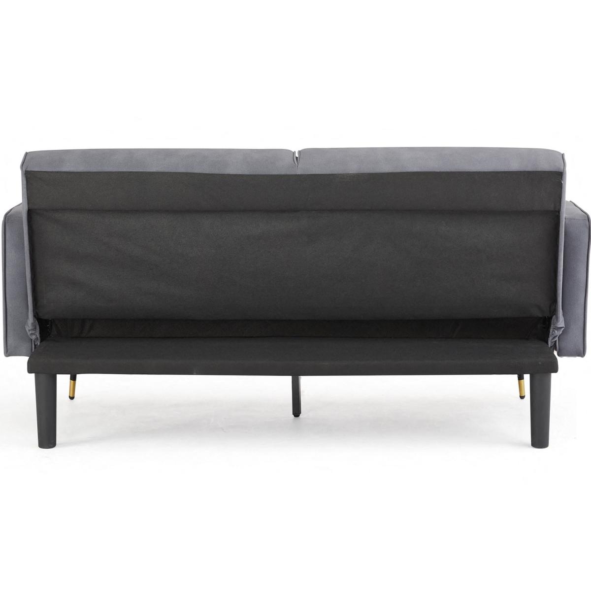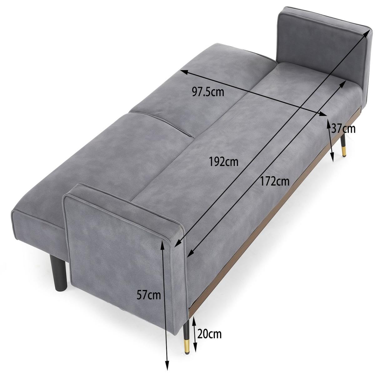 Introducing EZRA, a 3-seater fabric sofa bed available in Navy Blue, Mustard, Dark Green and Grey Fabric. The EZRA sofa bed has a modern style that matches well with most contemporary interiors, it features generously filled piped edge padded seat and backrest, 2 matching bolster cushions and stands on metal tipped wooden legs. Convertible design - this sofa bed has a simple clic-clac mechanism that allows it to swiftly and simply transform from a sofa to a recliner to a bed, making it ideal for overnight guests. This sofa bed cannot be freely positioned in your room. The back of this sofa bed is upholstered in a black woven fabric that does not match the colour of the sofa bed fabric. This new technological fabric has an air leather appearance with a soft suede feel to the touch. Due to differences in lighting and screen resolution on laptop, desktop, and mobile devices, some fabrics may appear somewhat different in person. To get the most out of your sofa bed we recommend gently cleaning with the upholstery attachment of your vacuum cleaner or using a soft hand brush once per week. You might need to screw the legs to the underside of some of our sofa beds since they don't all have pre-drilled holes. All of our sofa beds come with an easy-to-follow assembly guide. Delivered by our friendly couriers on a 2-man delivery service within 3-7 working days. The courier will deliver to a room of your choice.