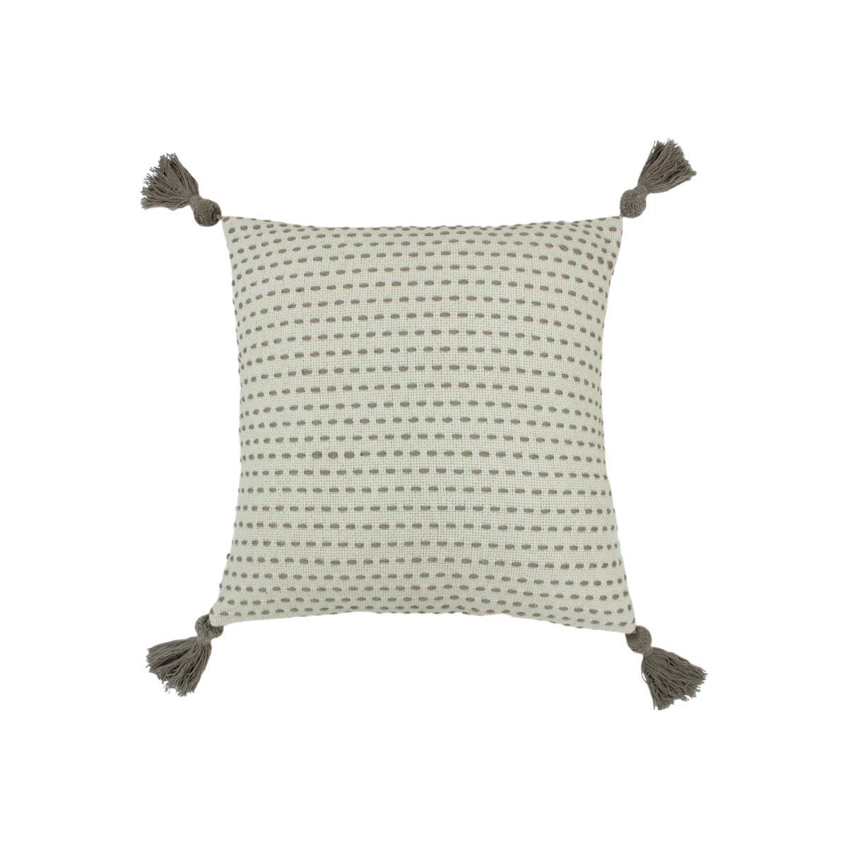 I really like this cushion for adding a touch of understated elegance to a neutral or muted scheme. The grey tone makes it versatile, fitting well in both contemporary and coastal-inspired interiors. Its subtle pattern and tassel detailing bring a bit of texture without overwhelming the space. I’d recommend pairing it with other cushions in similar tones or contrasting textures for layered, cosy looks on sofas or armchairs. Practical styling tip: it works well against a crisp white or soft pastel backdrop, and keeping the surrounding accessories minimal helps it shine as a subtle accent piece.