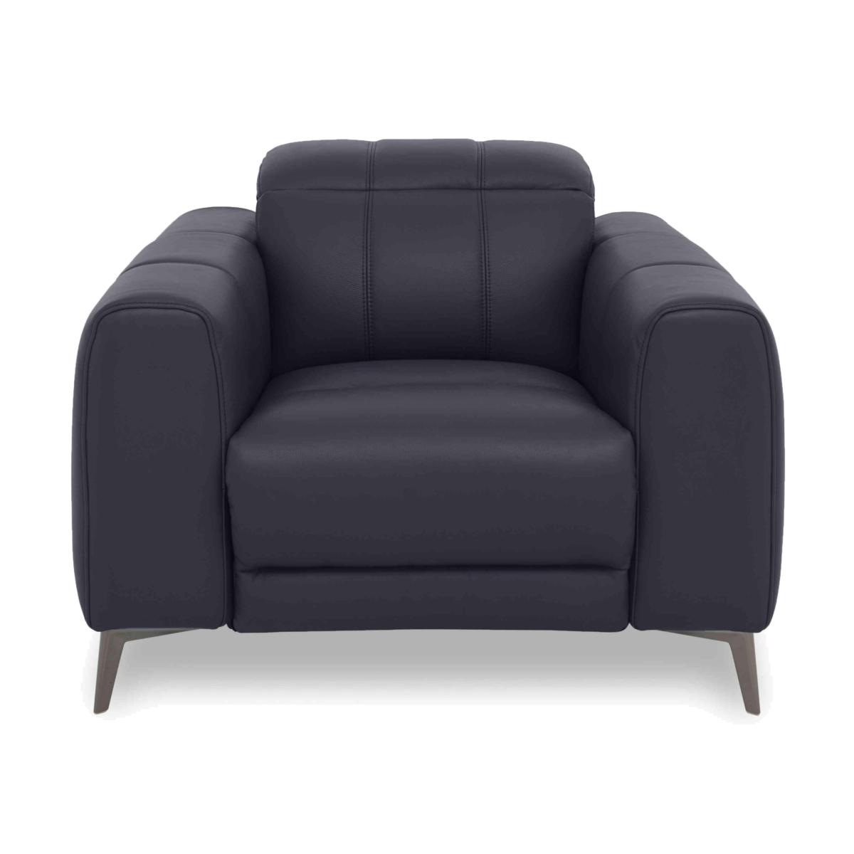 With wide arms and a bold modern profile, beautifully tailored upholstery with striking stitching, and slender gunmetal-finished legs, Ezra delivers contemporary style that’s beyond cool. And if you love the look, just wait until you take a seat. The corner sofas, sofas and armchairs in the Ezra collection have independently adjustable power recliners and power headrests for relaxation your way, fabulous pocket spring seat cushioning, and built-in USB charging for those all-day lounging sessions. Available in 100% leather and beautiful fabric upholstery in a wide choice of colours, the Ezra collection is handmade and exclusive to Furniture Village. Recline in style with our great-value Ezra power reclining armchair. With its independently adjustable headrests and pocket spring seat cushioning, it's every bit as comfy as it looks. Why you'll love it Cool, contemporary and extraordinarily comfortable. Power recliner and headrest move independently for perfectly positioned relaxation. Fabulous pocket sprung seat cushion interior. Stylish seat and back stitching keeps cushioning looking perfect. Soft and supple 100% leather upholstery in a great choice of colours. Slender legs have a gunmetal finish. Handy USB charging is built in. Also available without the power recliner and headrest. This range is fully modular. Handmade and only at Furniture Village. This leather power recliner chair is part of our Ezra range. What you need to know Medium comfort level. Seat suspension: sinuous spring. Seat cushioning: pocket spring. Seat cushion is fixed. Back suspension: webbing. Back cushioning: fibre. Back cushion is fixed. Arm cushioning: foam and Dacron Legs are removable. USB charging is only available with the power version of this chair. Please allow time for the recliner mechanism to ease. Minor gaps are necessary to ensure ease of motion and may be exaggerated depending on floor type. Leather has unique marks and characteristics with variance in colour and texture. Leather softens with use. Smoothing the tops of leather cushions prevents signs of visual comfort. Fixed seat and back cushions require smoothing and straightening regularly. To smooth and straighten fixed cushions, punch the back cushion’s top two corners and the seat cushion’s outer two corners, and pinch outwards. Please read our upholstery care guide for more advice.