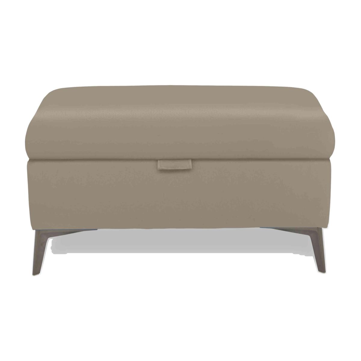 With wide arms and a bold modern profile, beautifully tailored upholstery with striking stitching, and slender gunmetal-finished legs, Ezra delivers contemporary style that’s beyond cool. And if you love the look, just wait until you take a seat. The corner sofas, sofas and armchairs in the Ezra collection have independently adjustable power recliners and power headrests for relaxation your way, fabulous pocket spring seat cushioning, and built-in USB charging for those all-day lounging sessions. Available in 100% leather and beautiful fabric upholstery in a wide choice of colours, the Ezra collection is handmade and exclusive to Furniture Village. This modern storage footstool is the perfect finishing touch. With its elegant gunmetal-finished legs, cushioned top, leather upholstery and, of course, roomy storage space, it’s a very stylish must-have. Why you'll love it Cool, contemporary and extraordinarily comfortable. Gives you a useful storage space and makes a great extra seat. Stylish stitching keeps top cushioning looking perfect. Soft and supple 100% leather upholstery in a great choice of colours. Slender legs have a gunmetal finish. Handmade and only at Furniture Village. This leather storage footstool is part of our Ezra range. What you need to know Cushioning: foam. Legs are removable. Leather has unique marks and characteristics with variance in colour and texture. Leather softens with use. Smoothing the tops of leather cushions prevents signs of visual comfort. Please read our upholstery care guide for more advice.