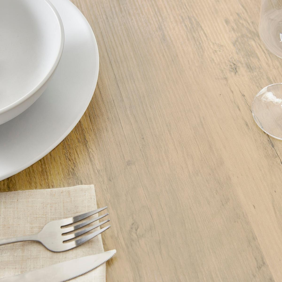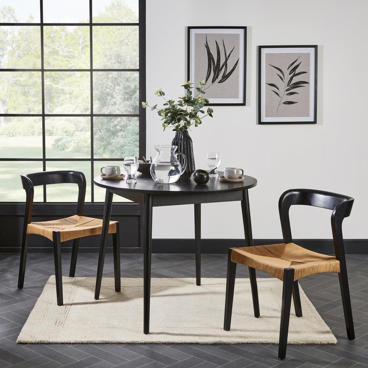 * Modern dining table* Light wooden finish* Contemporary dining chairs This extendable rectangular dining table offers the perfect solution for those seeking flexibility without compromising on aesthetic appeal. Featuring a simple drop-in leaf mechanism, this table effortlessly extends from 160cm to 200cm, providing additional seating space for special occasions or larger gatherings. The Melia chair is made out of natural materials giving it a rustic homely feel, but with a contemporary twist that looks great in any home. The rubber wood frame has a smooth, sleek finish and the natural cord seat is comfortable to sit on.