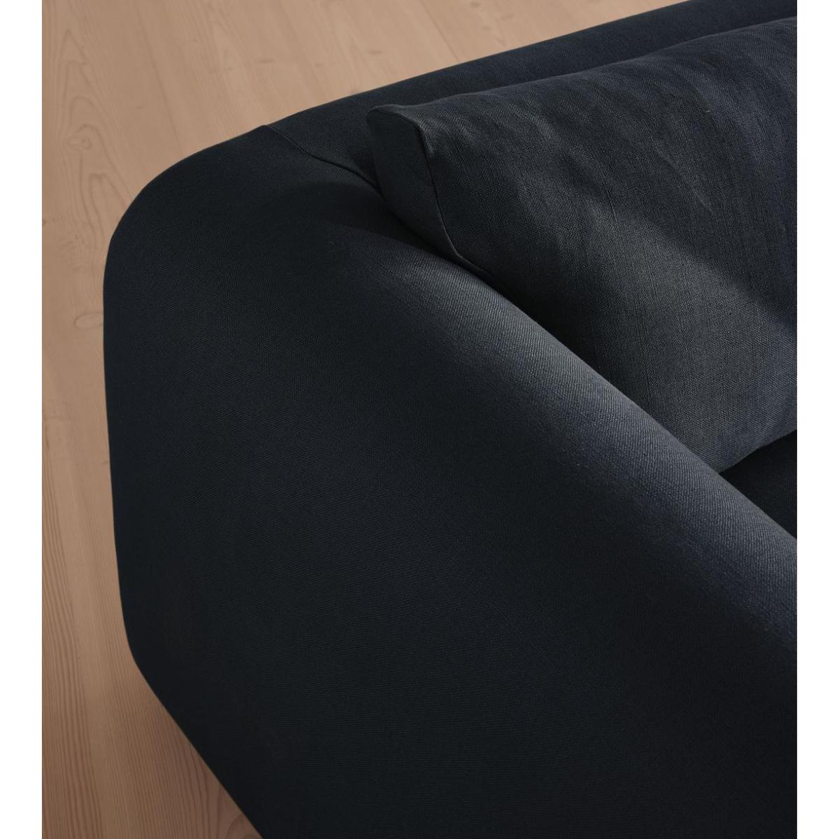 I love this sofa for its clean, contemporary silhouette and versatile colour palette. The linen upholstery in indigo adds a relaxed yet refined feel, making it perfect for both modern and eclectic interiors. It works beautifully in neutral spaces where it can serve as a statement piece, or in more layered schemes, teamed with textured cushions and throws for added comfort. Practical styling tips include pairing it with warm wooden accents or metallic details to elevate the look, and soft lighting will highlight its plush cushions. It's a great choice for living rooms aiming for a stylish yet inviting atmosphere.