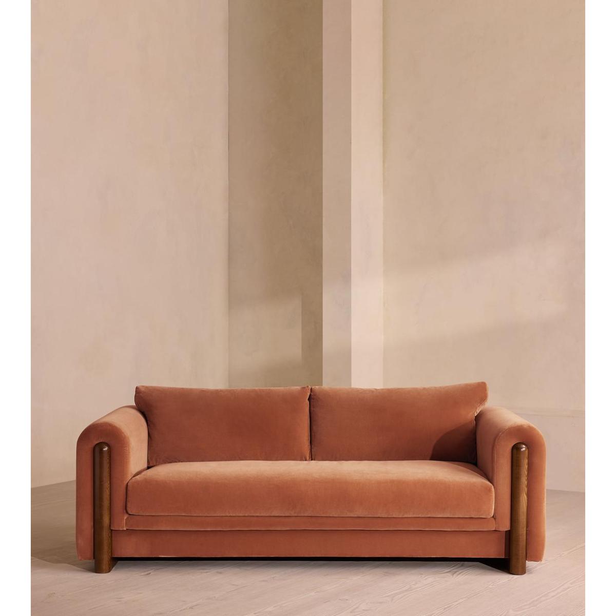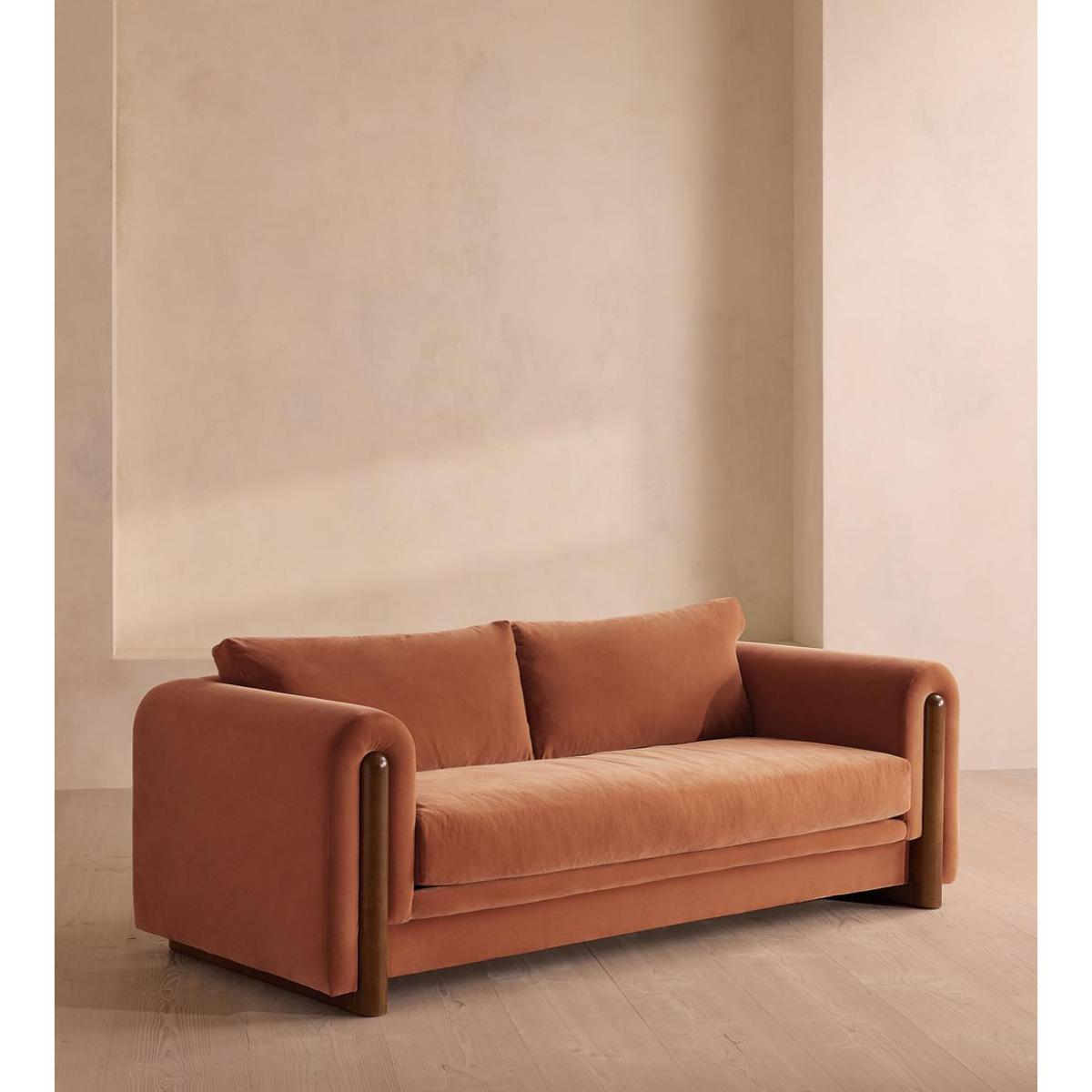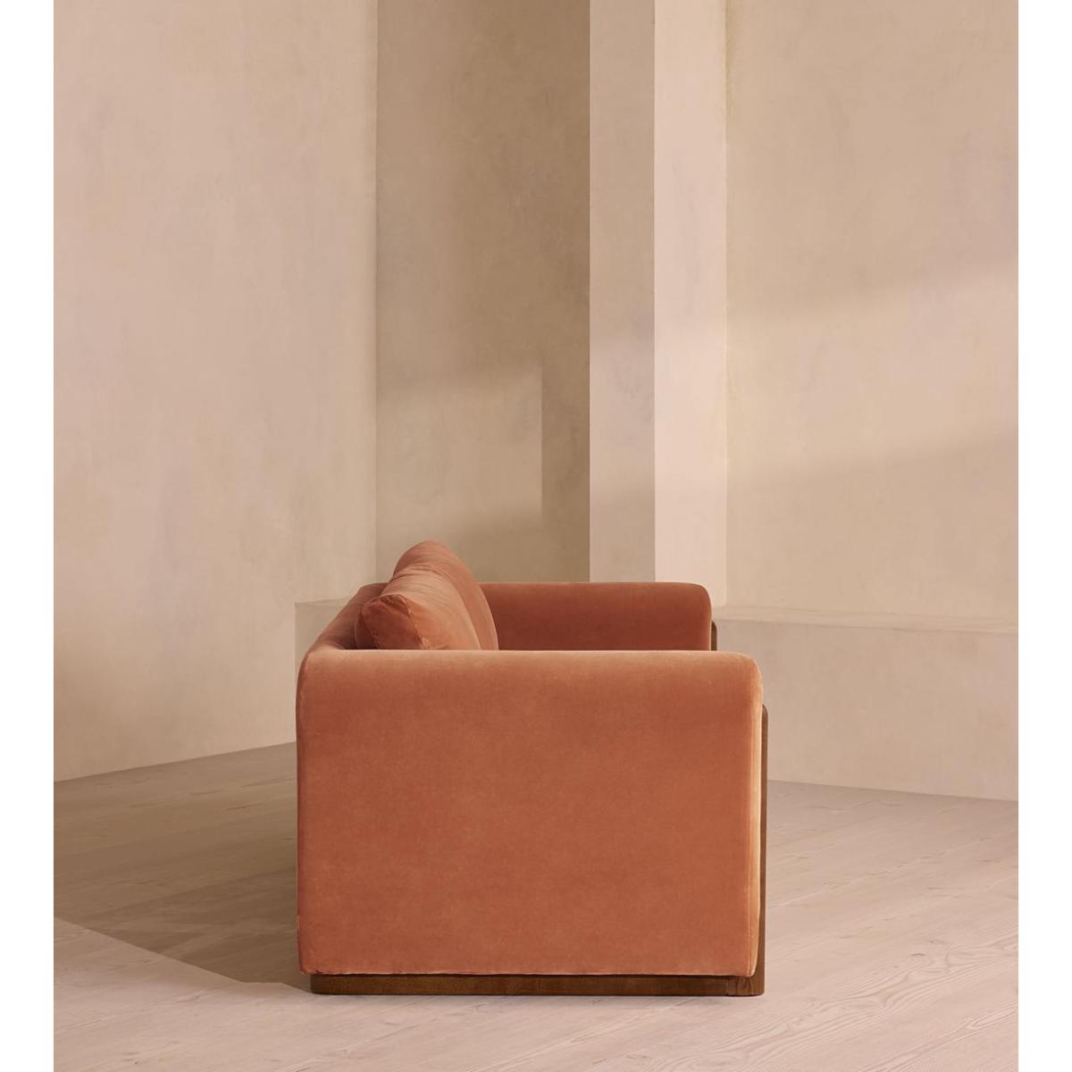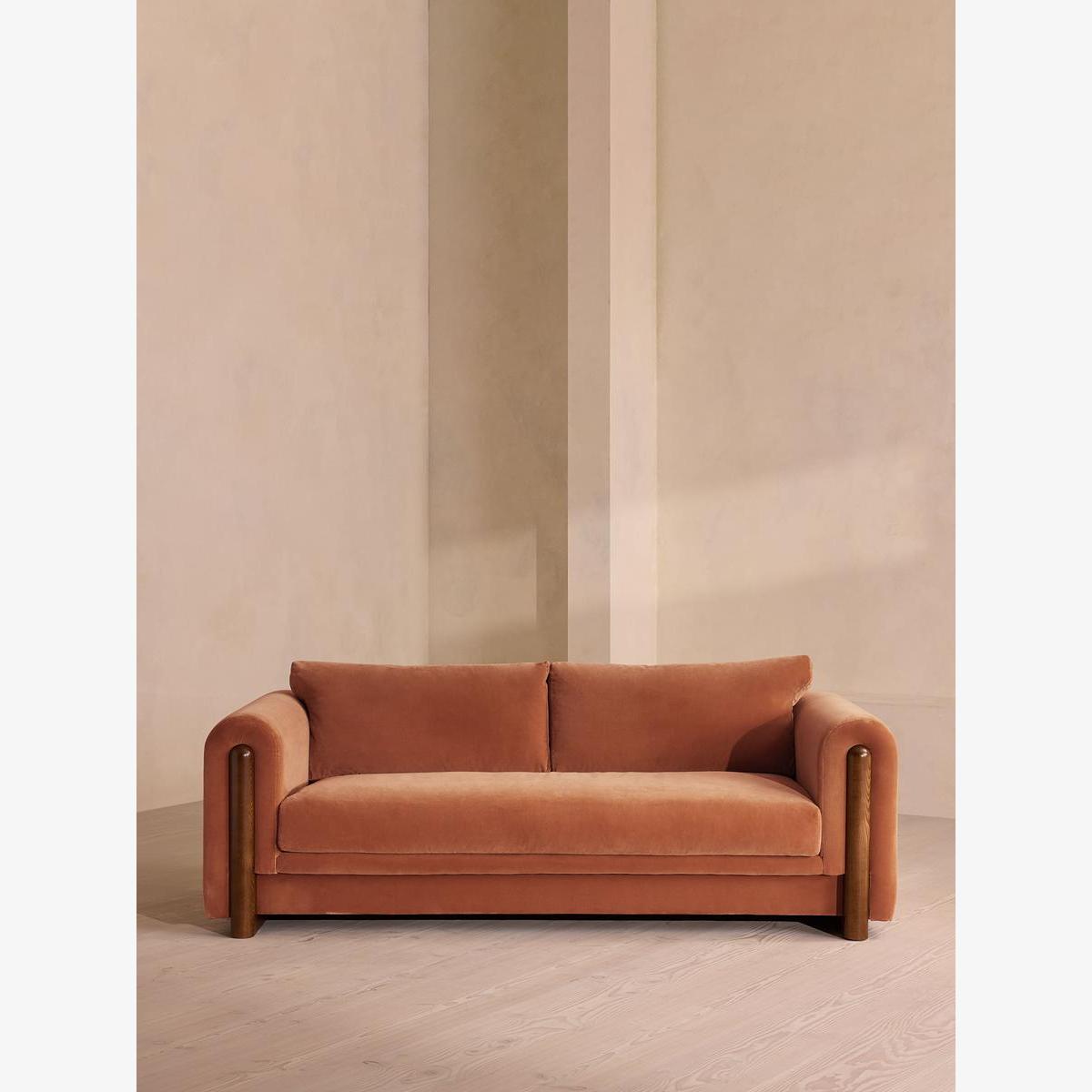 A solid oak frame crafted in the UK creates a low-rise silhouette fully upholstered in cotton velvet. Crafted in the UK, the solid oak frame of our Farrell sofa blends seamlessly into the front of its curved arms. The cotton velvet upholstery on its low-rise, three-seater silhouette is woven in the Netherlands, and available in our full made-to-order velvet colour palette.