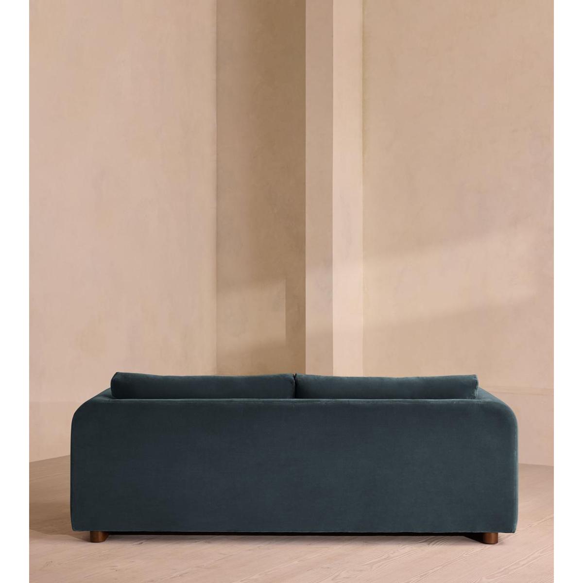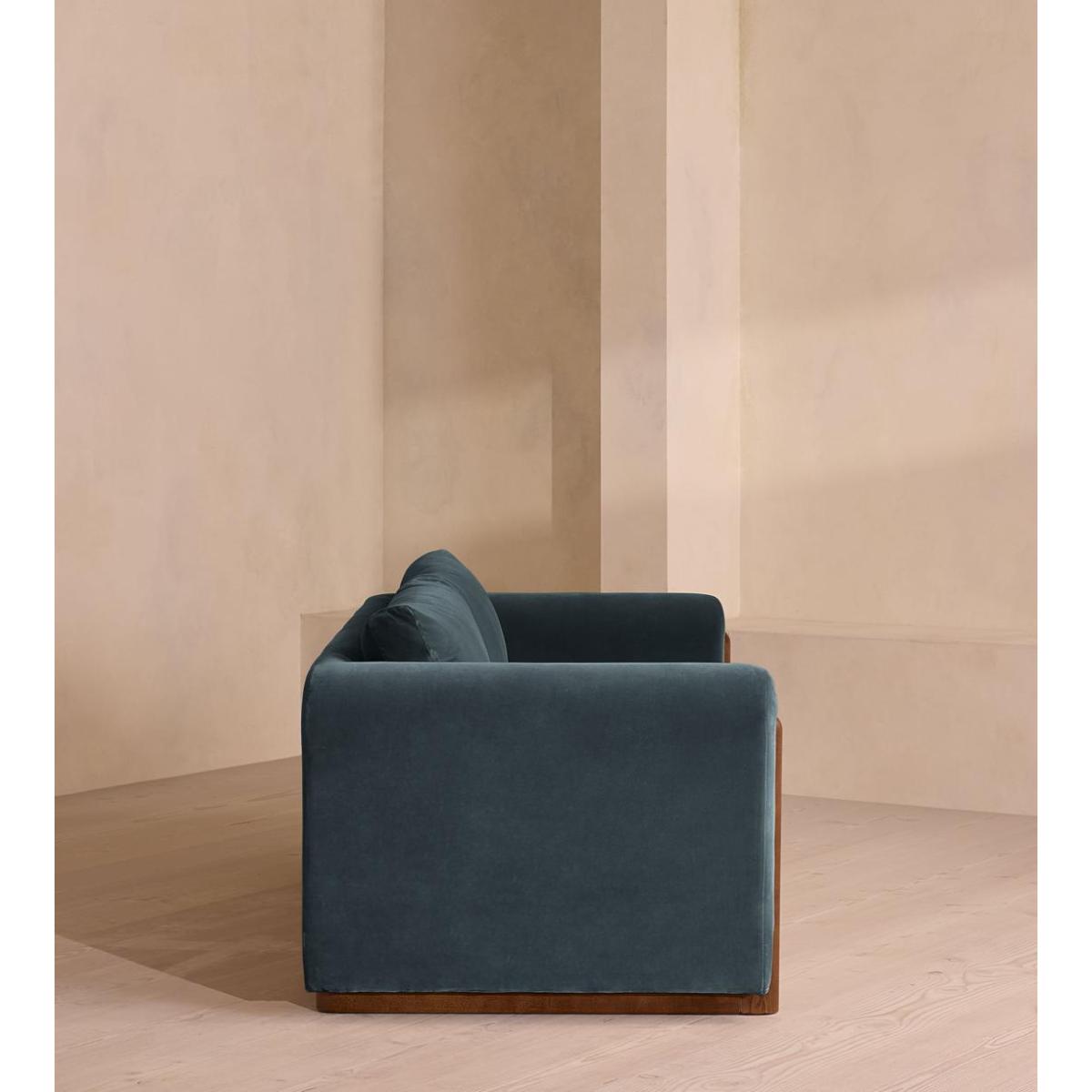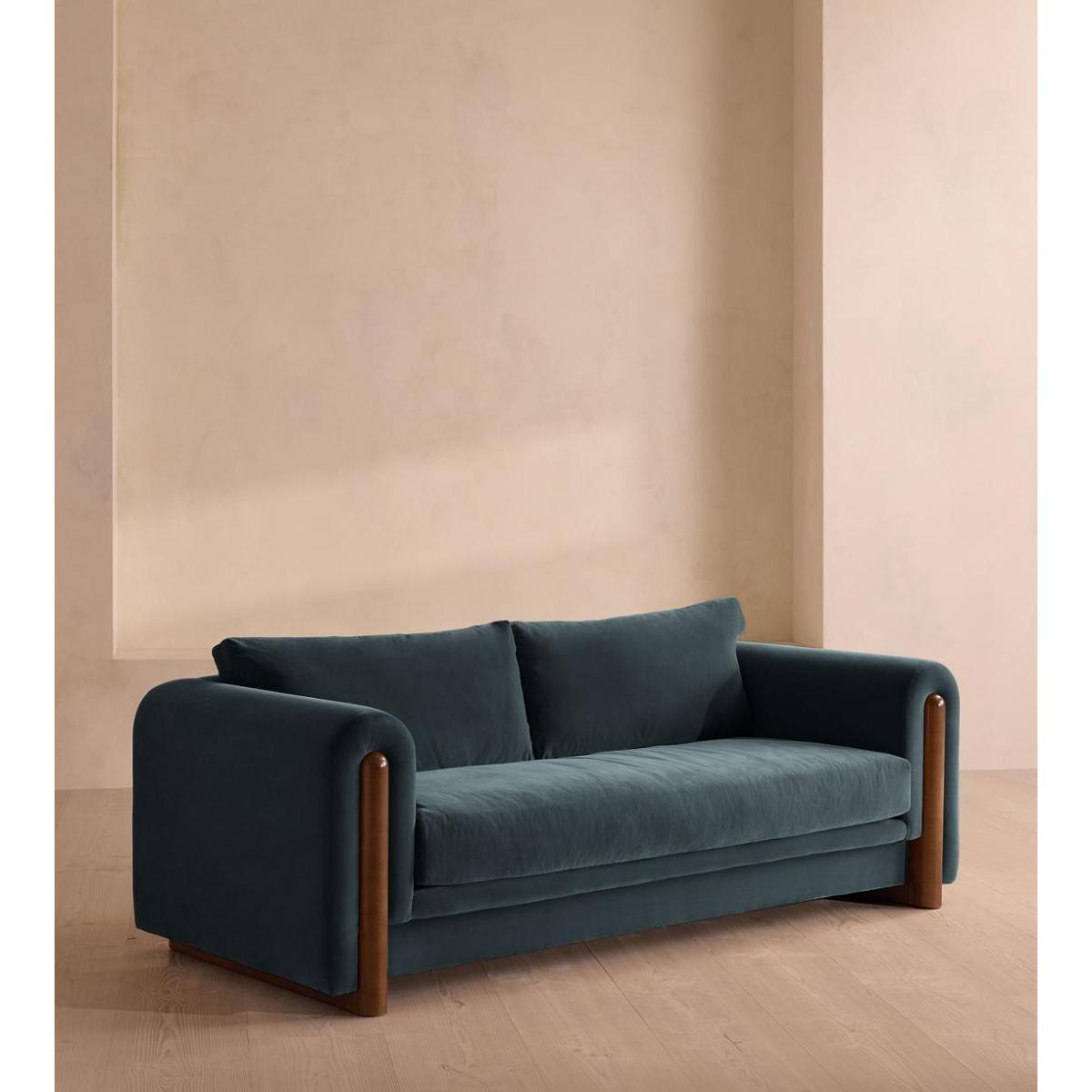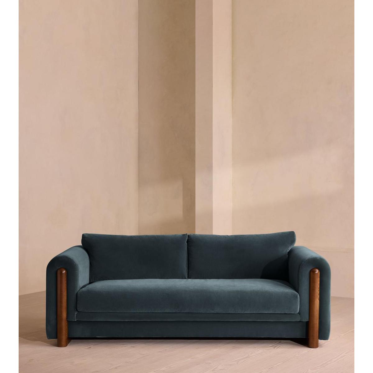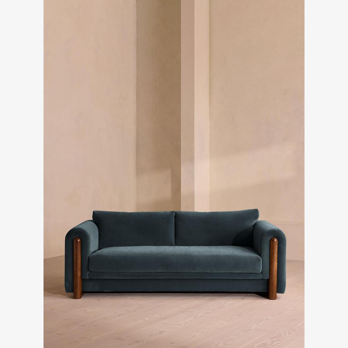 A solid oak frame crafted in the UK creates a low-rise silhouette fully upholstered in cotton velvet. Crafted in the UK, the solid oak frame of our Farrell sofa blends seamlessly into the front of its curved arms. The cotton velvet upholstery on its low-rise, three-seater silhouette is woven in the Netherlands, and available in our full made-to-order velvet colour palette.