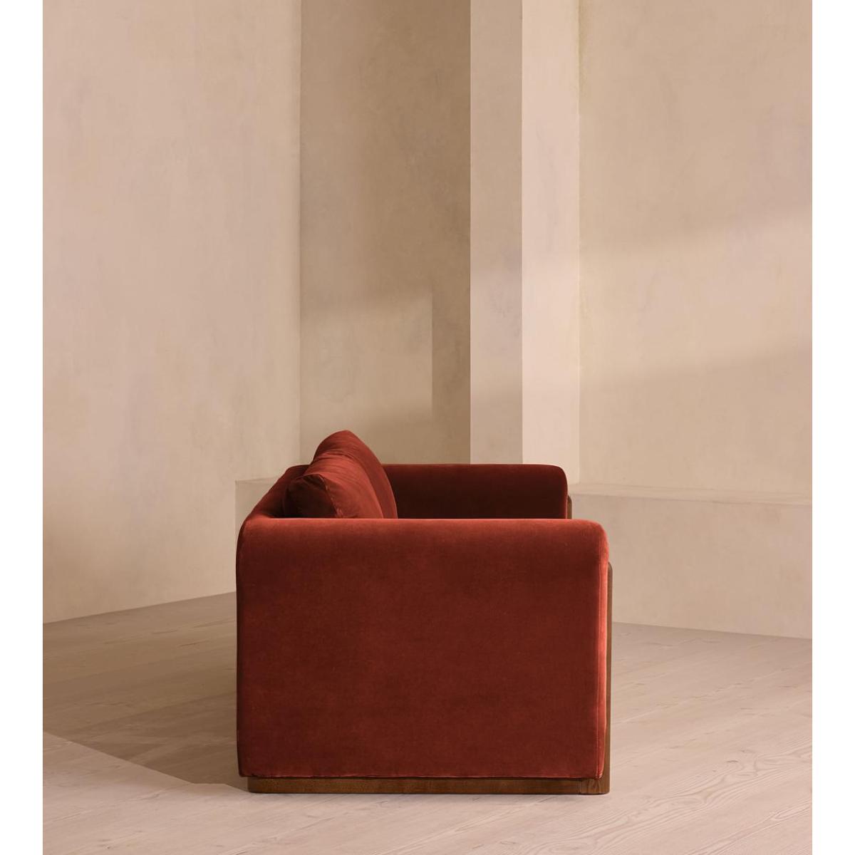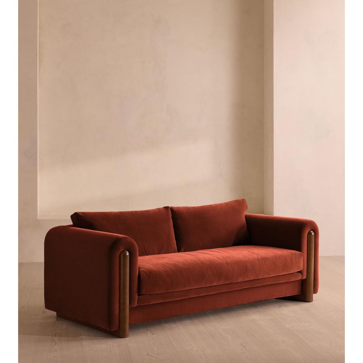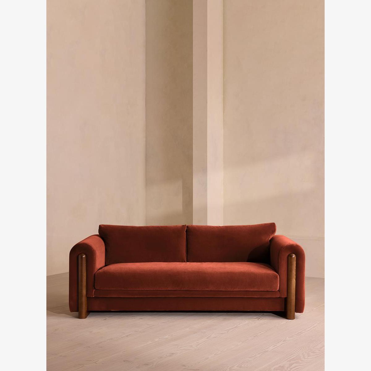 I love this three-seater sofa for its rich velvet texture and warm rust hue, which adds a cosy yet sophisticated feel to any space. It’s versatile enough to work well in both modern and more traditional interiors, especially those with earthy or muted colour palettes. Practical styling tips include balancing its bold colour with neutral accessories, like soft throw cushions or a rug in complementary tones. It also pairs beautifully with natural materials such as wood or brass accents, helping to create a layered, inviting look. This piece is ideal for creating a statement lounge area or a comfortable reading nook, bringing both style and comfort to your home.
