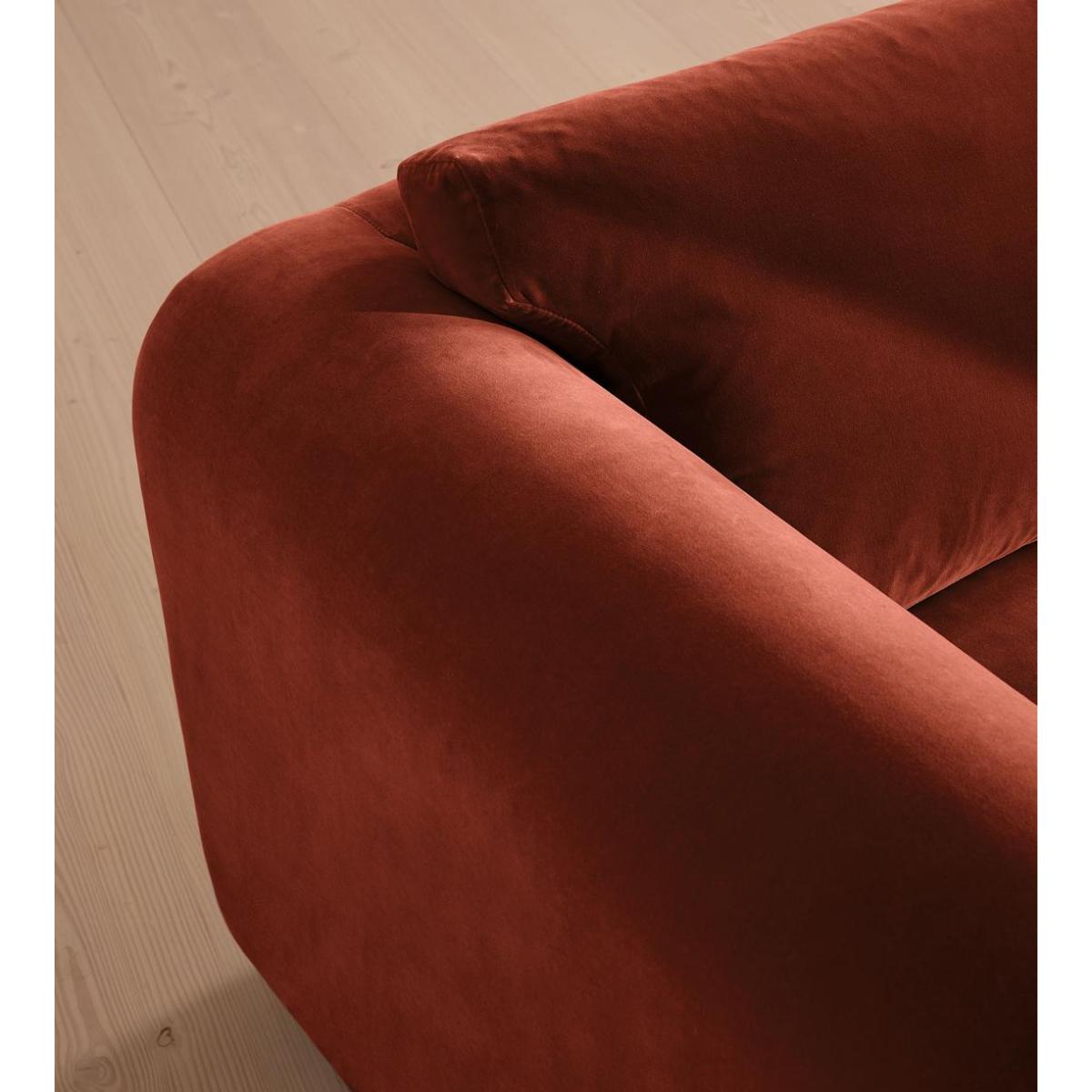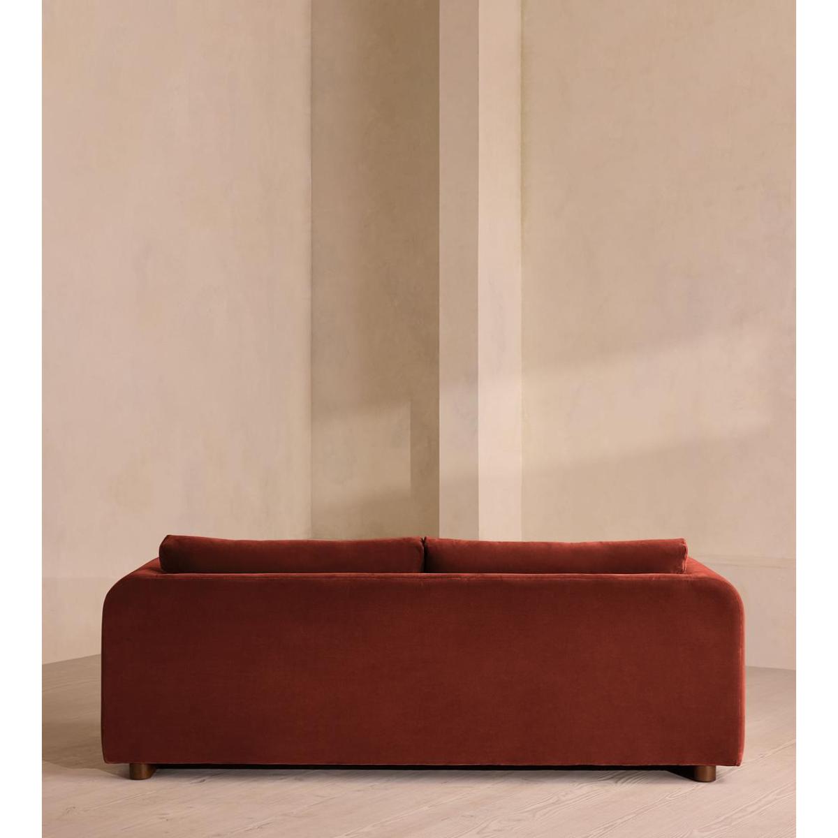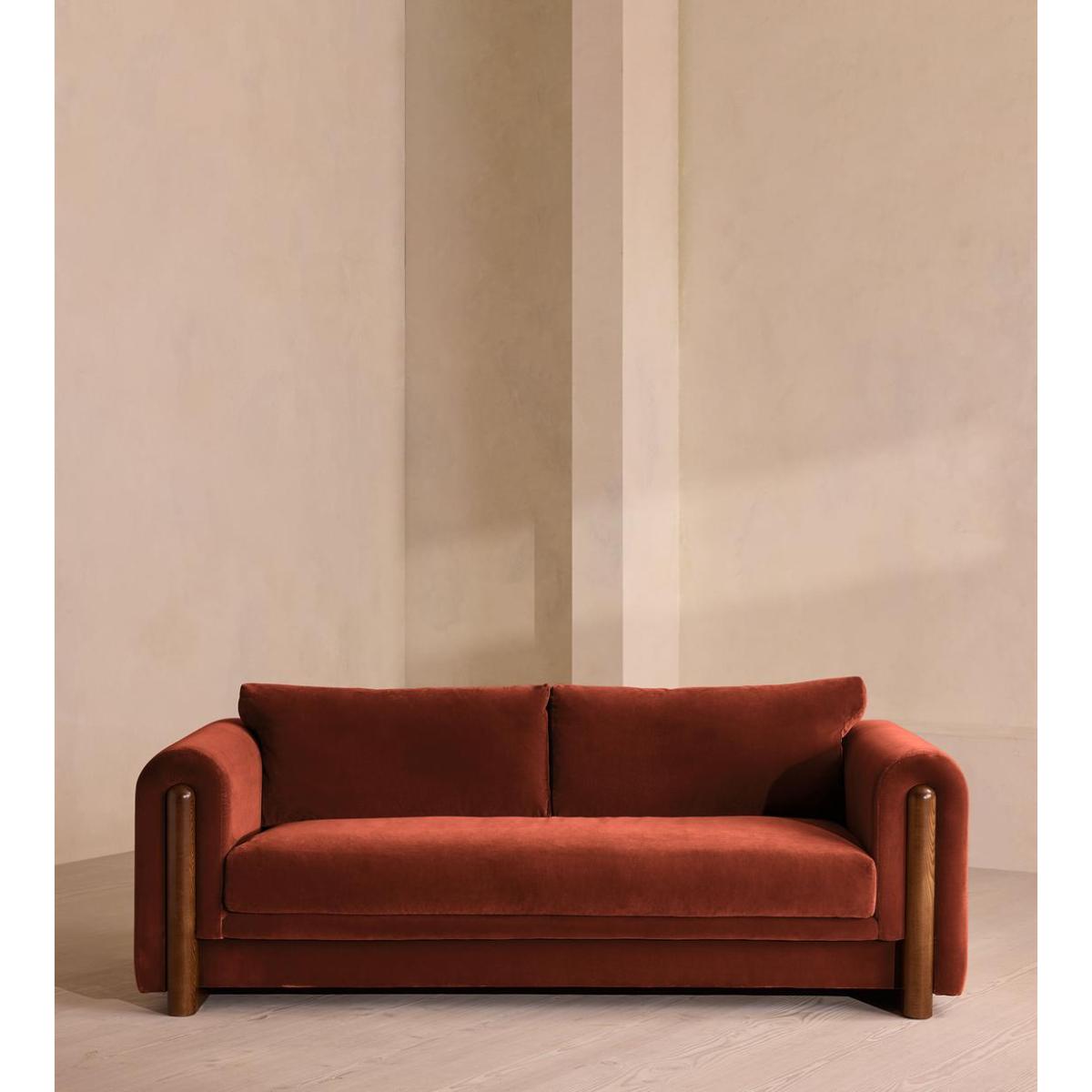 I love this three-seater sofa for its rich velvet texture and warm rust hue, which adds a cosy yet sophisticated feel to any space. It’s versatile enough to work well in both modern and more traditional interiors, especially those with earthy or muted colour palettes. Practical styling tips include balancing its bold colour with neutral accessories, like soft throw cushions or a rug in complementary tones. It also pairs beautifully with natural materials such as wood or brass accents, helping to create a layered, inviting look. This piece is ideal for creating a statement lounge area or a comfortable reading nook, bringing both style and comfort to your home.
