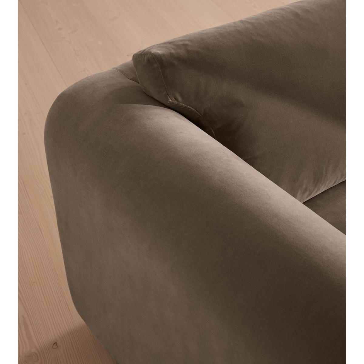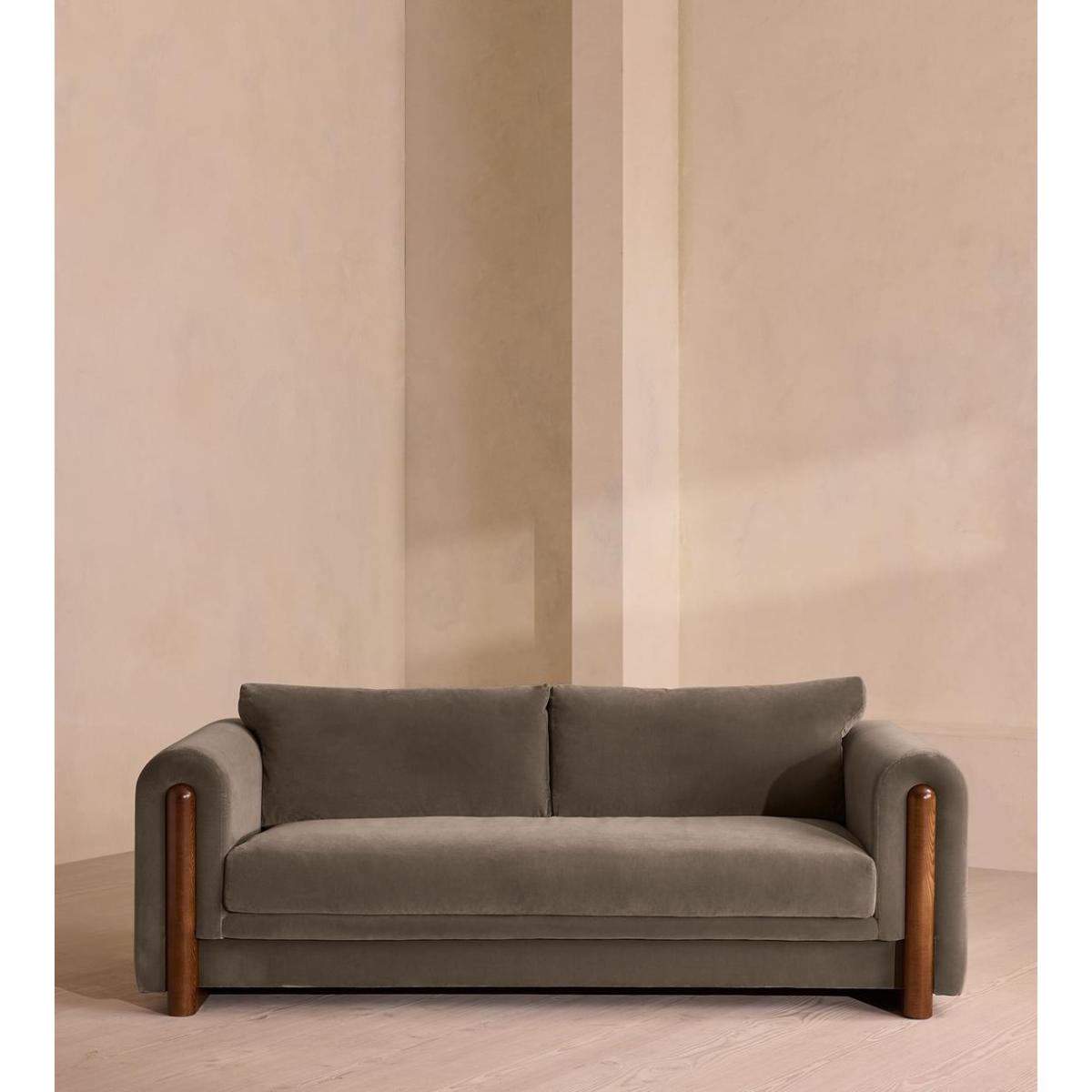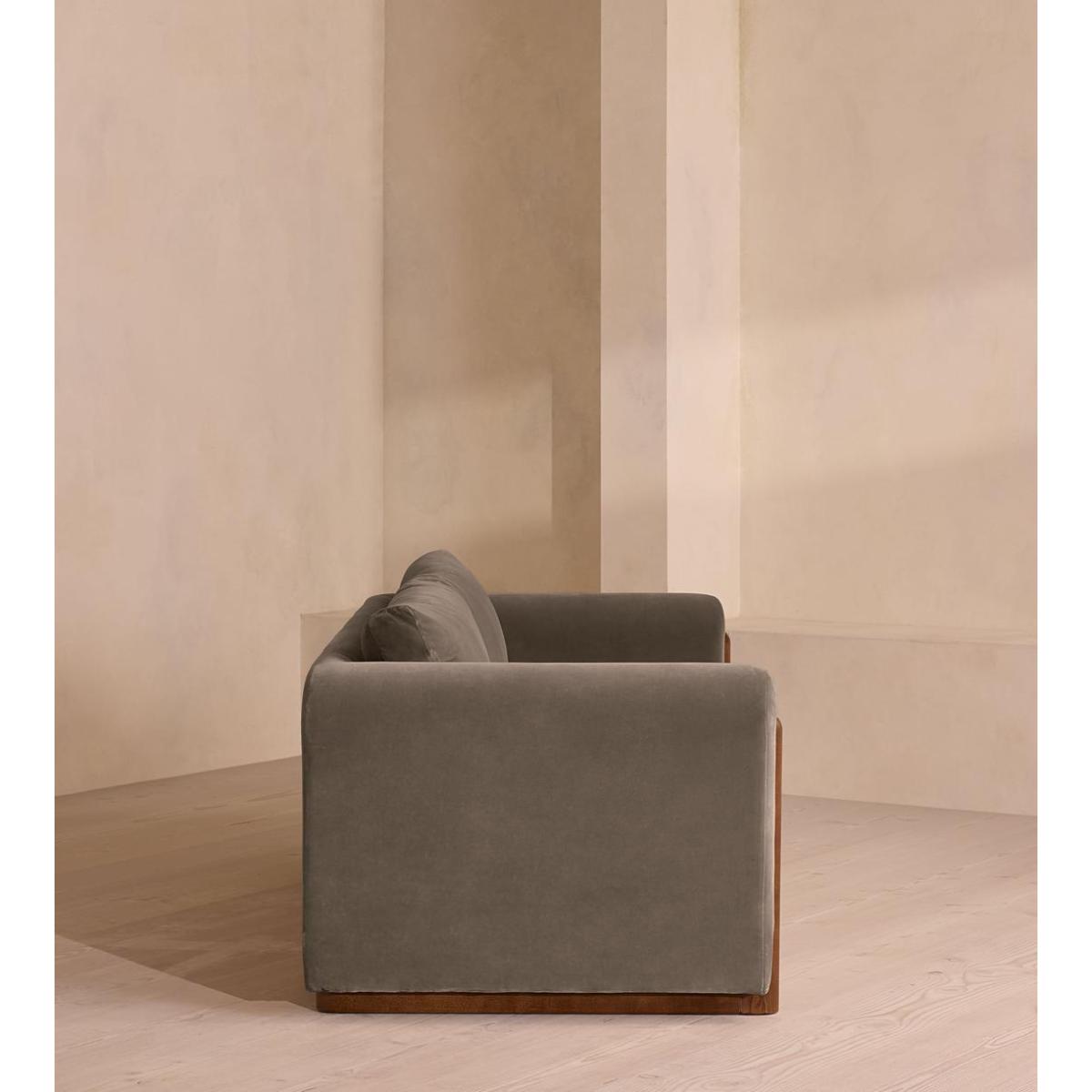 A solid oak frame crafted in the UK creates a low-rise silhouette fully upholstered in cotton velvet. Crafted in the UK, the solid oak frame of our Farrell sofa blends seamlessly into the front of its curved arms. The cotton velvet upholstery on its low-rise, three-seater silhouette is woven in the Netherlands, and available in our full made-to-order velvet colour palette.