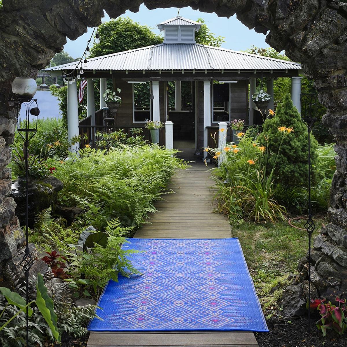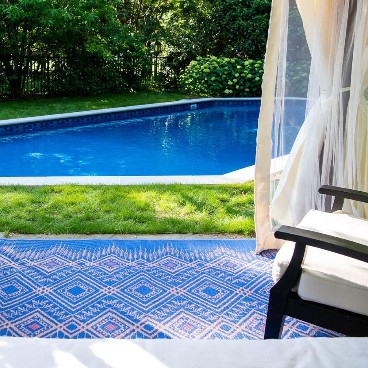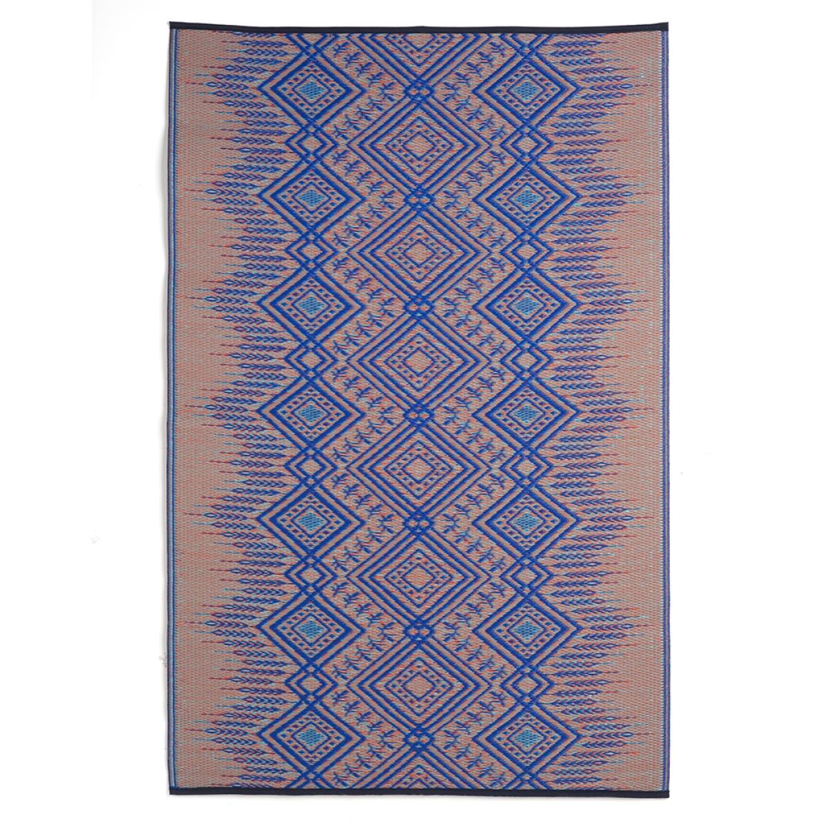 This stylish Fab Hab outdoor rug in Jodhpur design, is the perfect way to give your garden a fresh new look this summer, the fresh blue colour will brighten any outdoor space. In keeping with Fab Hab's mission to reduce their carbon footprint, their range of recycled plastic indoor/outdoor rugs are lovingly woven using premium quality plastic straws. With a great selection of patterns, from traditional to bold and bright, there is sure to be one that stands out as your favourite - and as they are reversible you can update the look with a flip of a rug! Perfect for popping down under your garden table, or creating a focal point on your decking, these garden rugs will extend your living space to the outside. Not limited to your garden, these outside rugs are super lightweight and roll up neatly into a carry bag, making them ideal for taking on picnics or trips to the beach - now the only dilemma. Which fabulous design to pick!. Features and Benefits:.