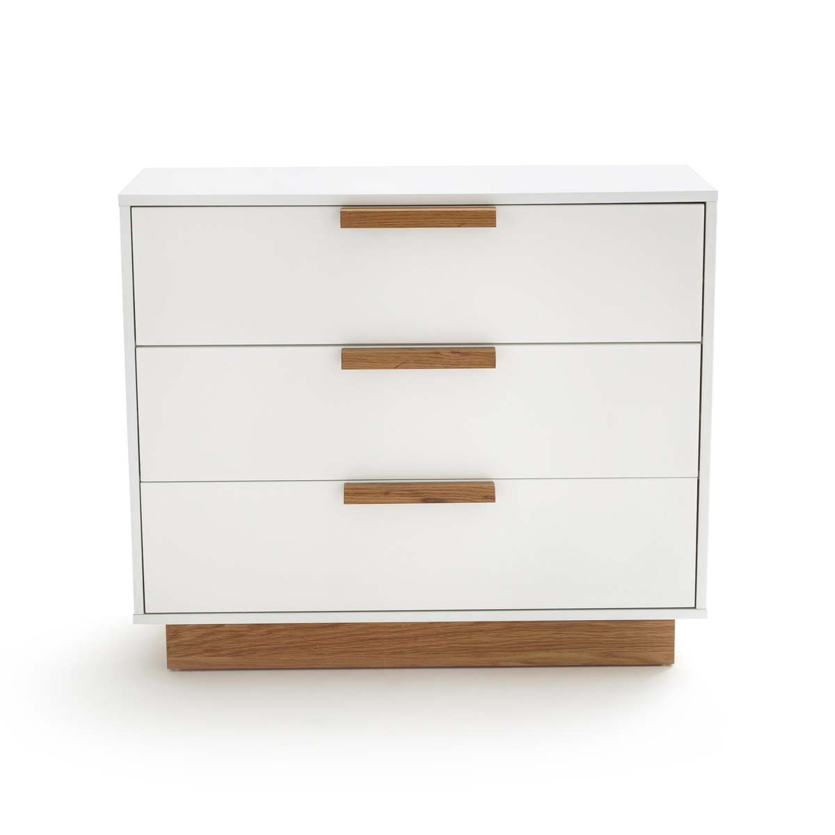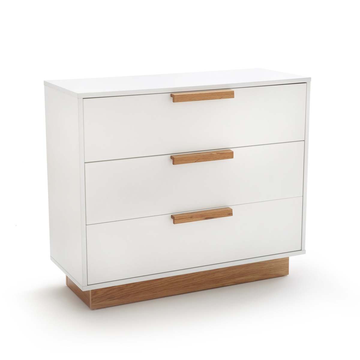 I love this dresser for its clean, modern design with the subtle touch of wood detail, which adds warmth without overpowering a space. It works well in contemporary settings, but can also be styled to suit Scandinavian or minimalist interiors. Practical styling tips include keeping the top surface uncluttered for a sleek look, or adding a few curated accessories like a small plant or a decorative tray for visual interest. The three drawers provide ample storage, making it both functional and stylish, perfect for bedrooms, living rooms, or even a hallway. Its neutral palette makes it versatile, allowing you to experiment with colour and texture in your accessories or surrounding furniture.
