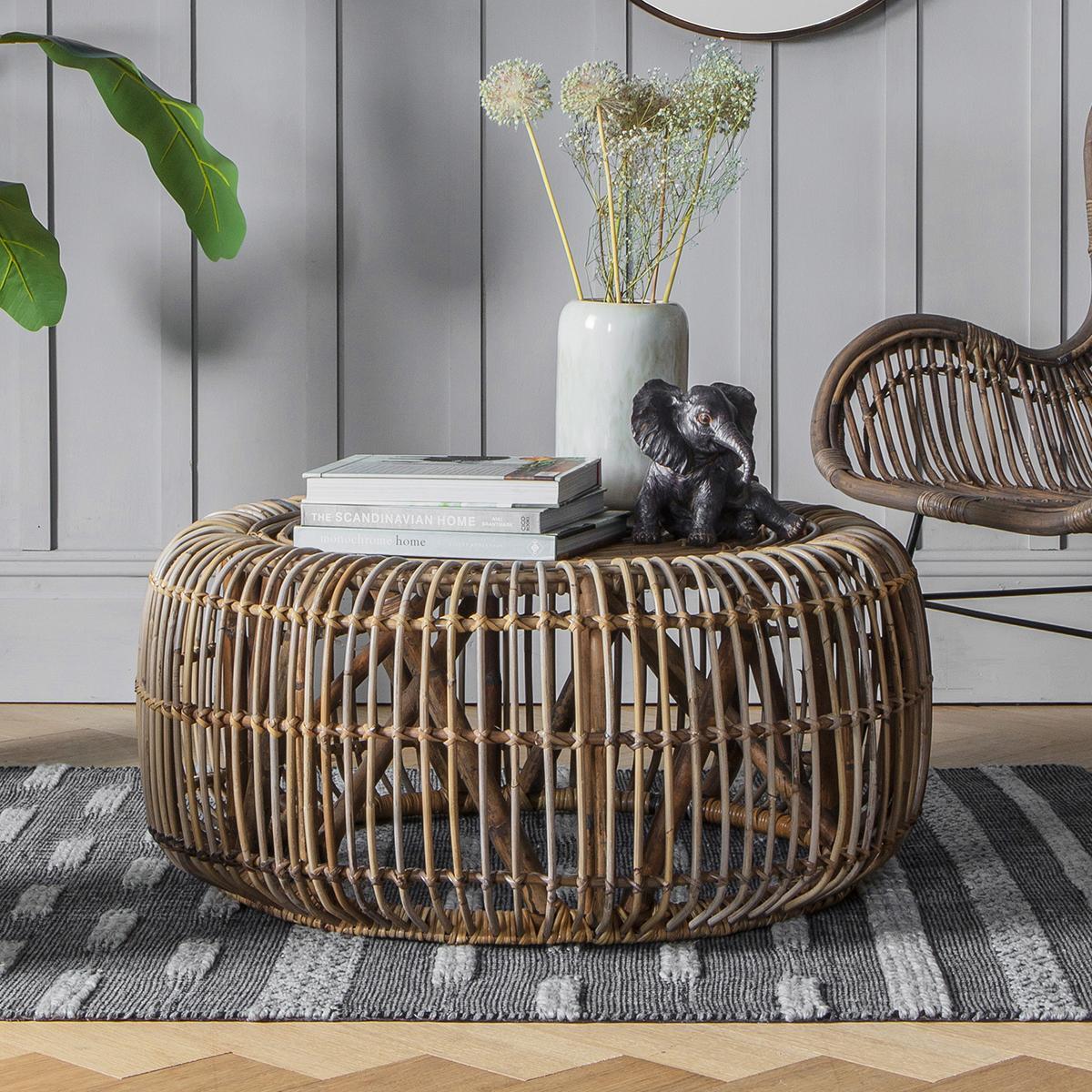 Fabio 85cm Round Rattan Coffee Table - Natural