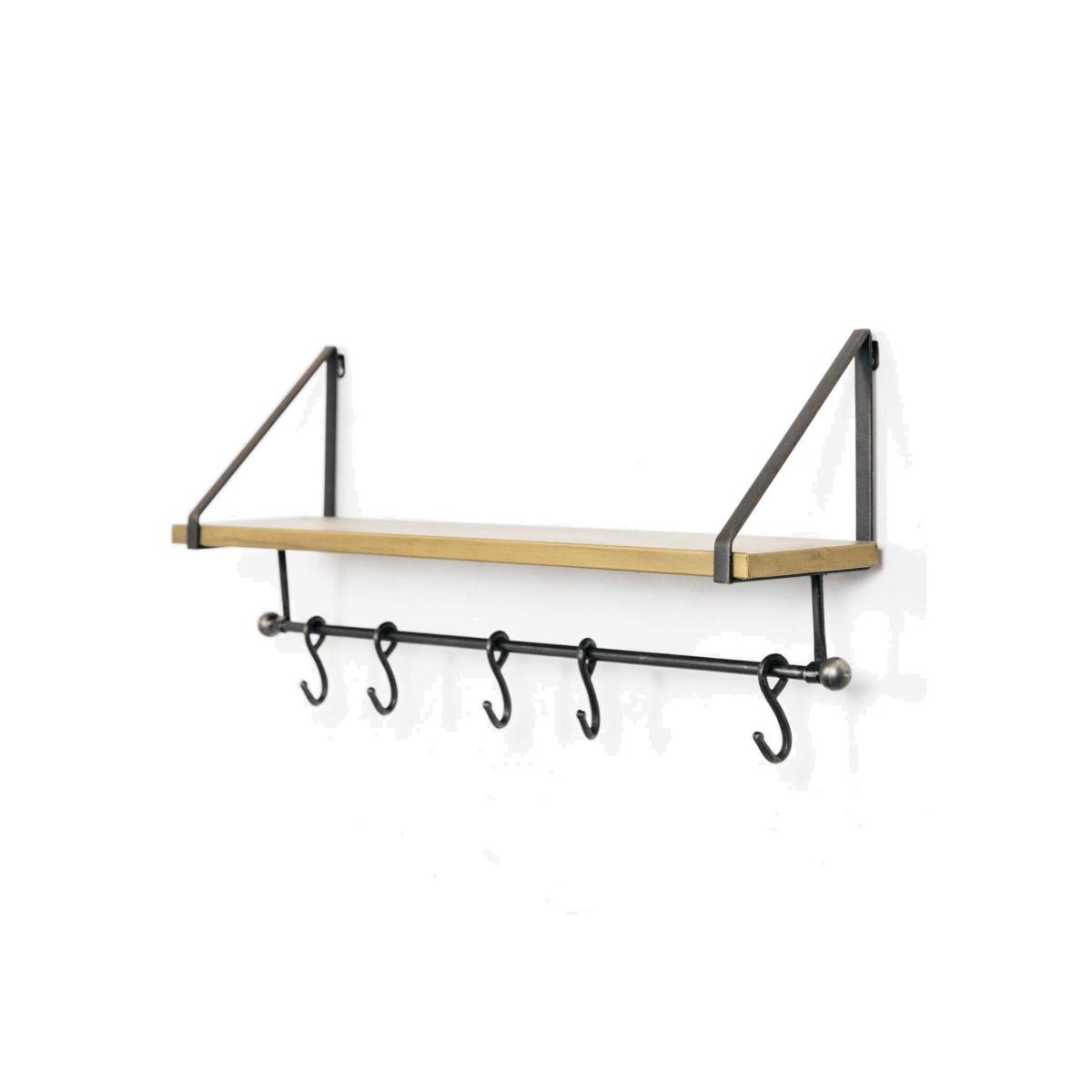 A contemporary answer to all of your storage needs. Our Fabio shelf is crafted from brass with a striking black and bronze finish and features five handy hooks, perfect for storing almost anything, from coats and hats in your hallways, to pots and pans in your kitchen. H31 x W80 x D19. 5cm. Made of brass with a black and bronze finish. Features five hooks and one shelf. Some simple assembly is required. Fixings not included.