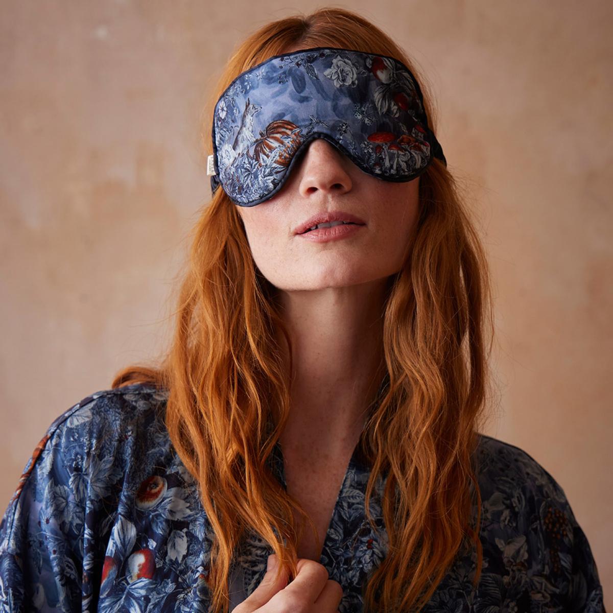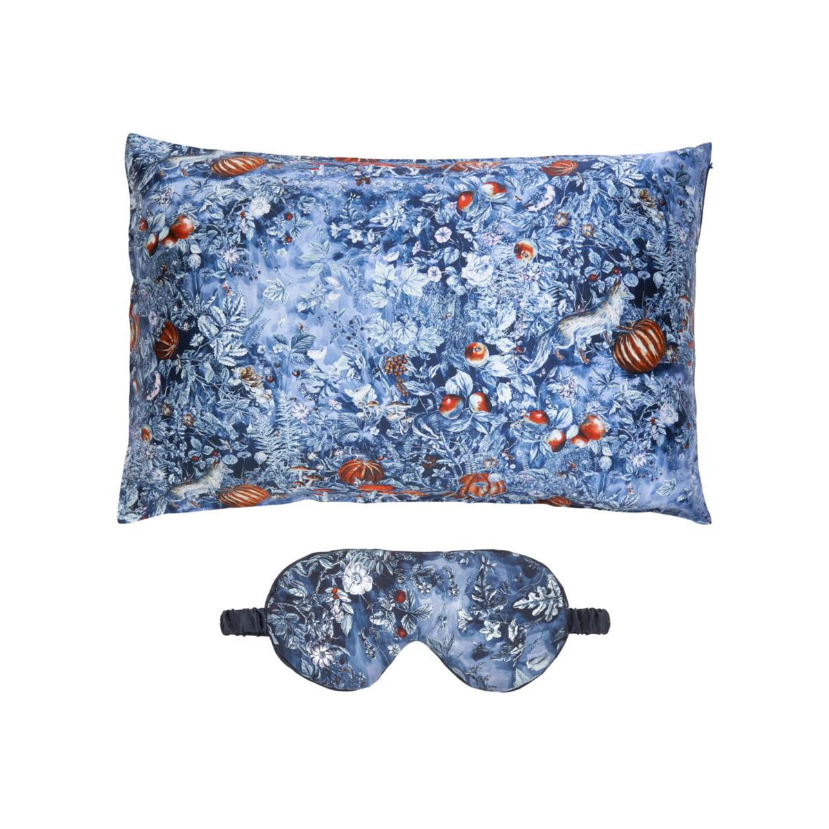 Revitalize your sleep sanctuary with Fable's Aurora Pillowcase, adorned in the enchanting Nocturnal Garden print in Midnight Blue, bringing a touch of whimsical luxury to your bedding. Crafted from sumptuous 19 Momme natural silk, it helps keep your skin and hair smooth, ensuring you wake from your fairytale slumber feeling refreshed. Enhance your nightly routine with Fable's Nocturnal Garden Sleep Mask in Midnight Blue. Featuring a nature-inspired print on both sides, this mask offers versatile style and ultimate comfort. Made from sustainable Lyocell, a fabric gentle on sensitive skin, it allows you to drift off in serene comfort, awakening ready to embrace the day.