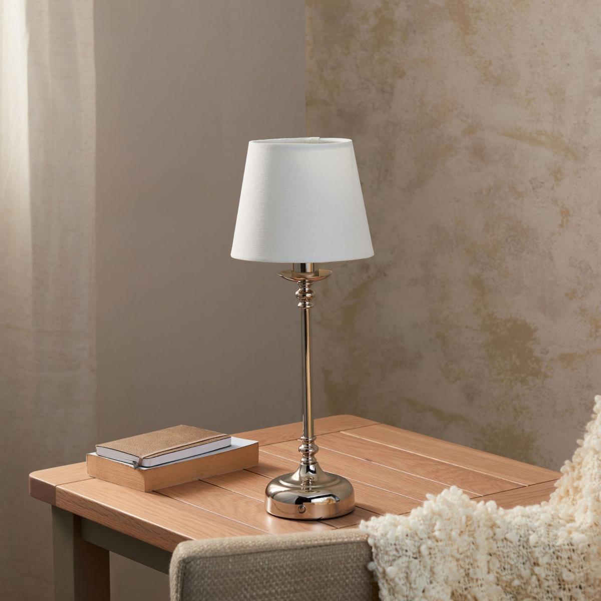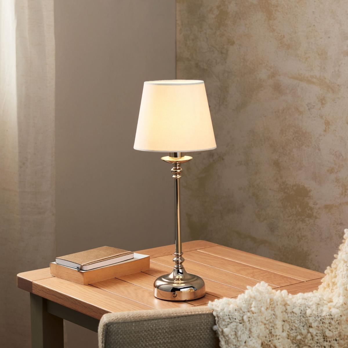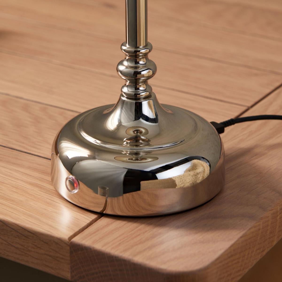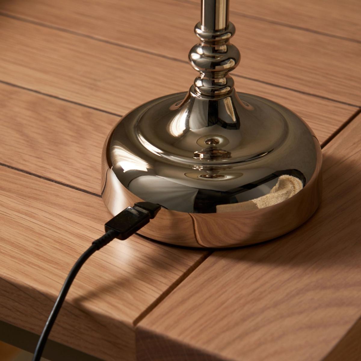 Fable rechargeable table lamp, featuring integrated LED technology, a white tapered shade, a polished chrome finish and a 3-stage touch dimmer function. The Fable rechargeable table lamp combines modern convenience with timeless style. Featuring integrated LED technology, this lamp offers energy-efficient lighting with a sleek, polished chrome finish that adds a touch of elegance to any setting. The white tapered shade provides a soft glow, perfect for creating a cosy atmosphere in any room. Designed with versatility in mind, the Fable table lamp includes a 3-stage touch dimmer function, allowing you to easily adjust the brightness to suit your mood or task. Whilst not only being stylish, this table lamp is also highly portable, allowing you to bring light wherever it's needed without the hassle of cords. Its rechargeable battery means you can easily move it from room to room, making it perfect for outdoor patios, reading nooks or even as a centrepiece for dinner tables. Whether you're using it indoors or outdoors, the lamp’s cordless design offers the flexibility to illuminate any space with ease. Fable rechargeable table lamp, featuring integrated LED technology, a white tapered shade, a polished chrome finish and a 3-stage touch dimmer function. The Fable rechargeable table lamp combines modern convenience with timeless style. Featuring integrated LED technology, this lamp offers energy-efficient lighting with a sleek, polished chrome finish that adds a touch of elegance to any setting. The white tapered shade provides a soft glow, perfect for creating a cosy atmosphere in any room. Designed with versatility in mind, the Fable table lamp includes a 3-stage touch dimmer function, allowing you to easily adjust the brightness to suit your mood or task. Whilst not only being stylish, this table lamp is also highly portable, allowing you to bring light wherever it's needed without the hassle of cords. Its rechargeable battery means you can easily move it from room to room, making it perfect for outdoor patios, reading nooks or even as a centrepiece for dinner tables. Whether you're using it indoors or outdoors, the lamp’s cordless design offers the flexibility to illuminate any space with ease.