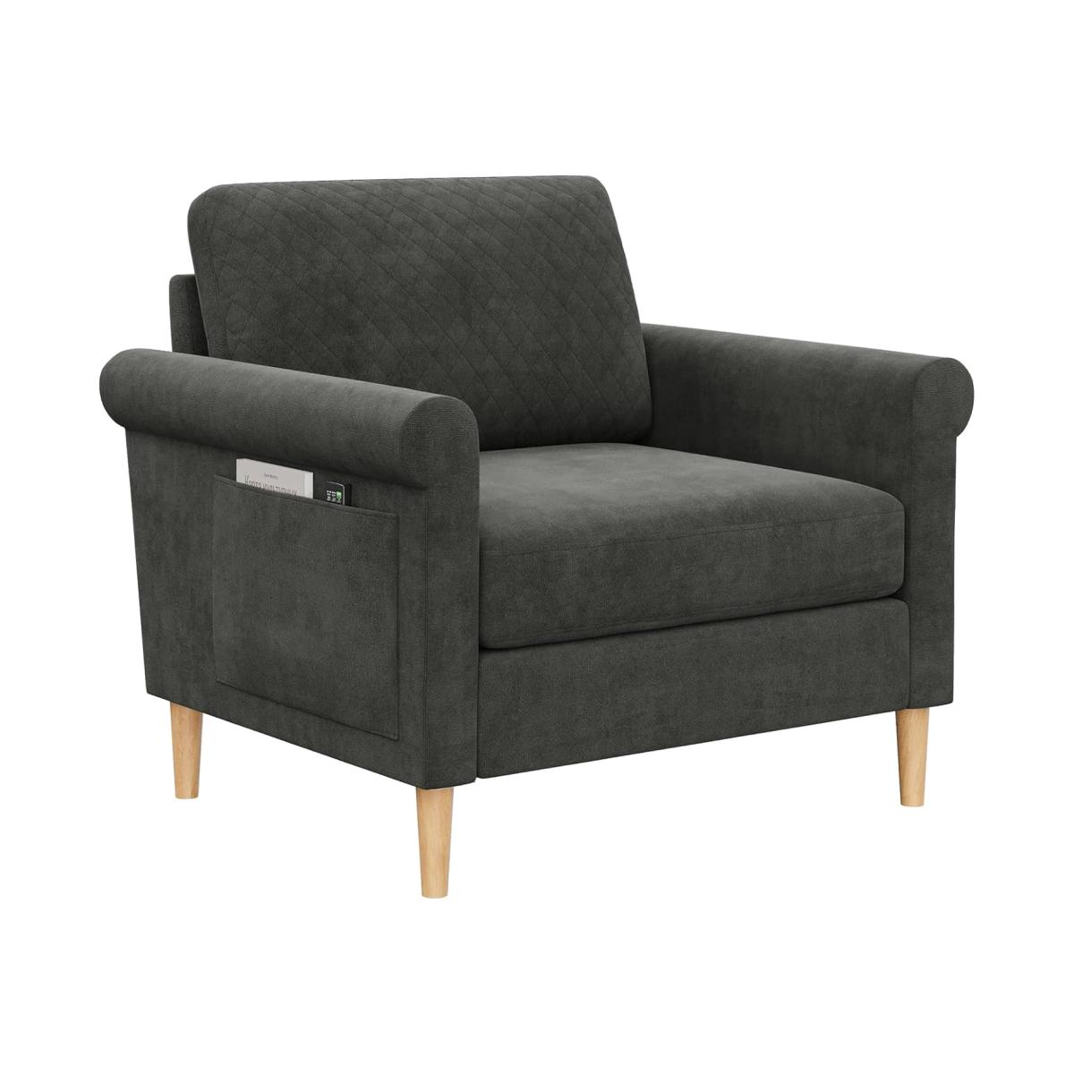 Designed with an improved polyester fabric and removable cushions, a roomy thick upholstered seat filled with individual pocket springs and high density sponge, this living room armchair looks gorgeous and will complement any home decorations, making you feel extremely comfy when you sit or rest on it. Features nonslip foot pads, solid wood legs structure and reinforced frame, the accent chair is crafted to provide you with a comfortable and durable seat that stands the test of time, which can bear up to 180kg and offers unparalleled stability and support, ensuring a reliable and secure seating experience for years to come