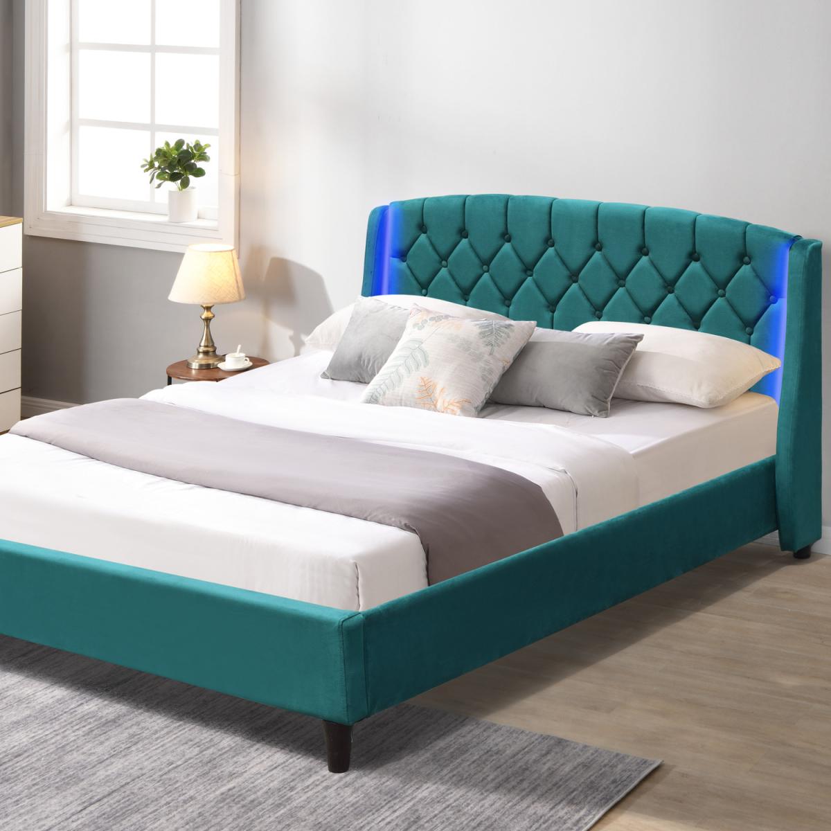 Elevate your bedroom with this stylish and contemporary fabric bedframe. Featuring a luxurious upholstered headboard with a chic diamond-tufted design, this bed exudes sophistication. The LED lighting along the headboard adds a modern touch, creating a warm and inviting ambience. Crafted with high-quality materials, this bedframe offers exceptional comfort and durability. Available in grey or green and in either 3ft, 4ft6 or 5ft, you can find the perfect fit for your space. Enhance your sleep experience and transform your bedroom into a serene retreat with this elegant fabric bedframe. 3ft Dimensions: L 204cm x W 96cm x H 94cm. Headboard Width 106cm 4ft6 Dimensions: L 204cm x W 142cm x H 94cm. Headboard Width 150cm 5ft Dimensions: L 214cm x W 156cm x H 94cm. Headboard Width 164cm Please note that all dimensions are approximate, please allow room for slight variations