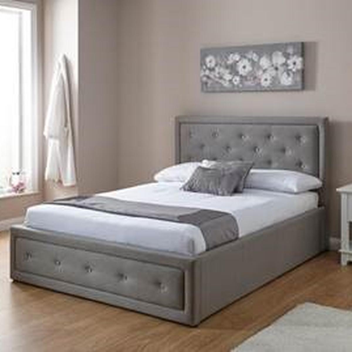 This stylish bed is beautifully upholstered in either silver crushed or grey hopsack fabric. It features a padded headboard and footboard and is finished with a diamante crystal button detail. It is made from a solid wooden frame and has a sprung slatted base to give support to the mattress and give you a fully supportive and comfortable night's sleep. The ottoman aspect of this bed frame is operated using a gas lift mechanism that lifts up the mattress to reveal ample storage space. Please note this is straight to floor storage area.